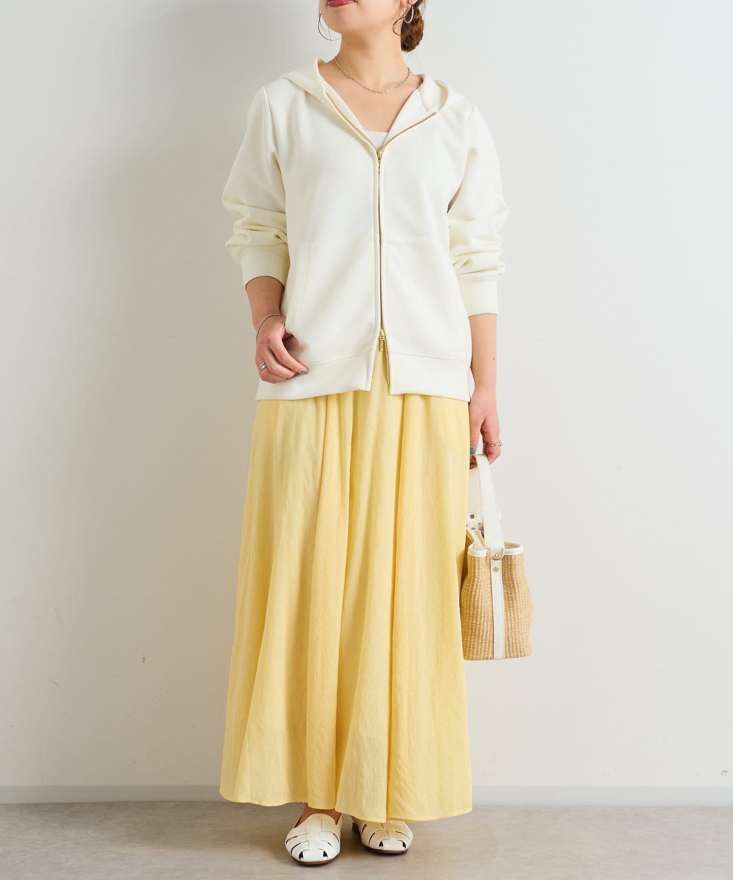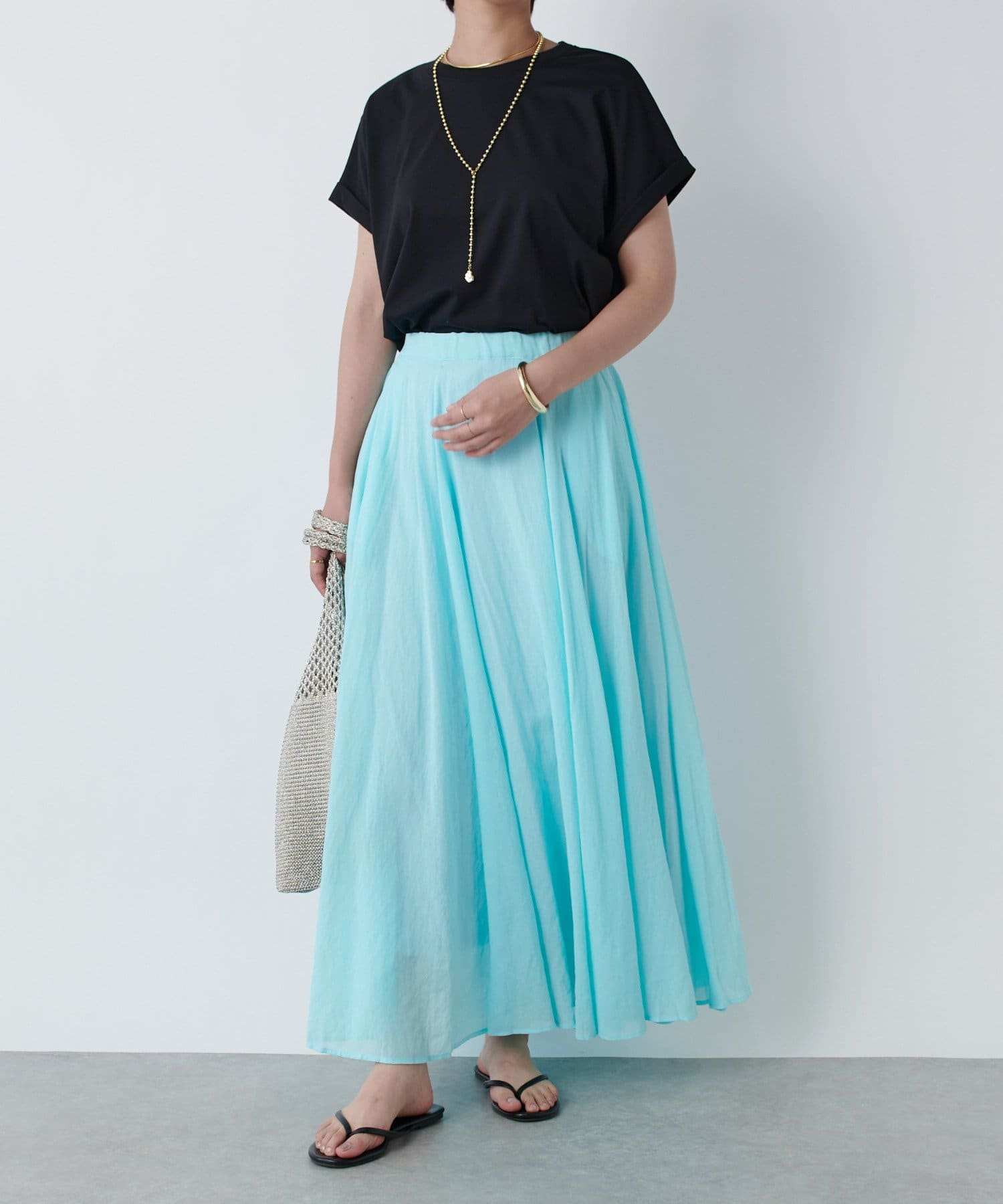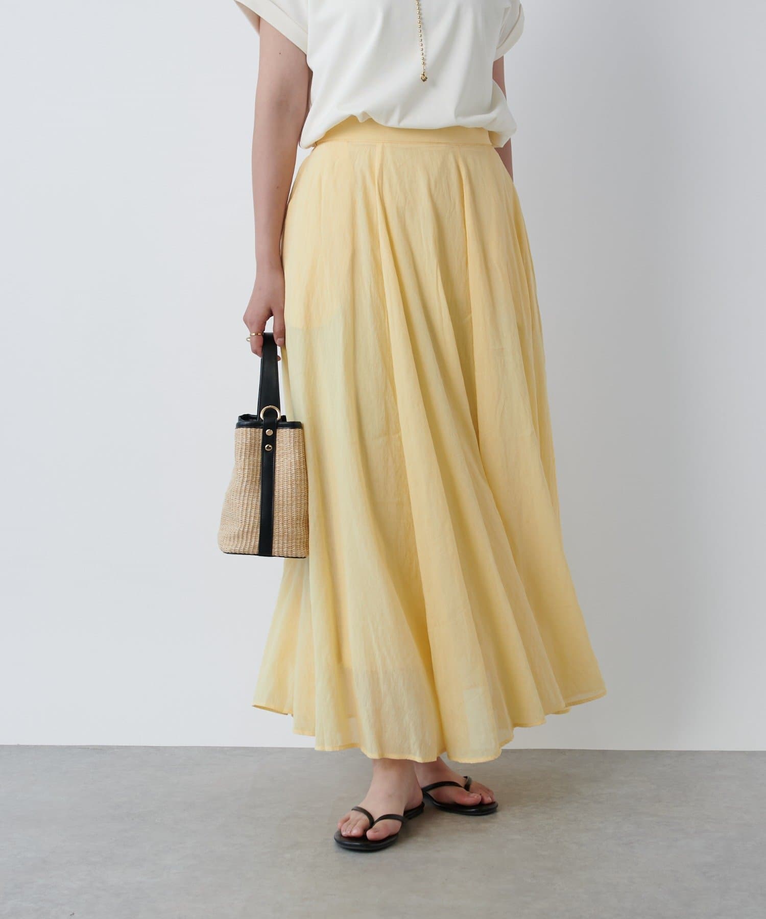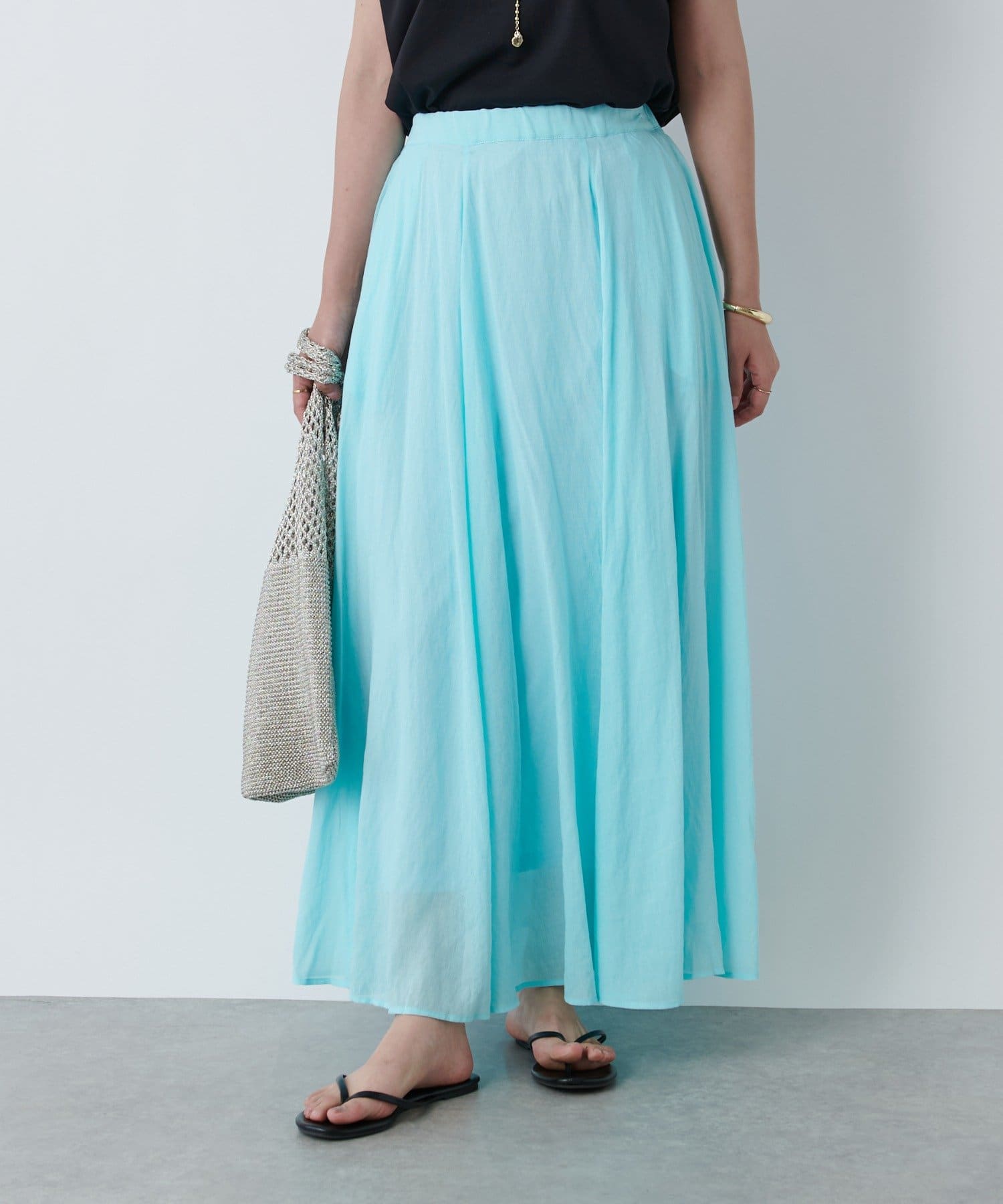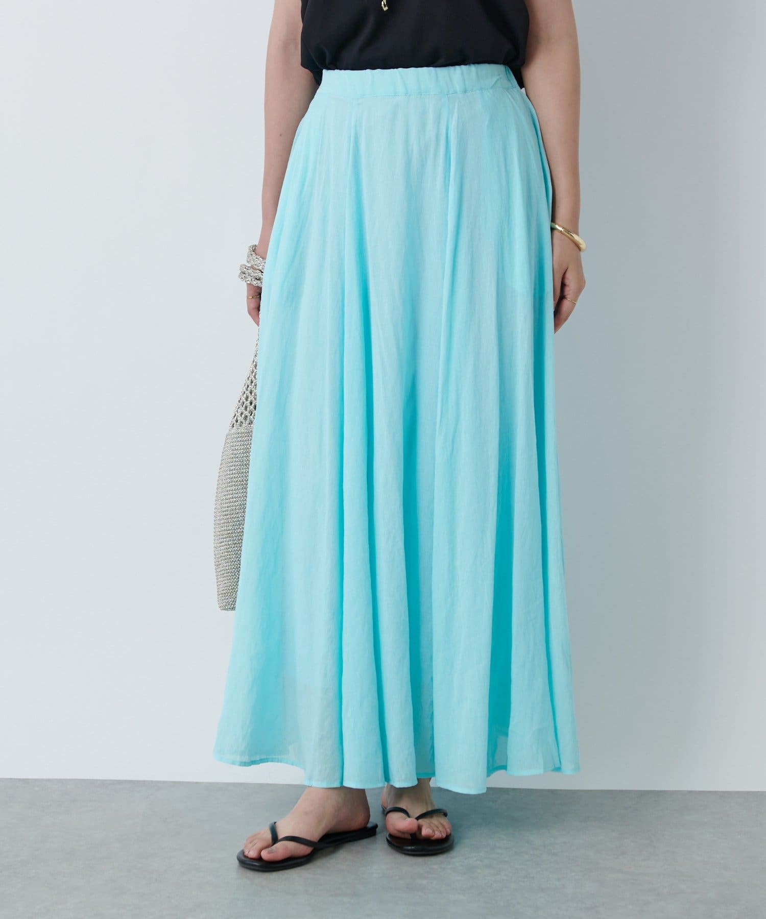 春夏を感じるシアー素材のフレアスカート