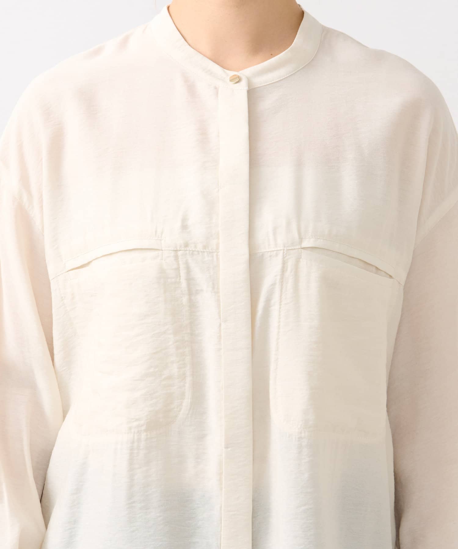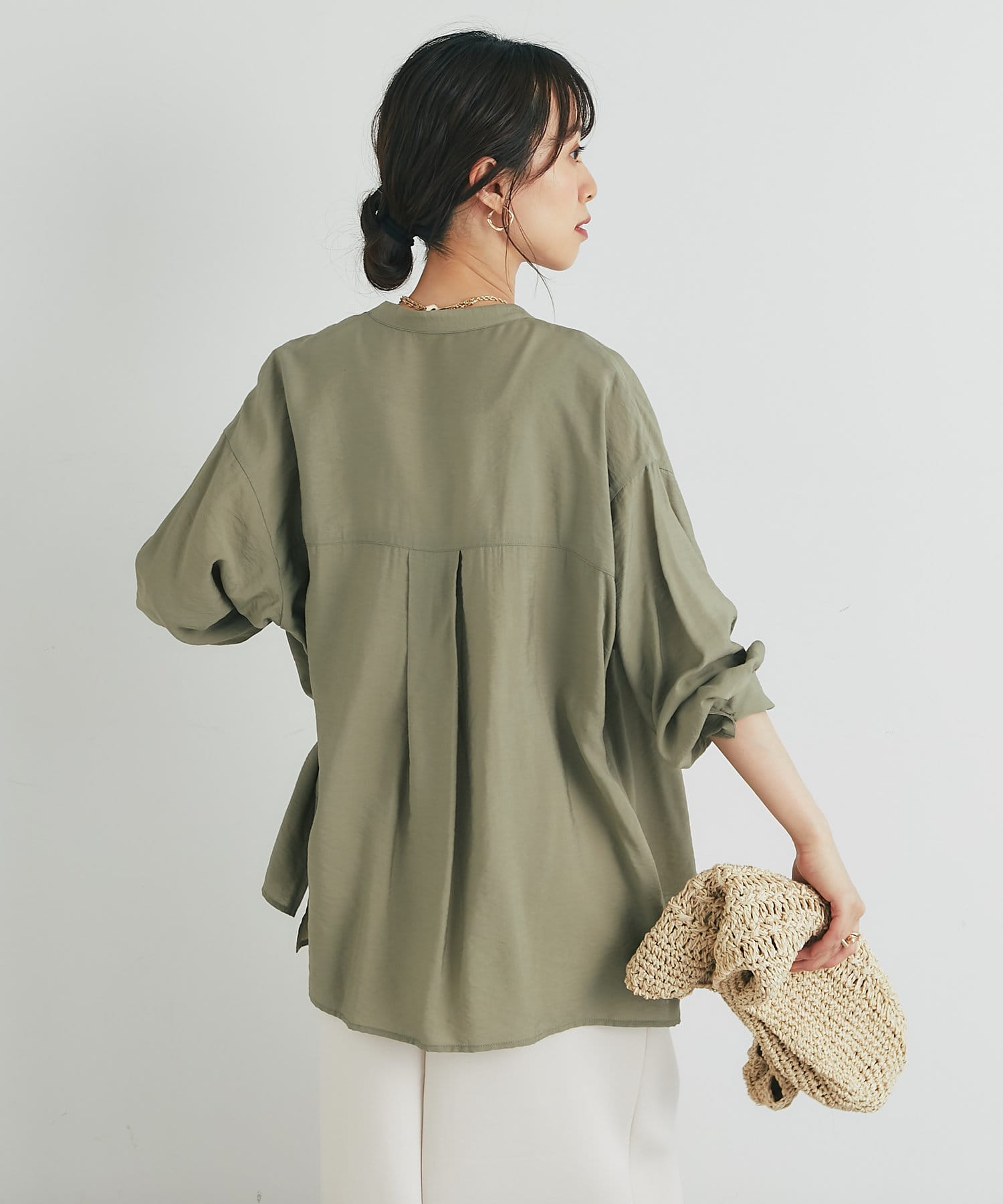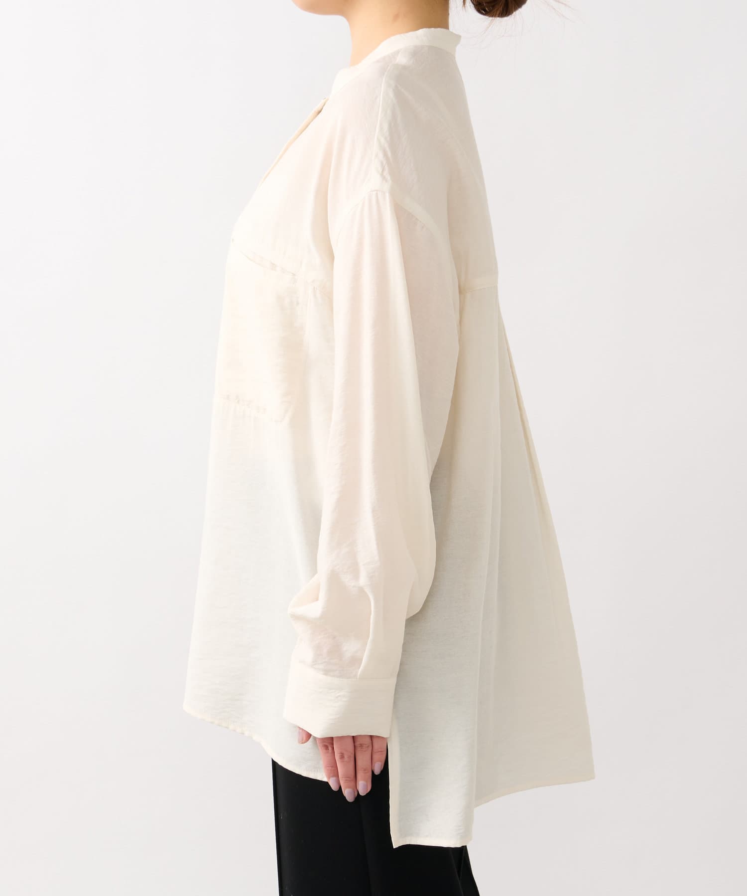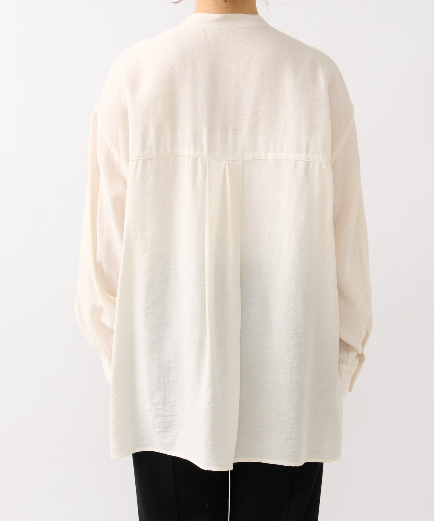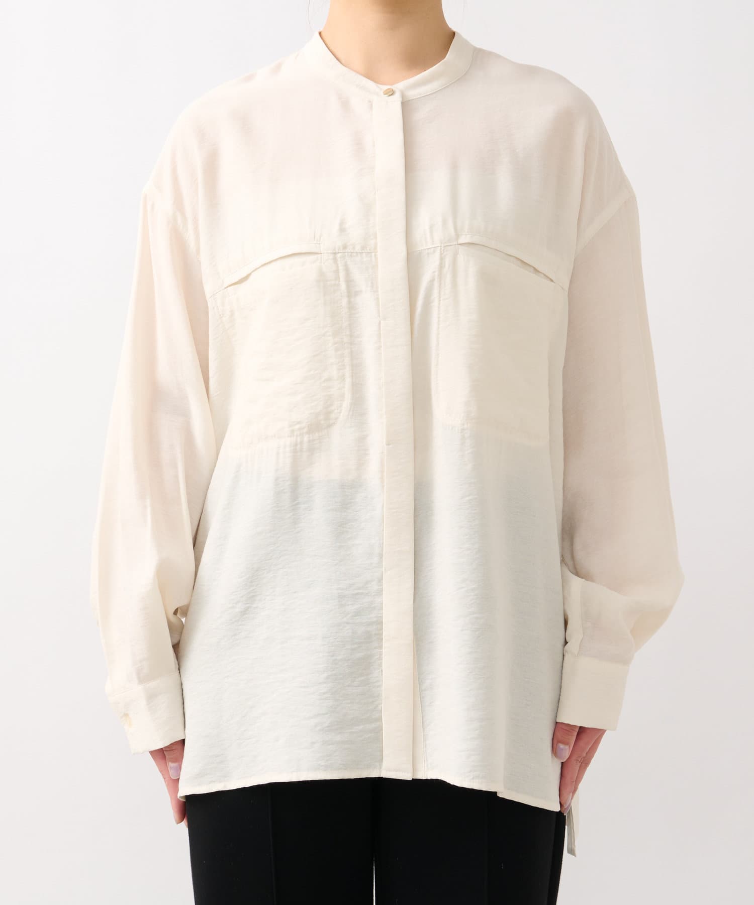 程良くゆとりのあるシルエットのバンドカラーシャツ