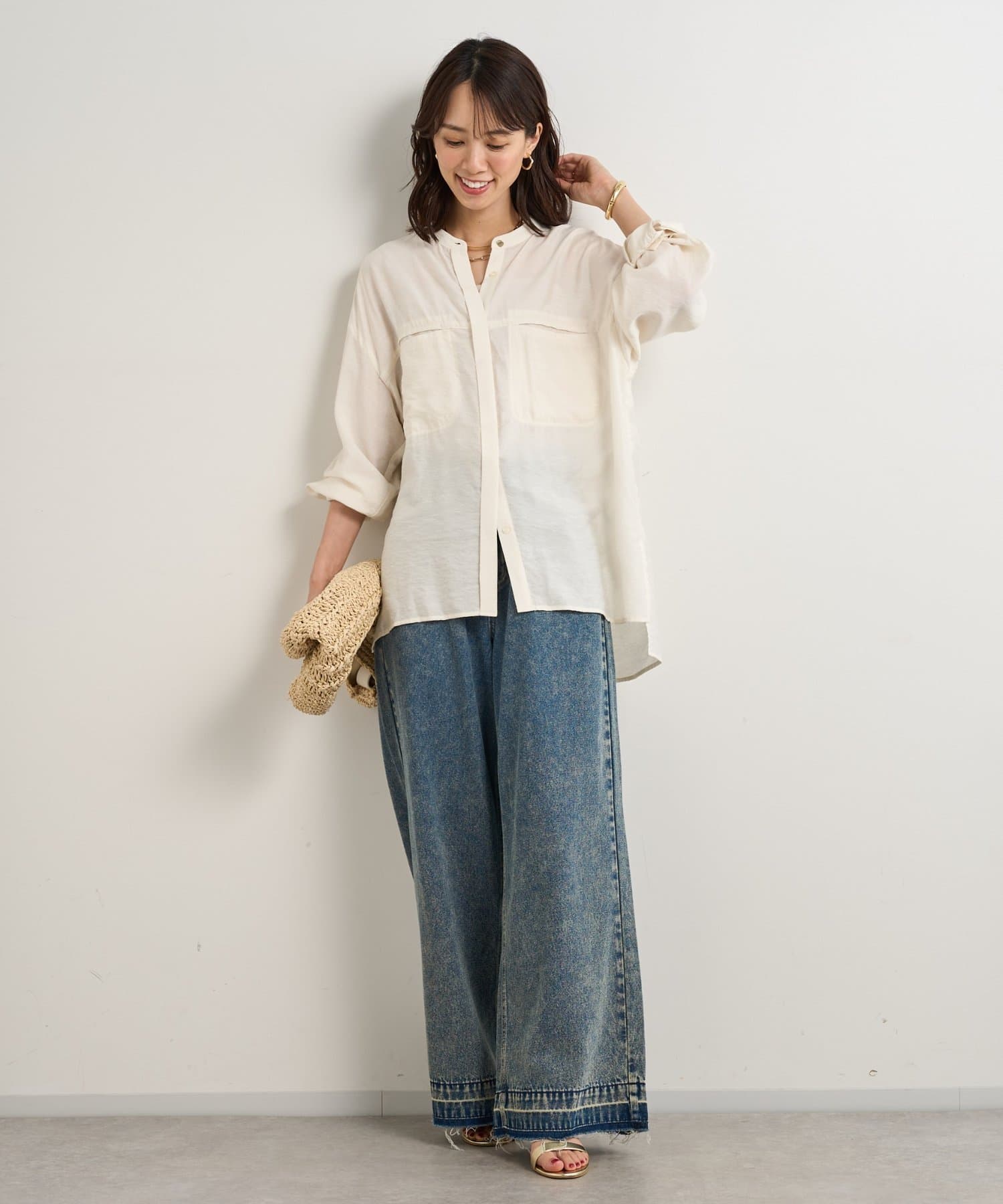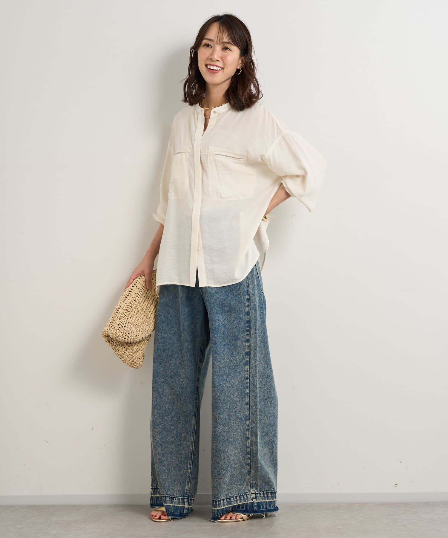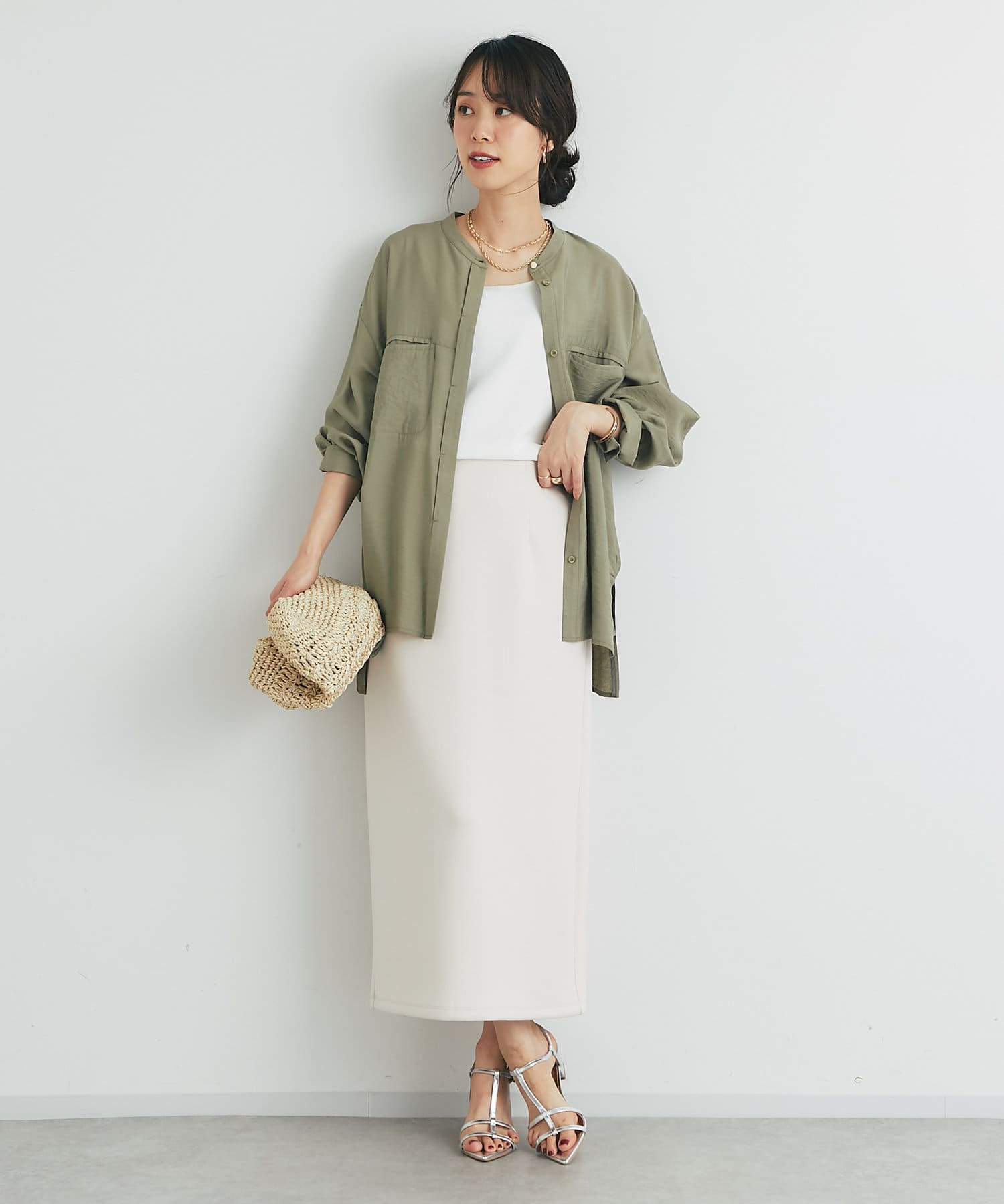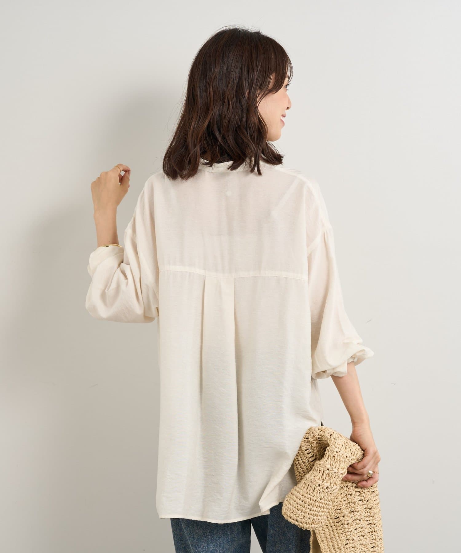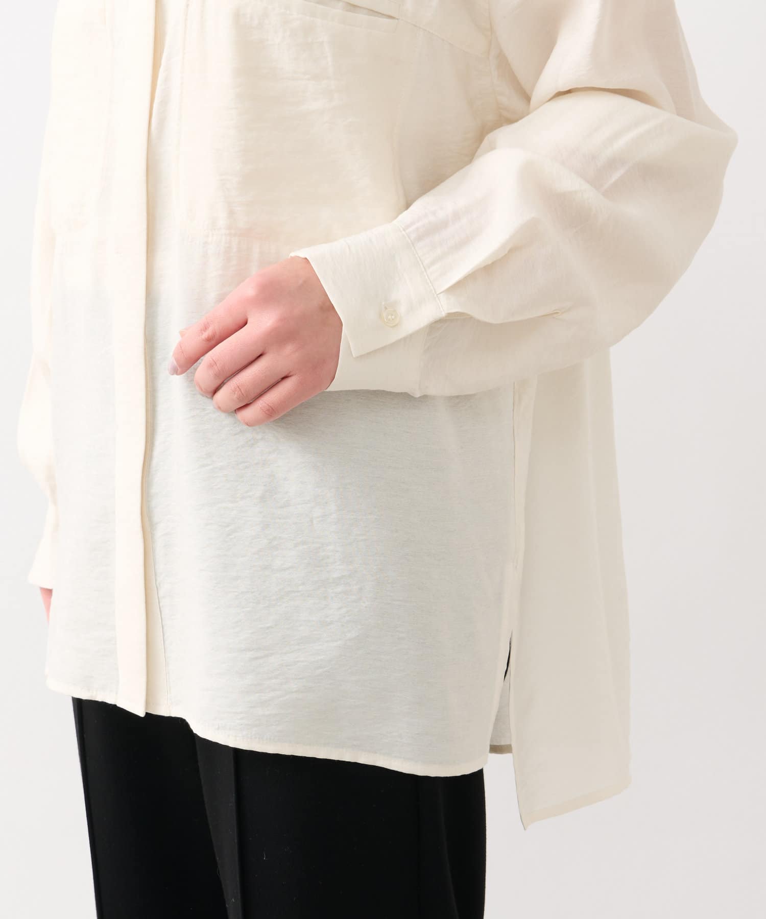 程良くゆとりのあるシルエットのバンドカラーシャツ