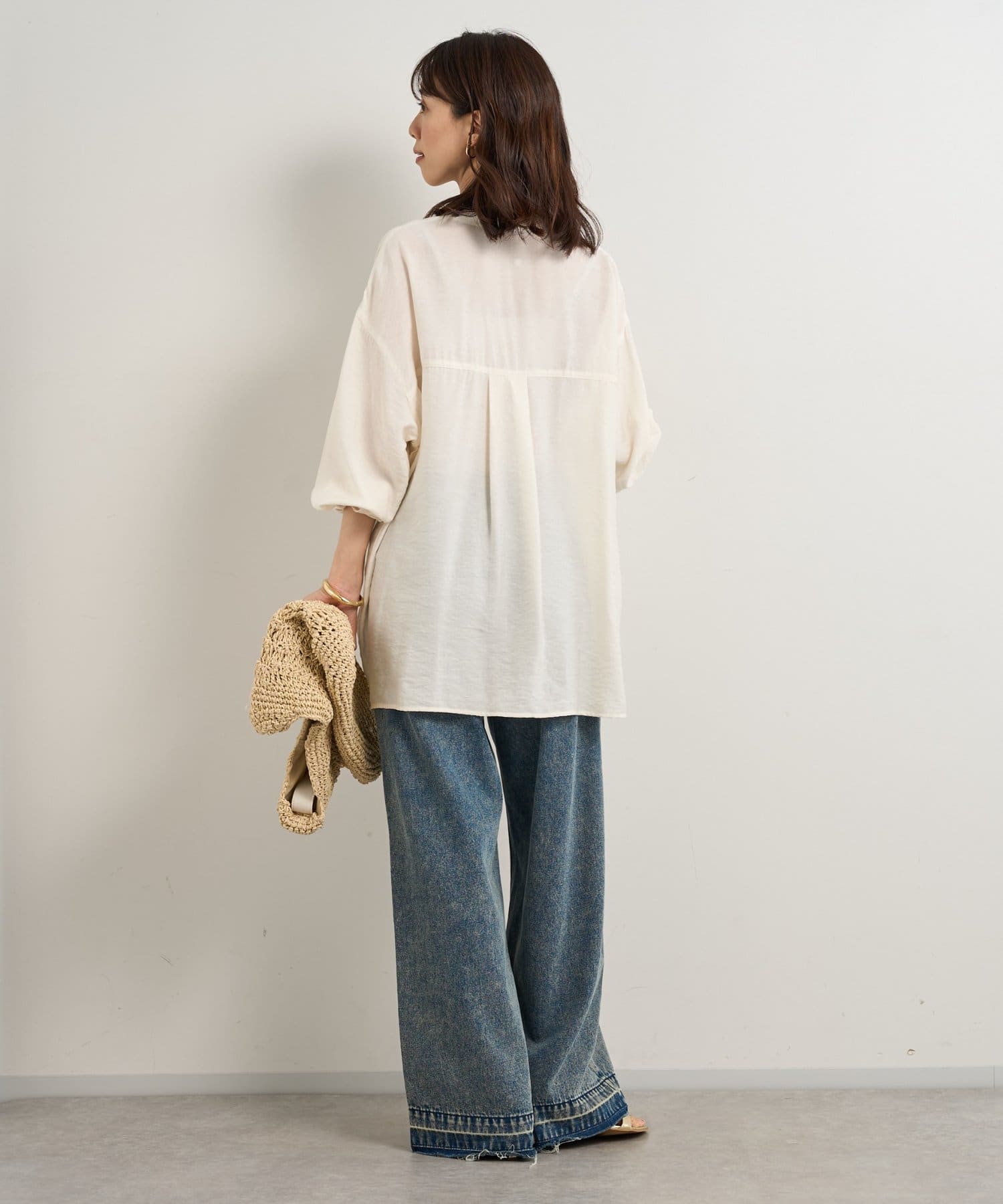 ・ややオーバーサイズに仕上げることで女性らしい抜け感を演出し、