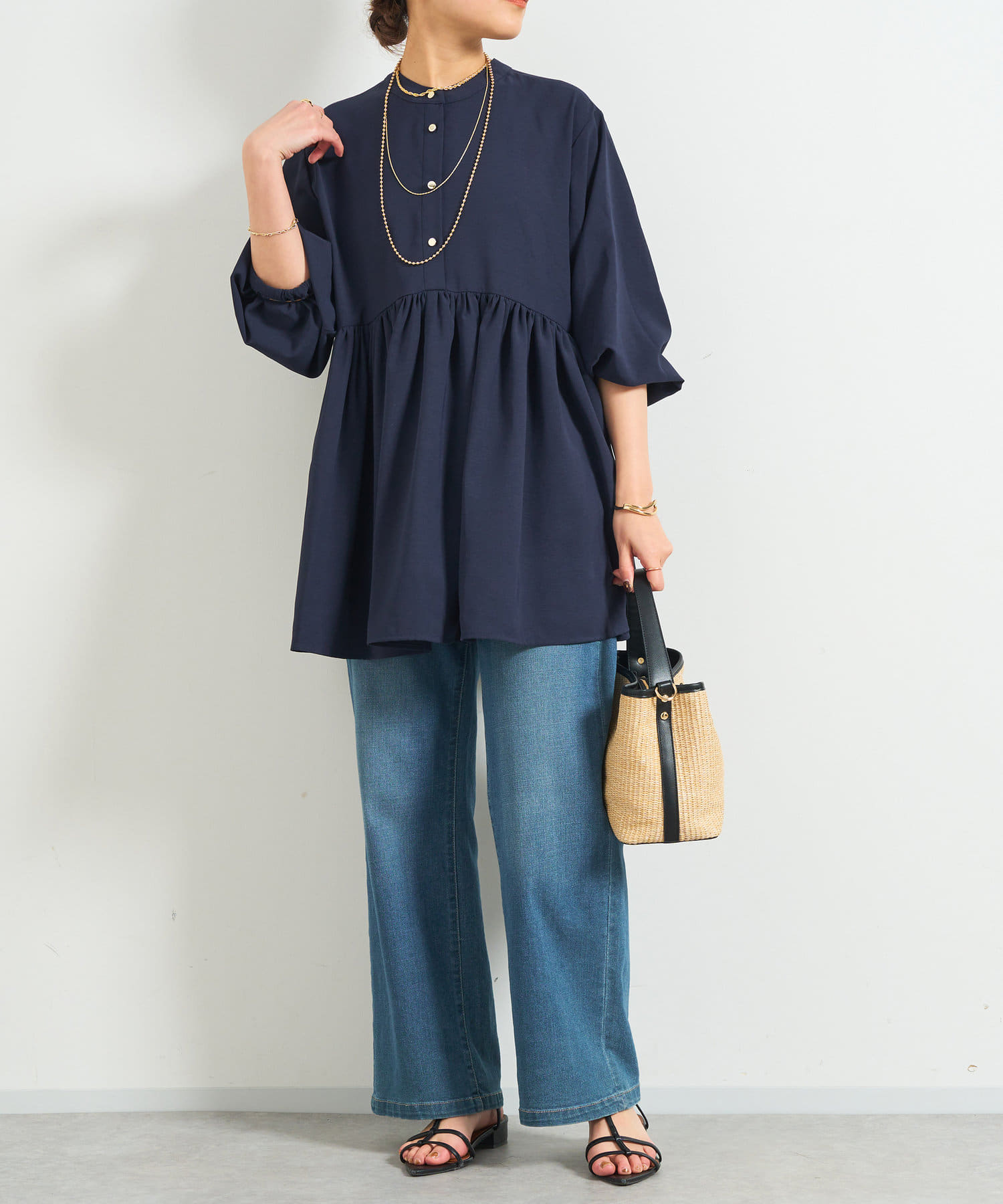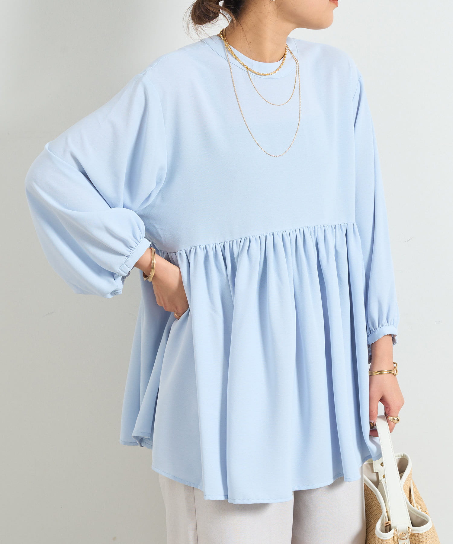 ・トレンドのバルーンスリーブがポイントの前後2wayで着用できるチュニック