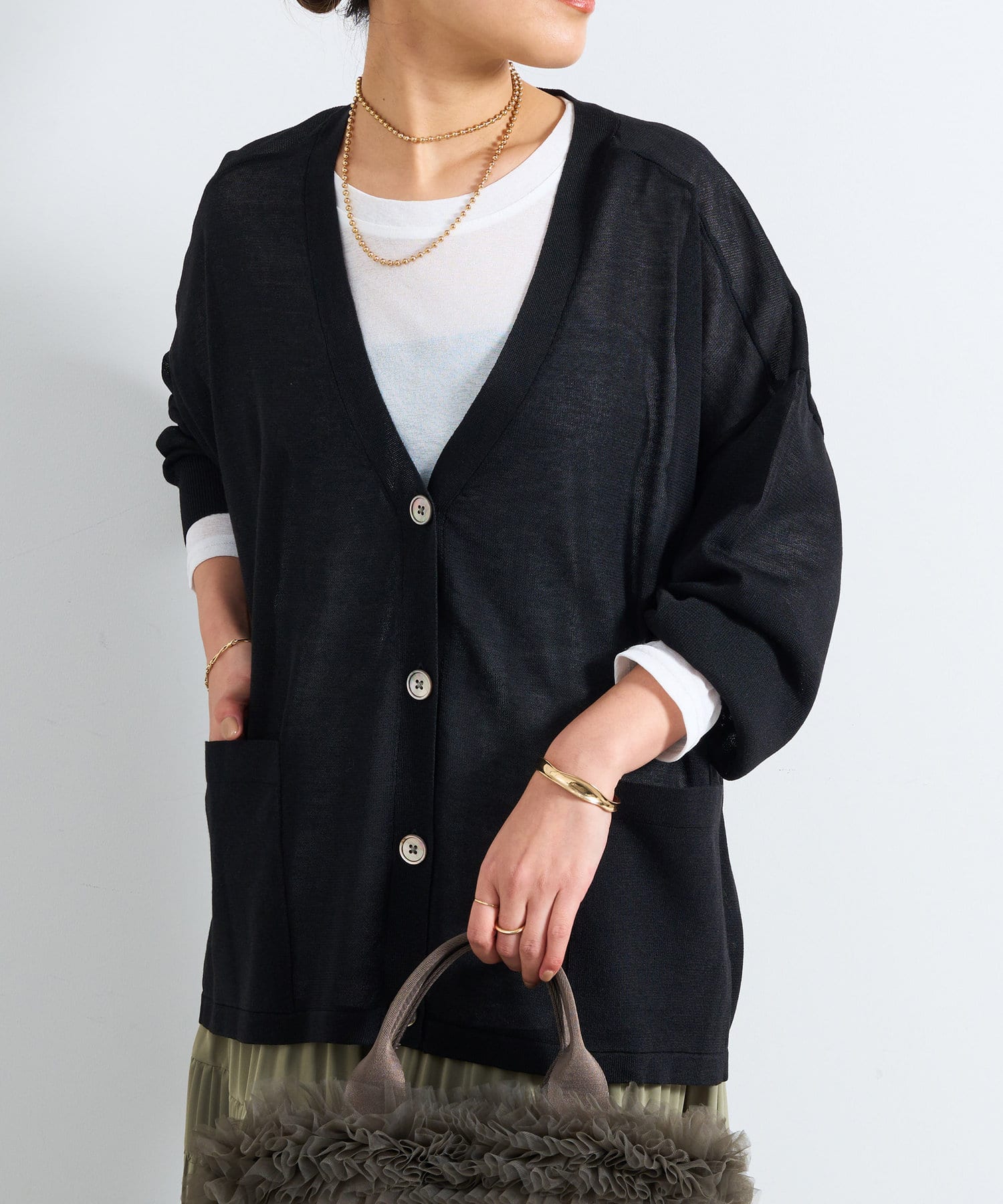 ・羽織りはもちろん、トップスとしての着こなしも旬な雰囲気に