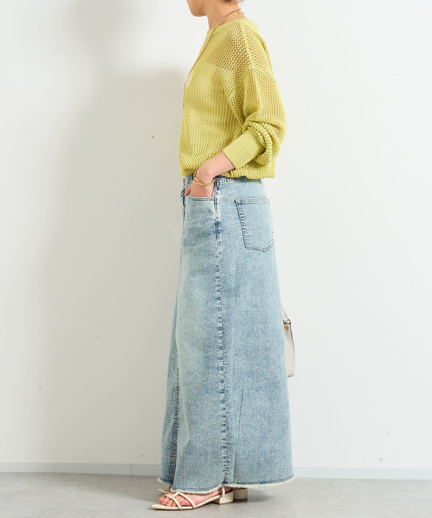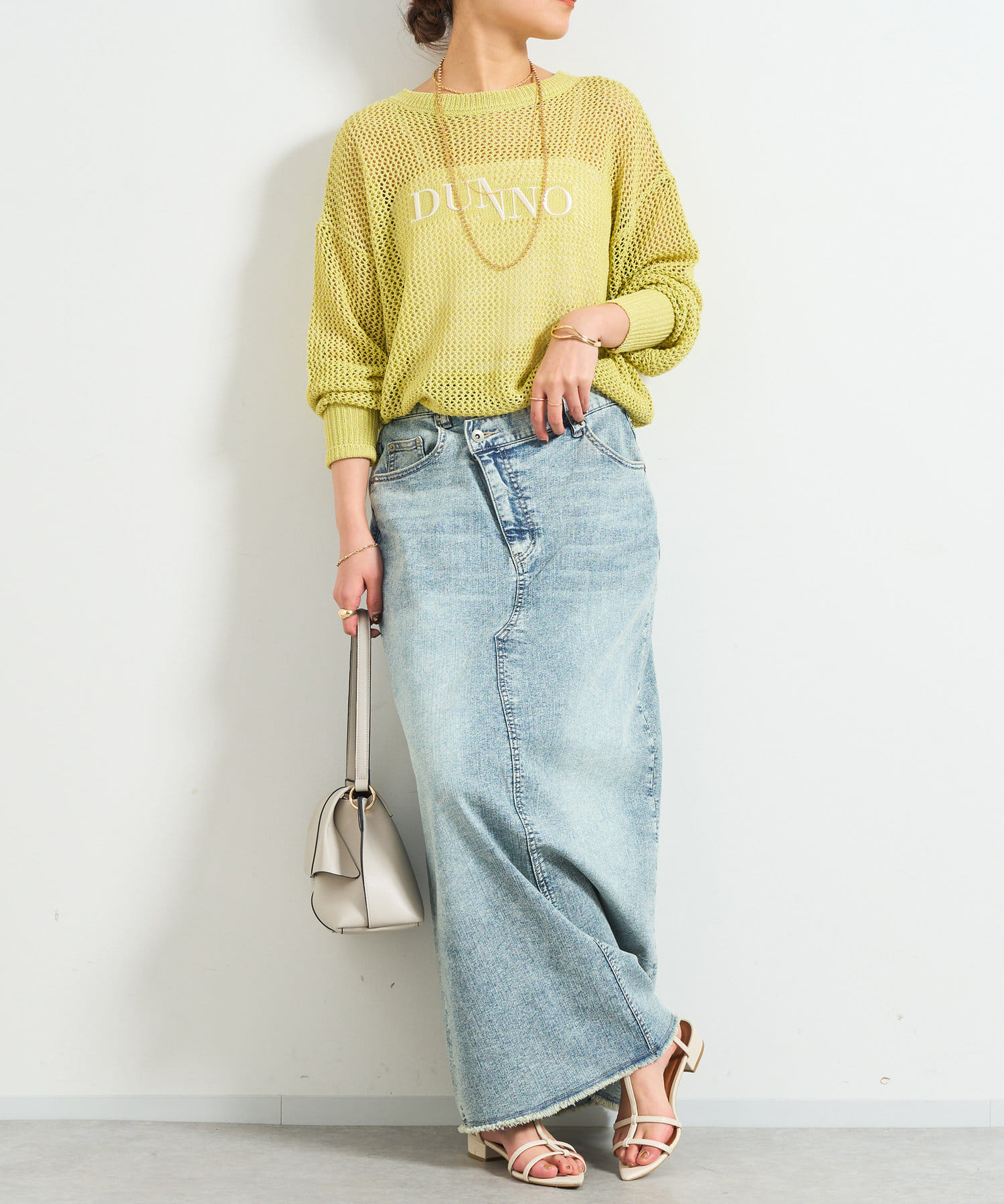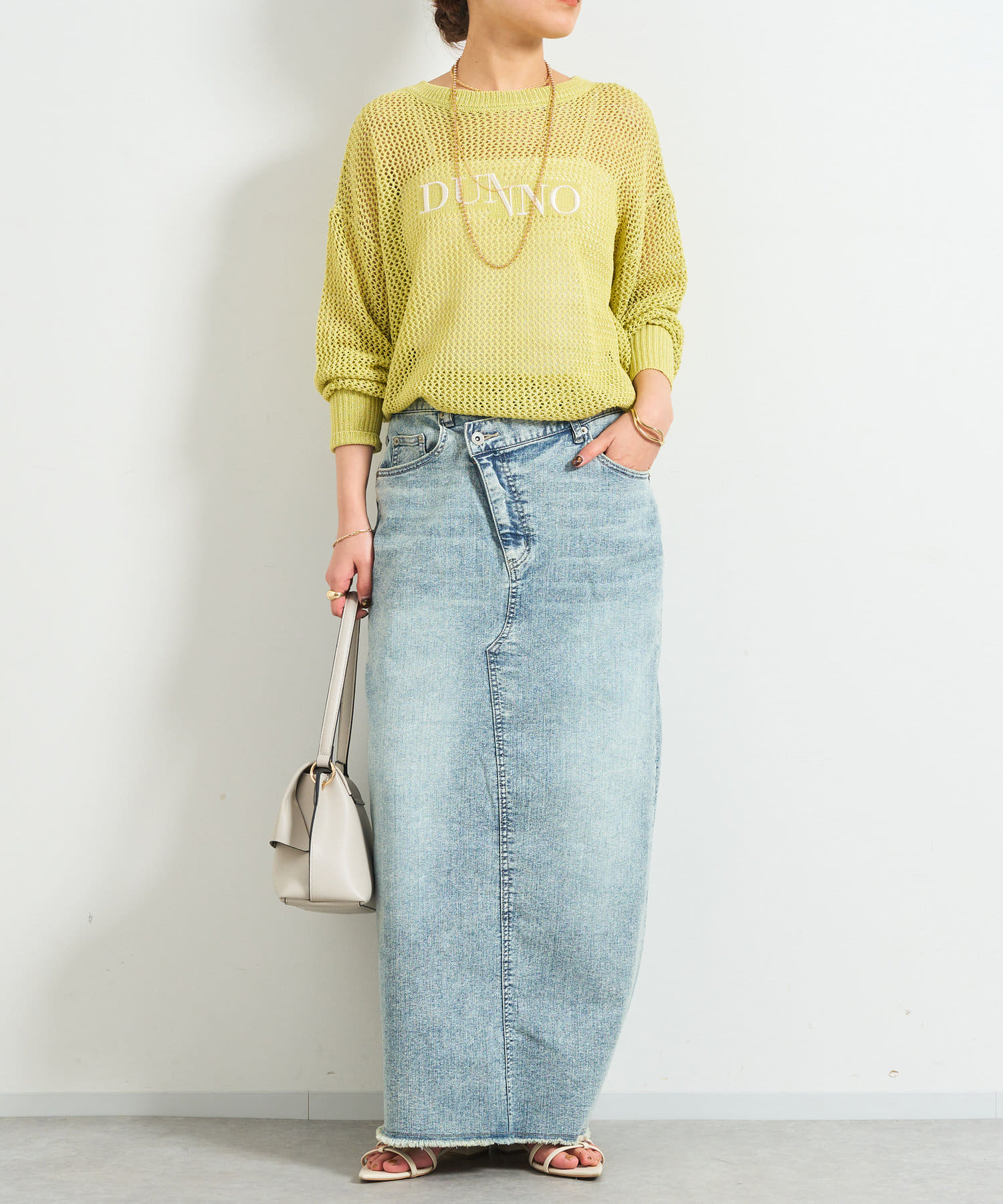 ややざっくりとした透かし編みがスタイリングにこなれ感をプラス