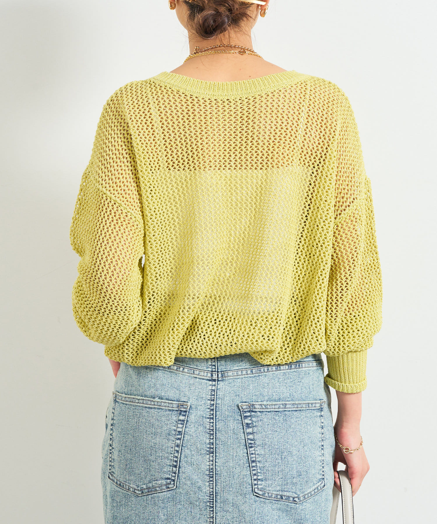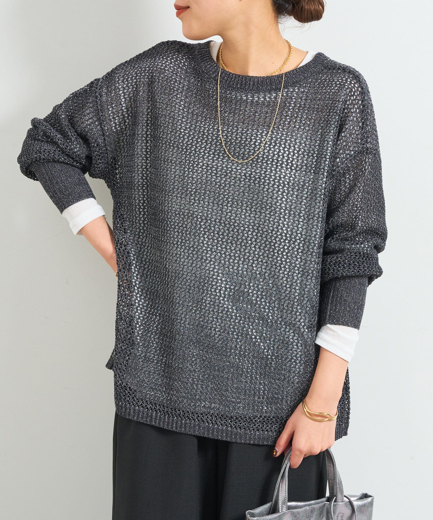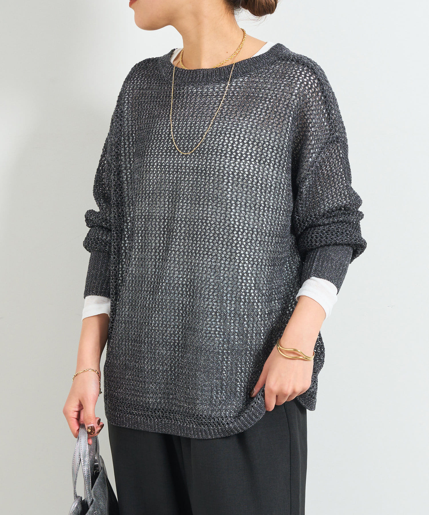 キラキラと輝くラメをMIXした華やかなメッシュニット