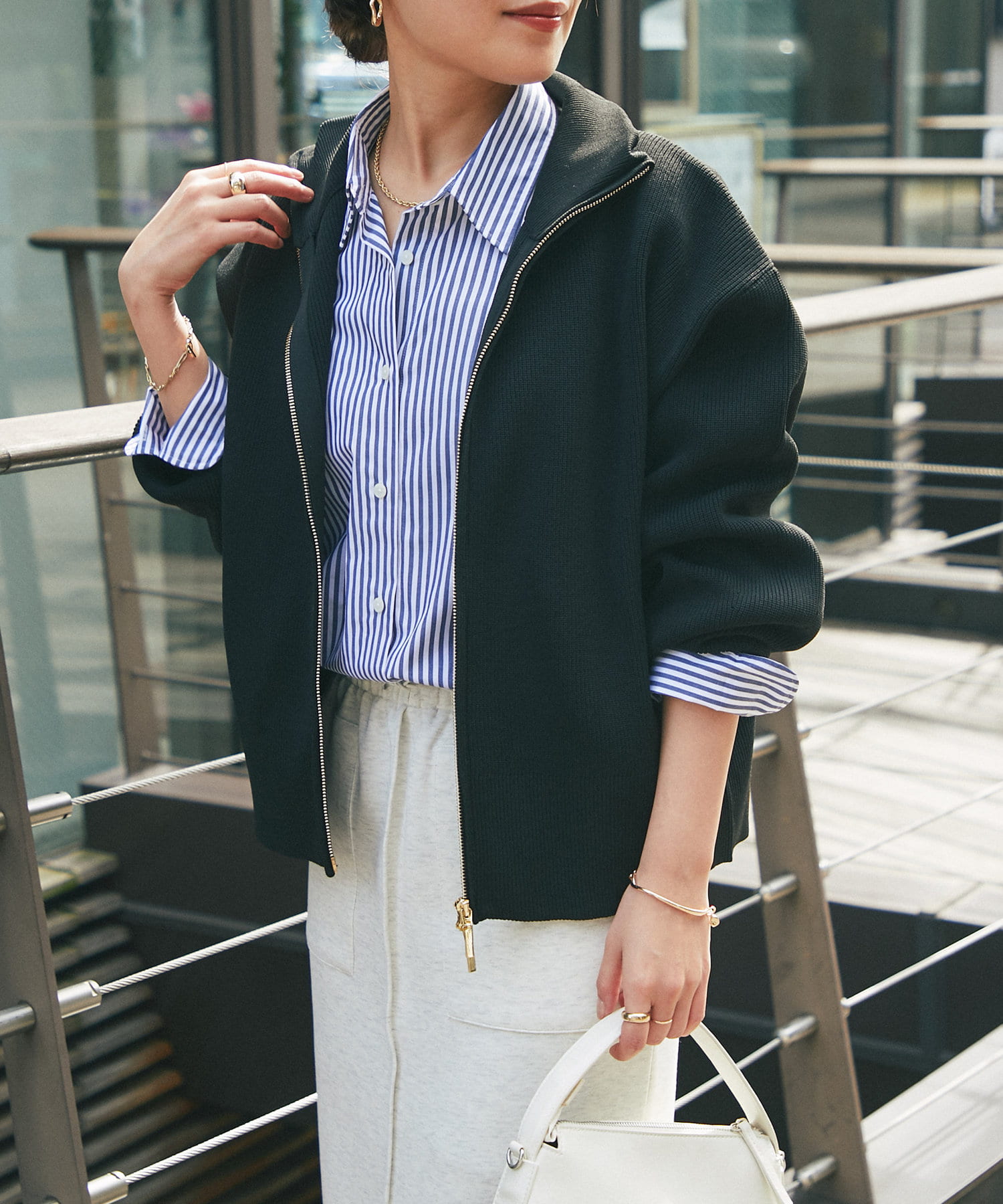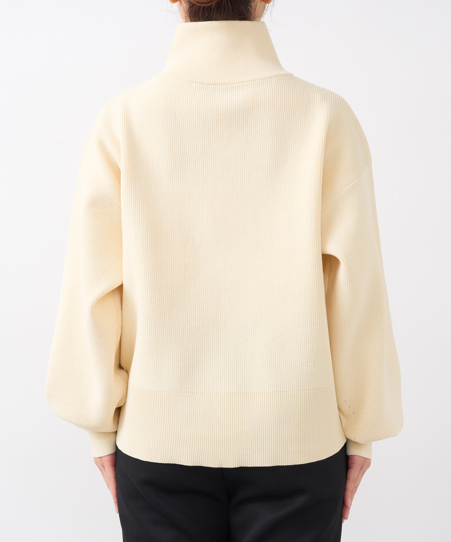 ・ハイネックとゴールドのジッパーがアクセントとなり、さりげない上品さをプラス。