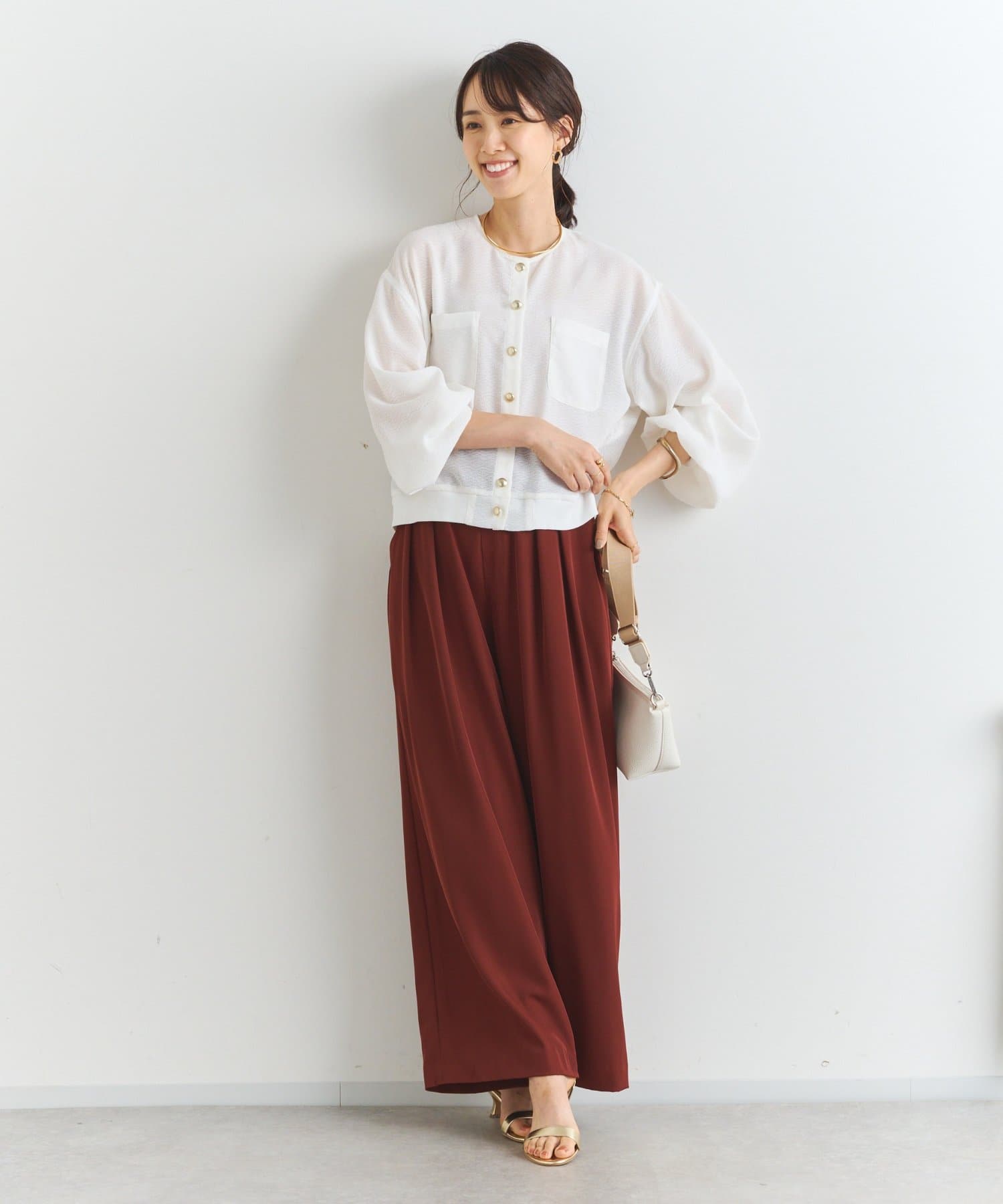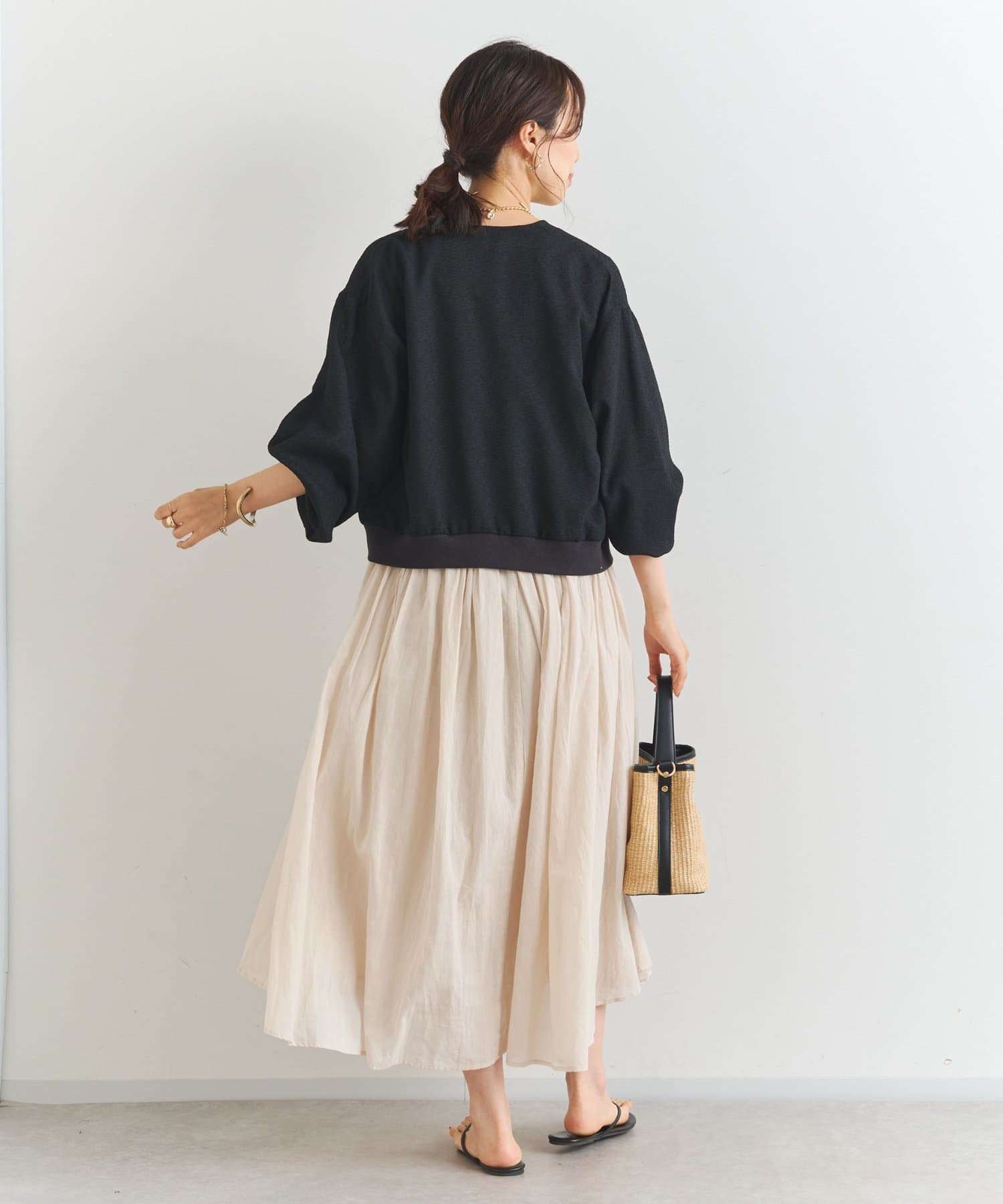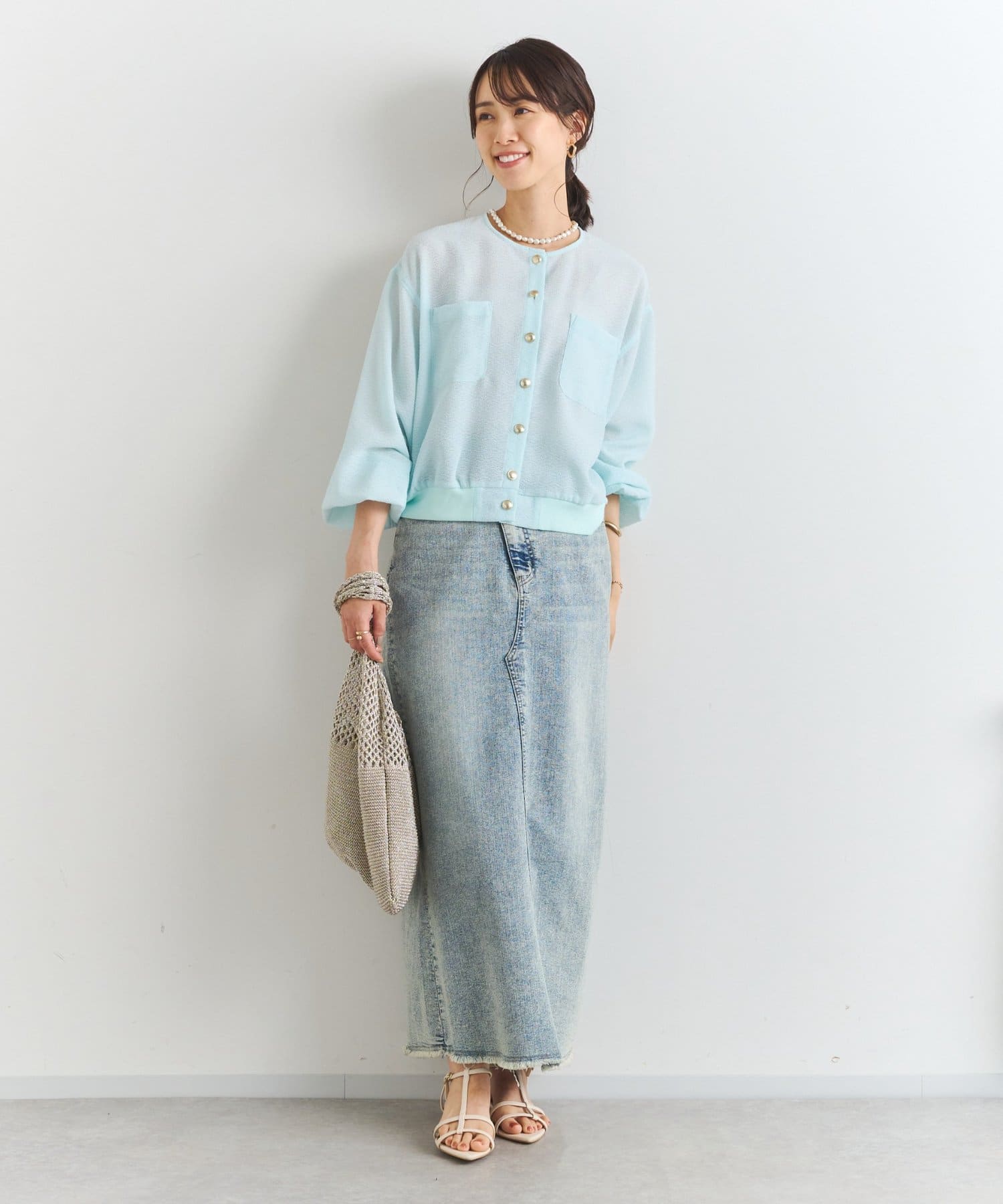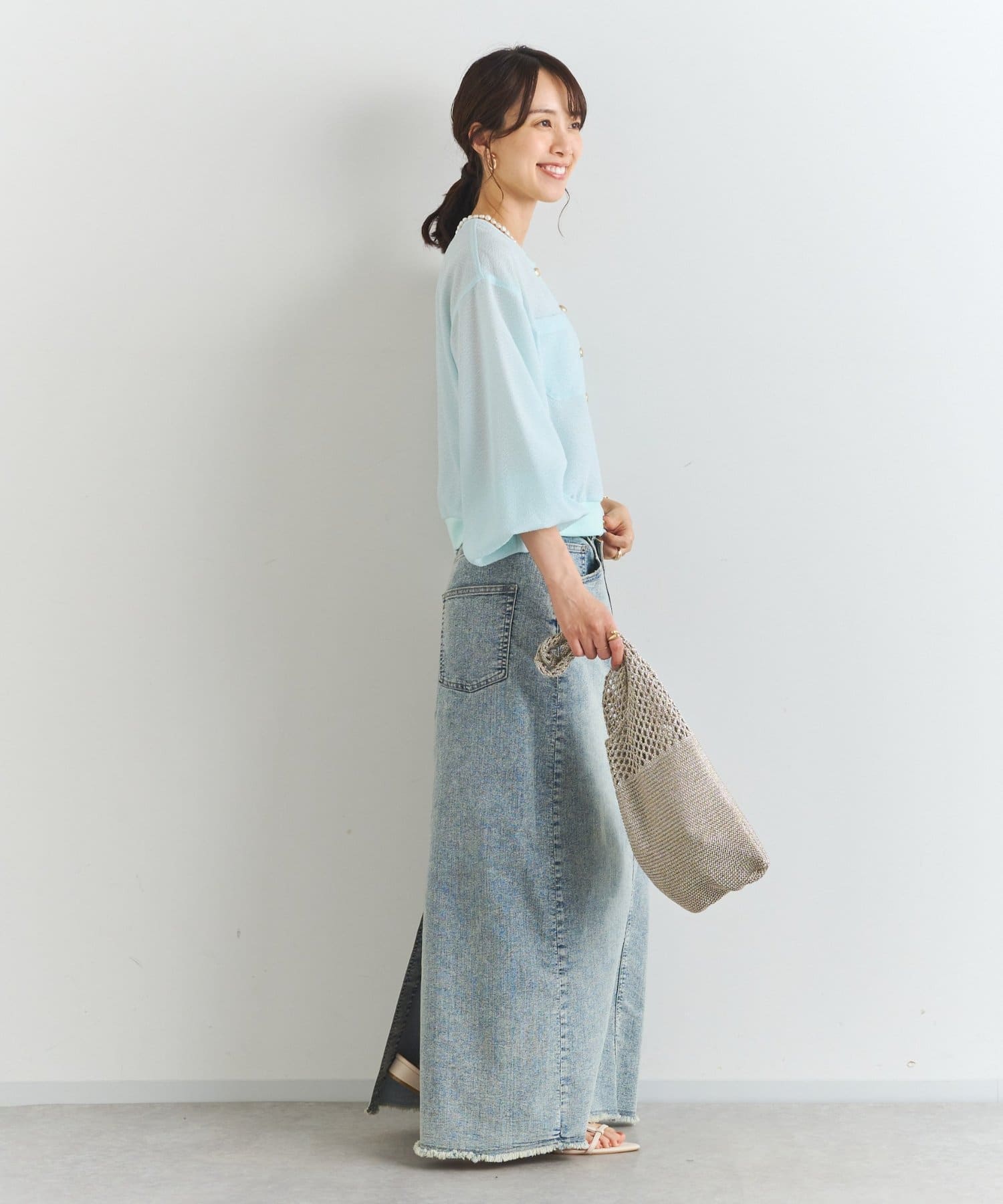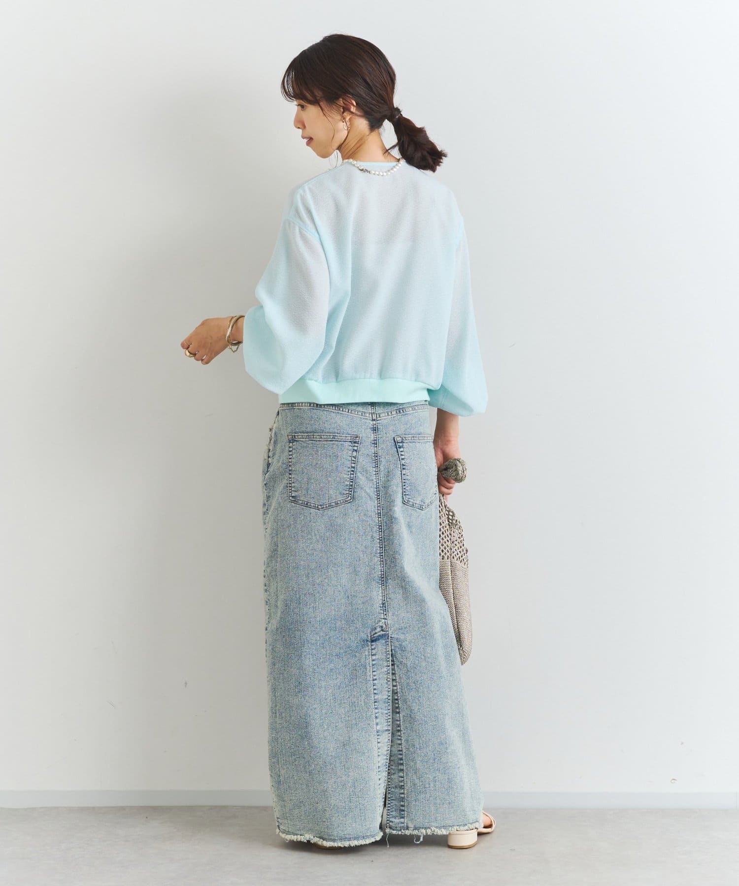 ・ナロースカートやマーメイドシルエットのスカートを合わせてきれいめに
