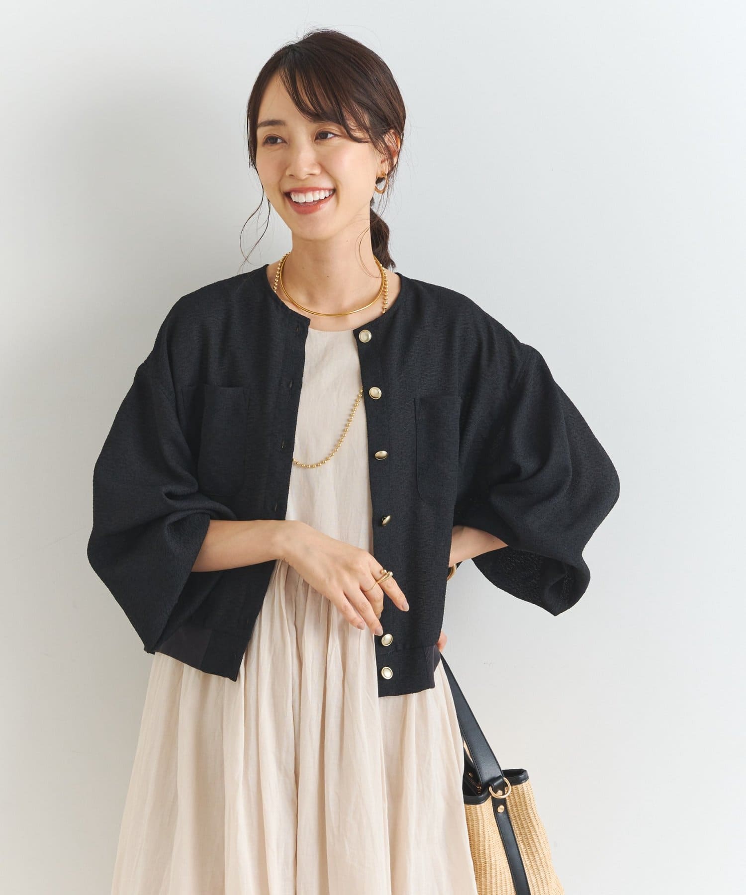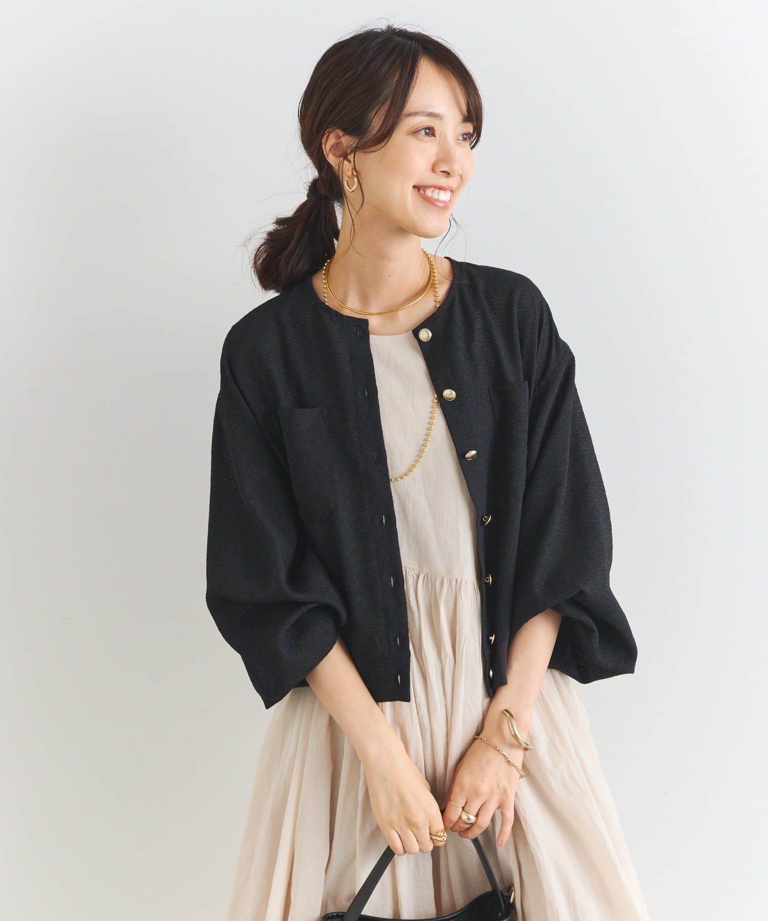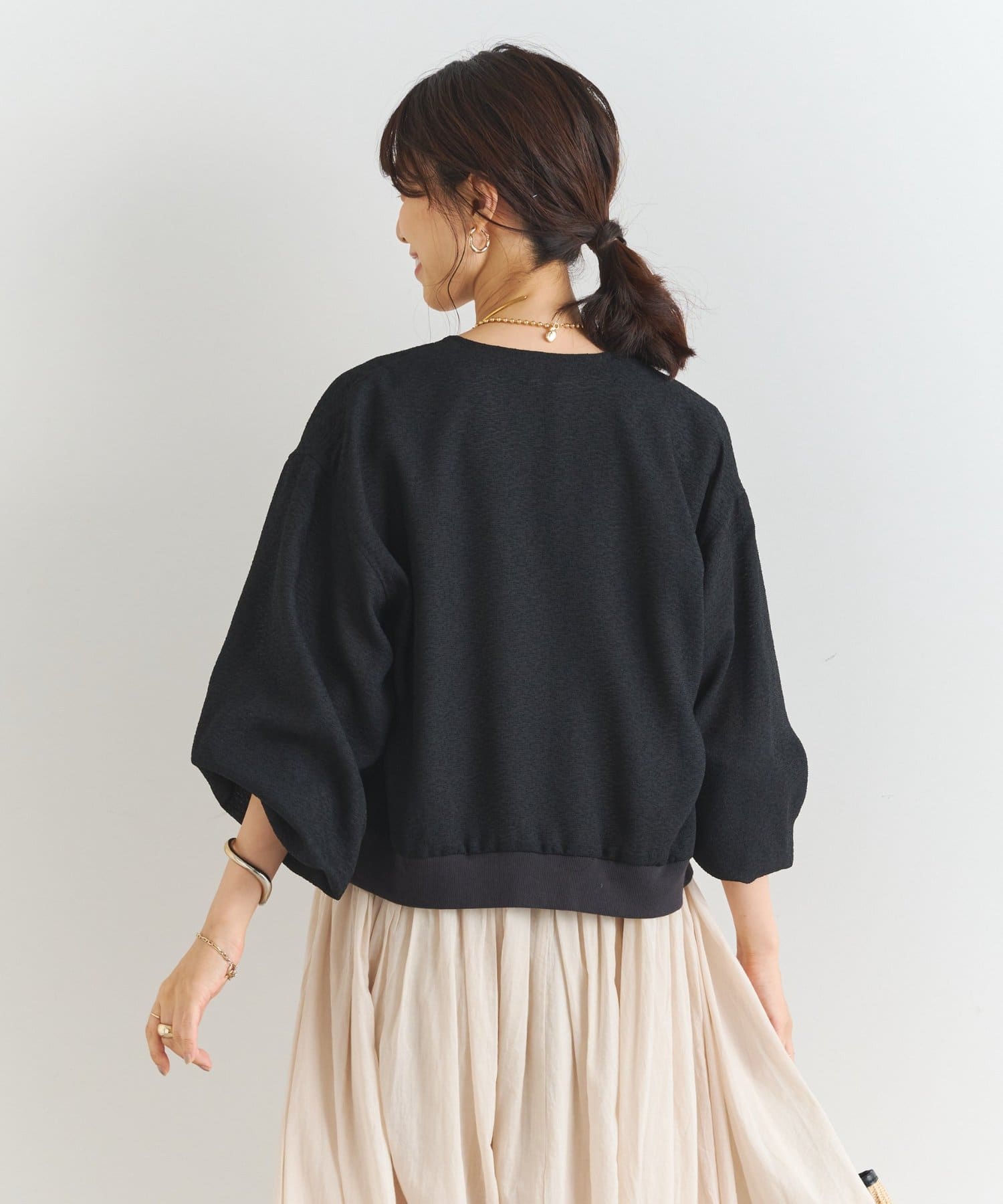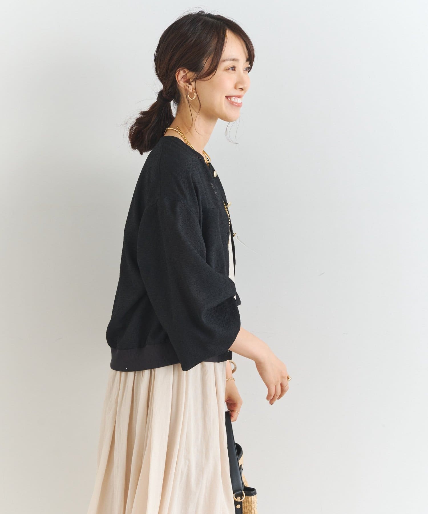 ・釦を開けてカーディガンとしはもちろん、前を閉じてプルオーバーとしての着用もおすすめ