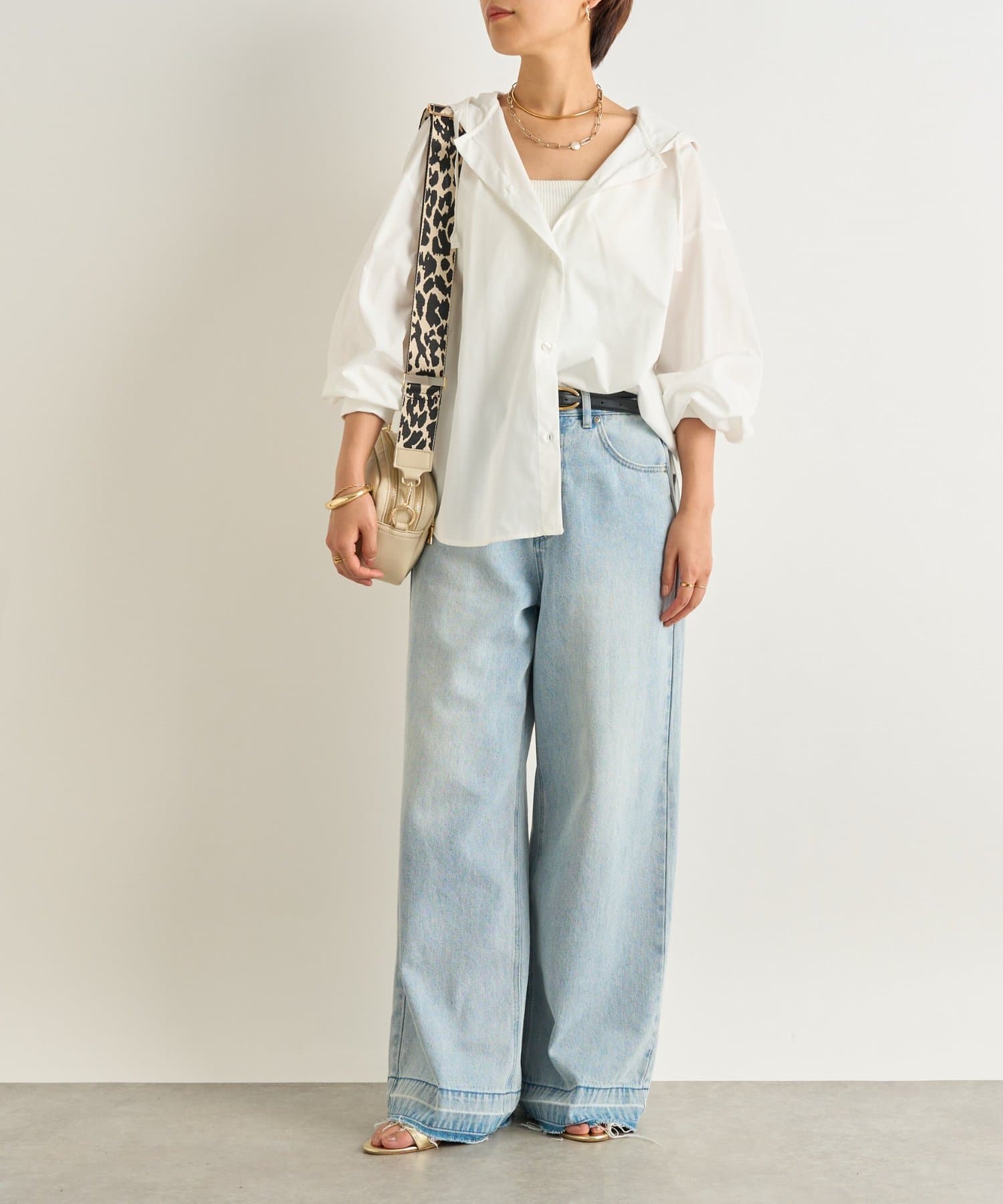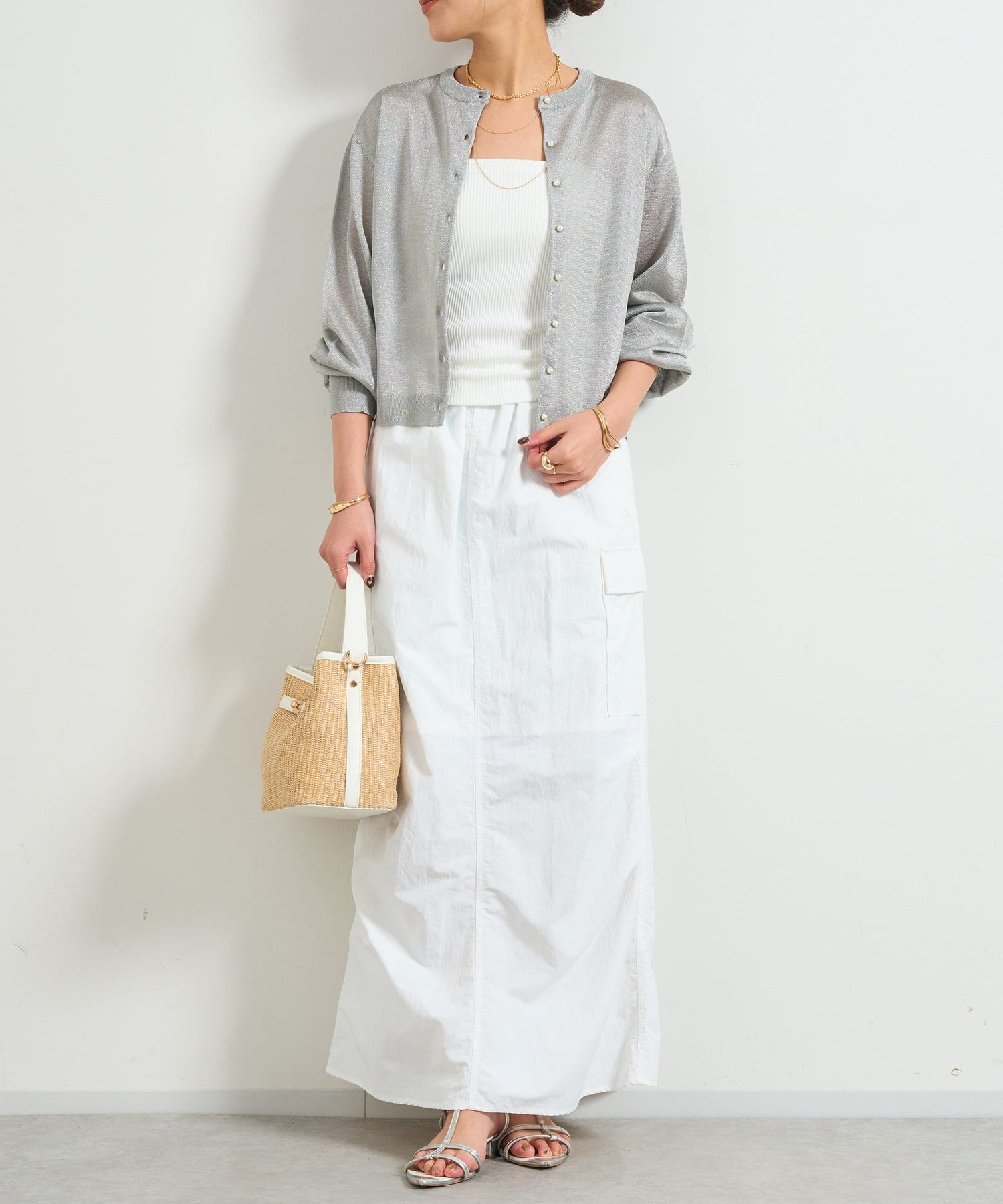 ベアトップのようなシルエットでトレンド感あるルックスに