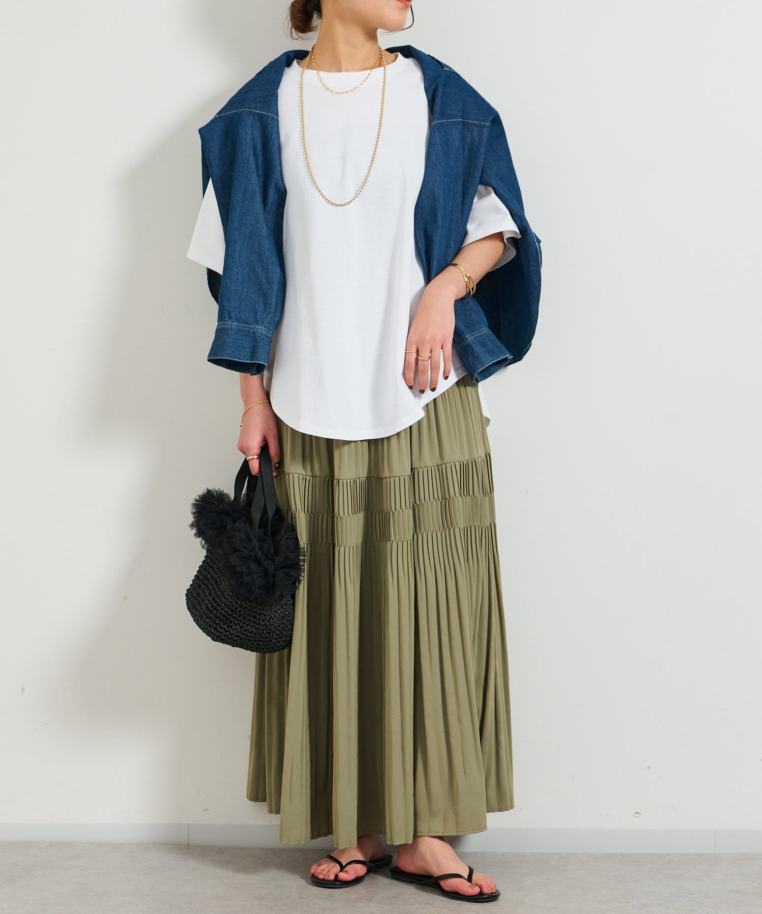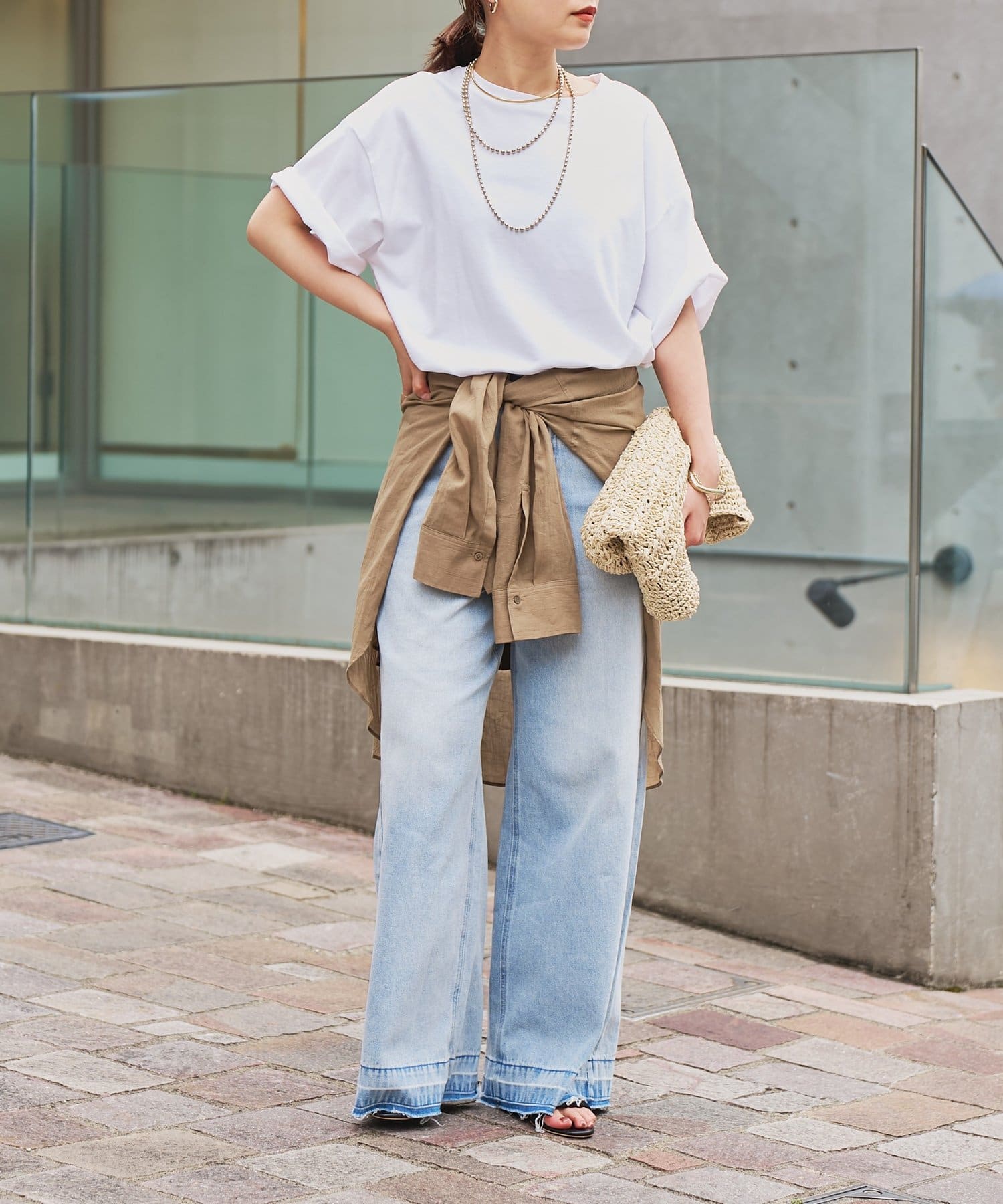 ・前後高低差のあるやや短めの着丈でボトムスを選ばず、