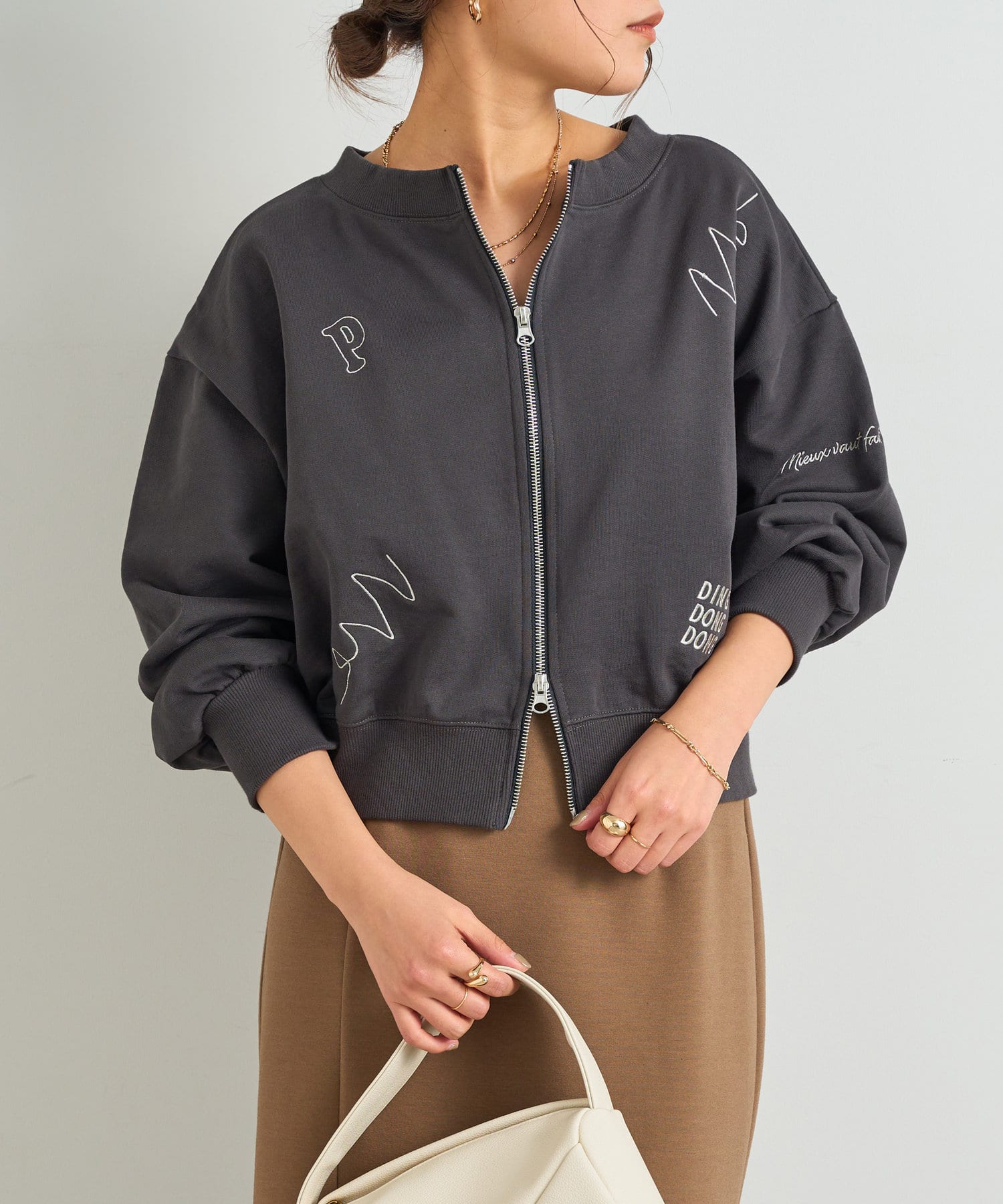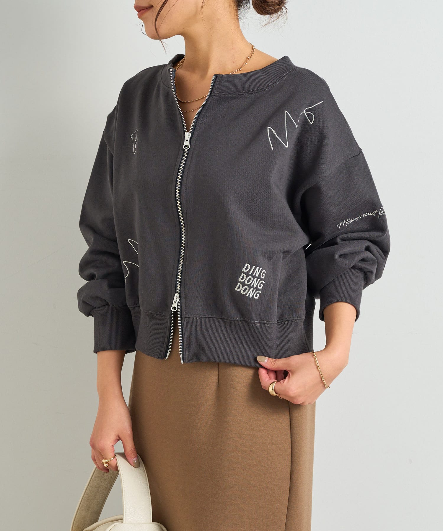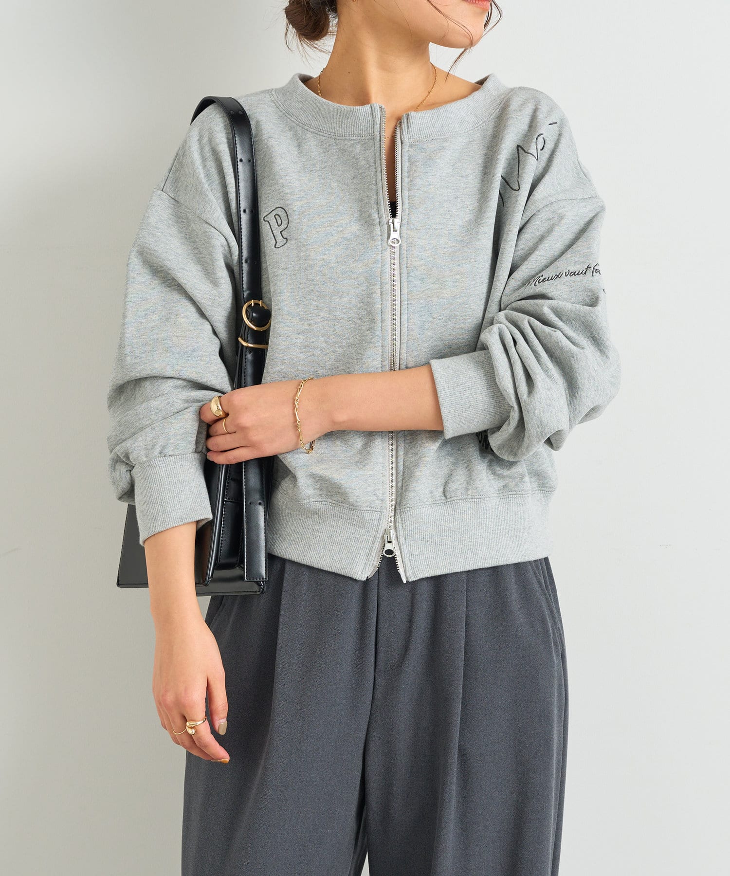 ダブルジップで気分に合わせてアレンジが可能ロゴトップス