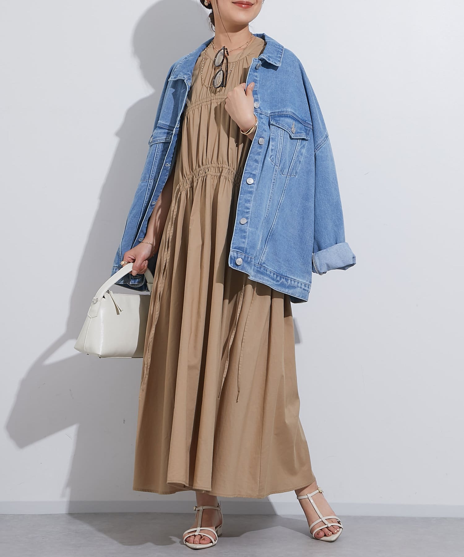 ・今季はデニムのベアワンピースとの"デニムオンデニムスタイル"が新鮮な印象に