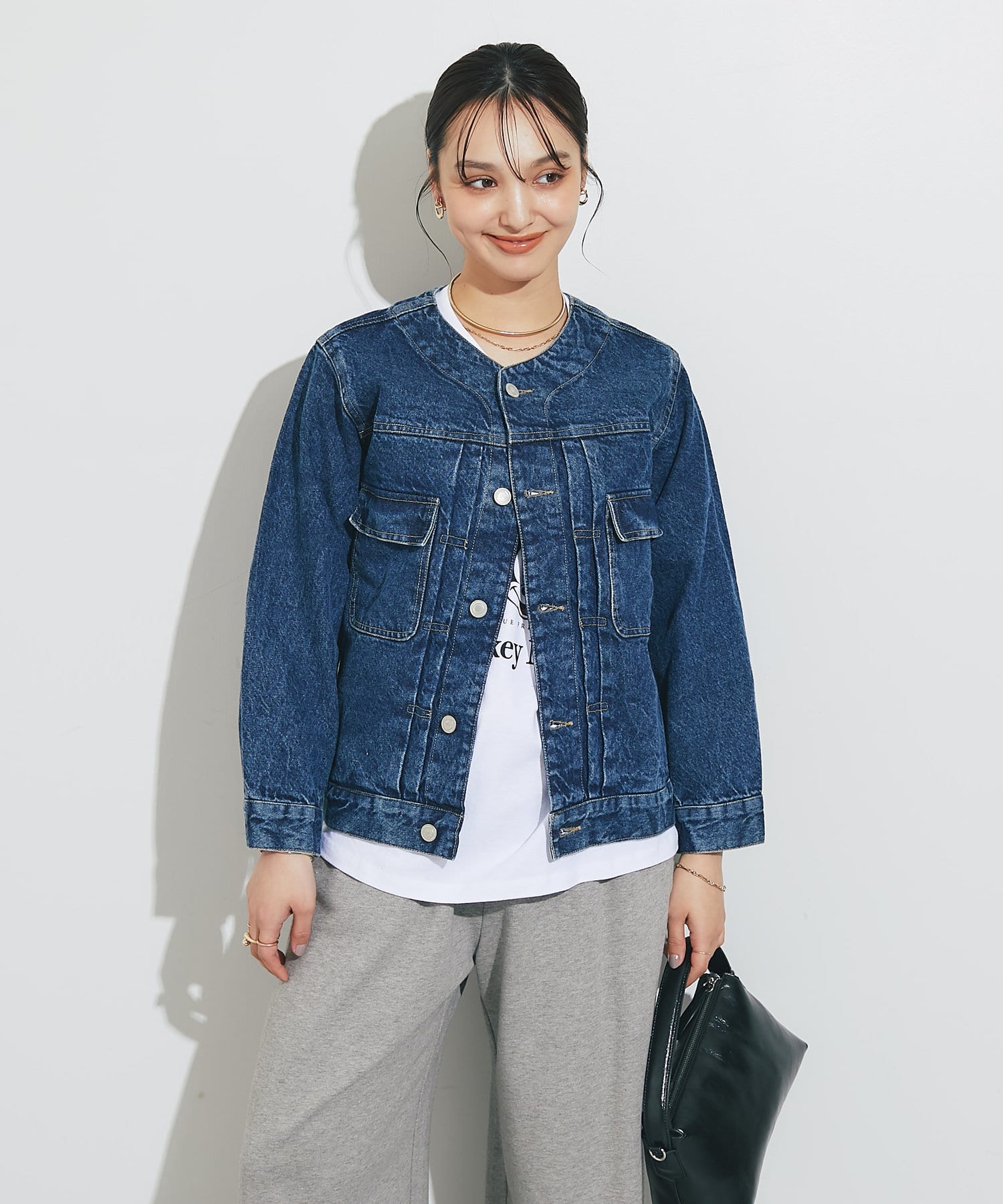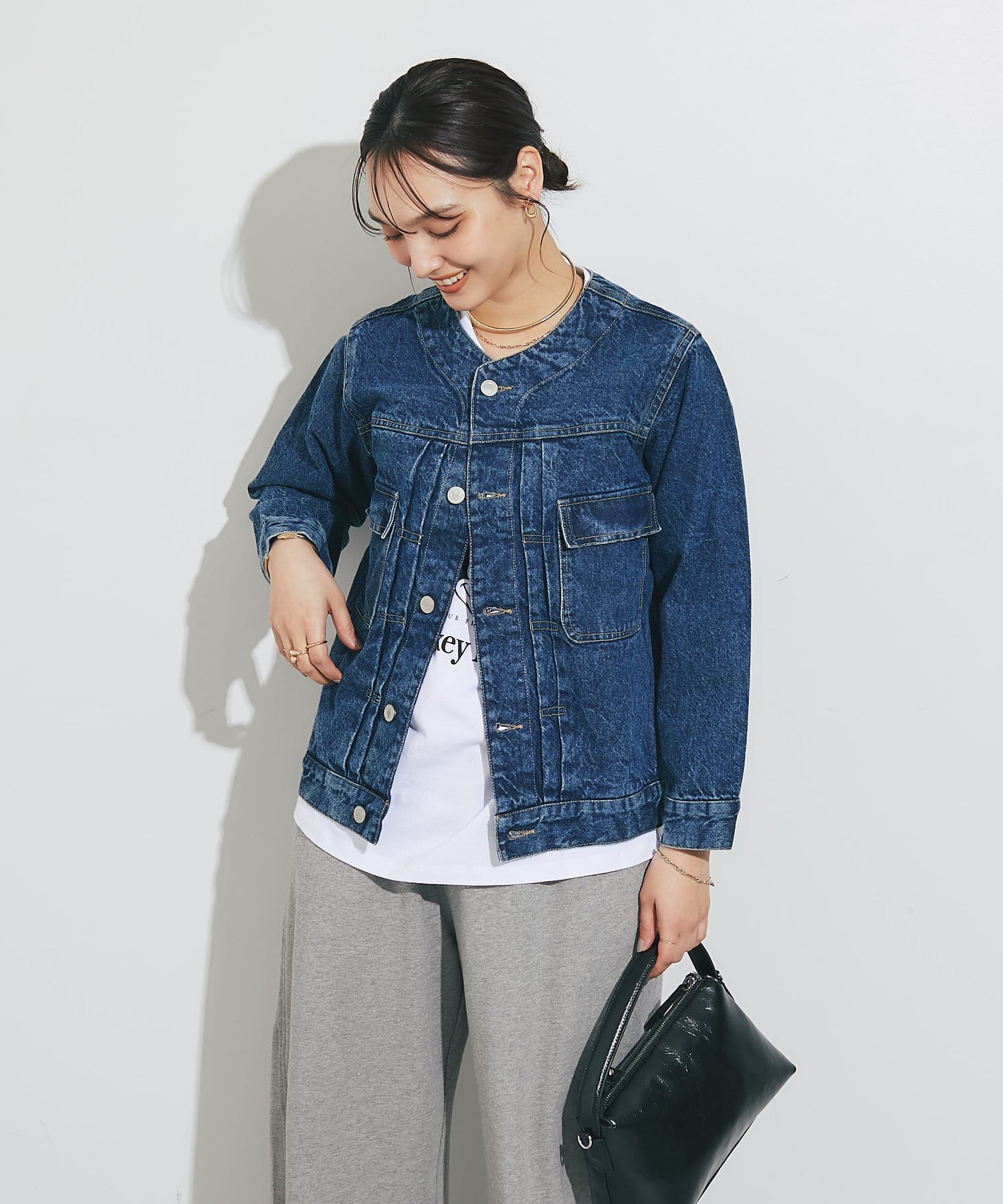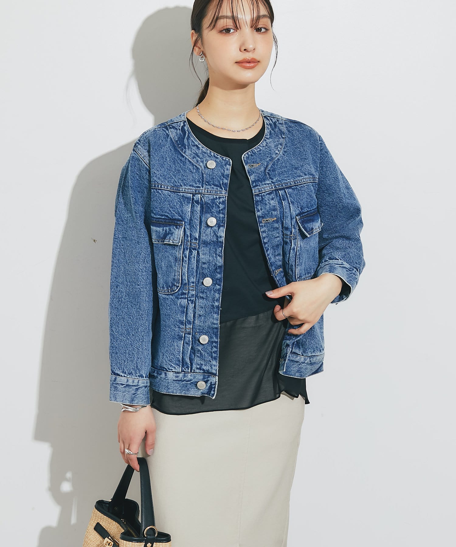 《一枚でこなれ感・着回し抜群》デニムノーカラージャケット