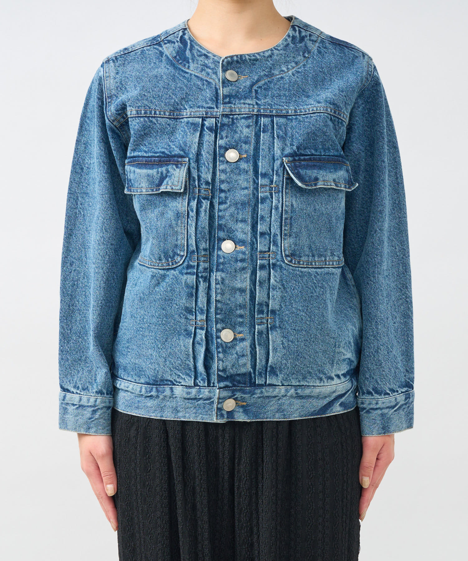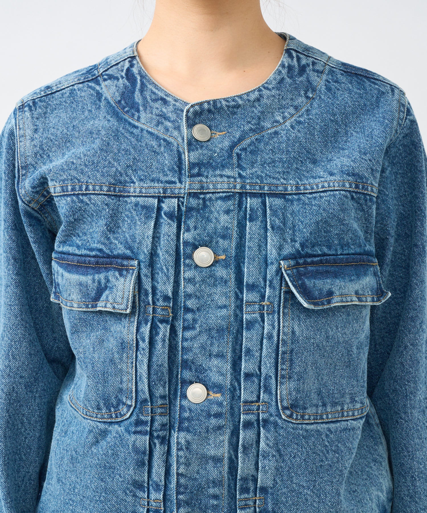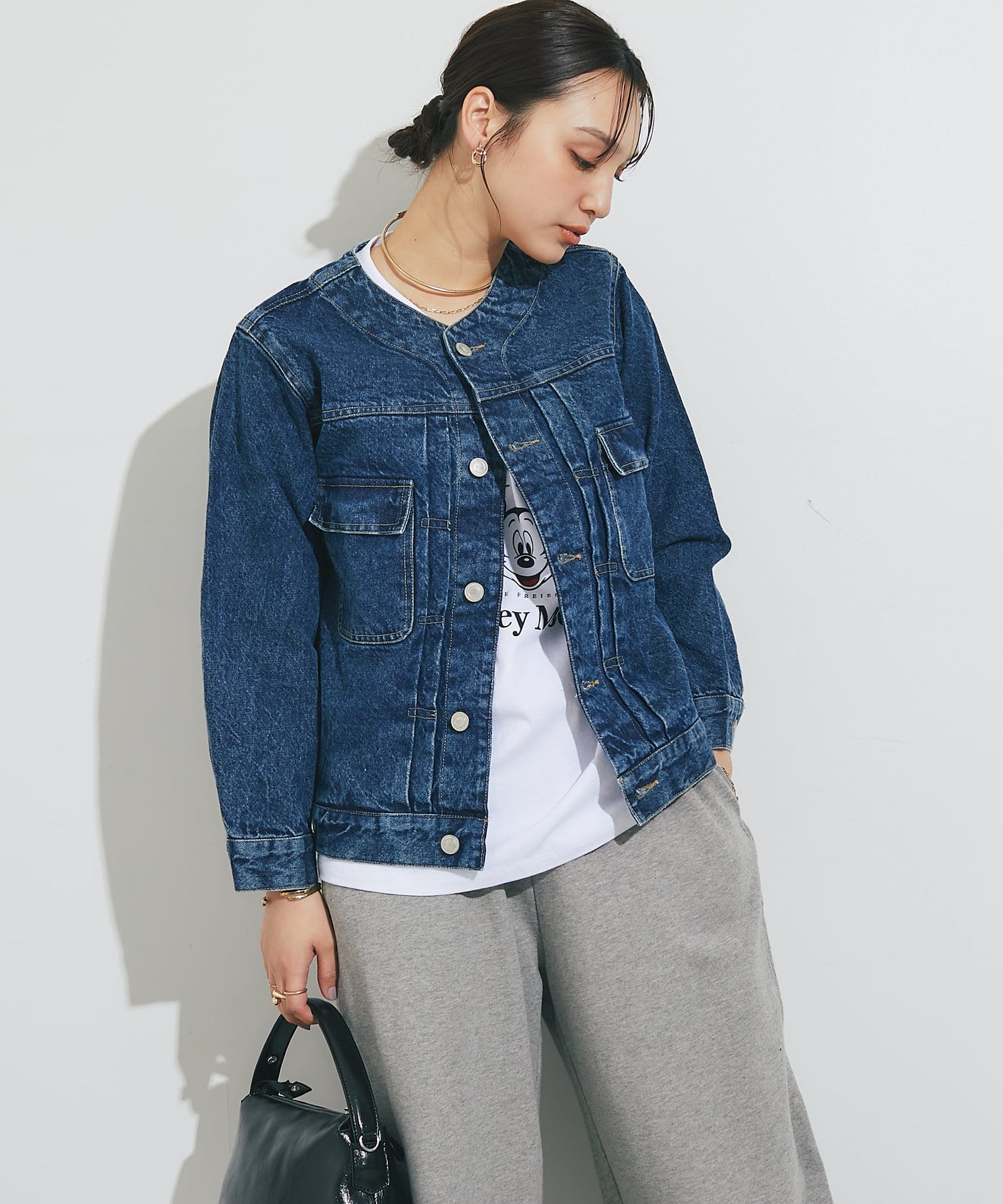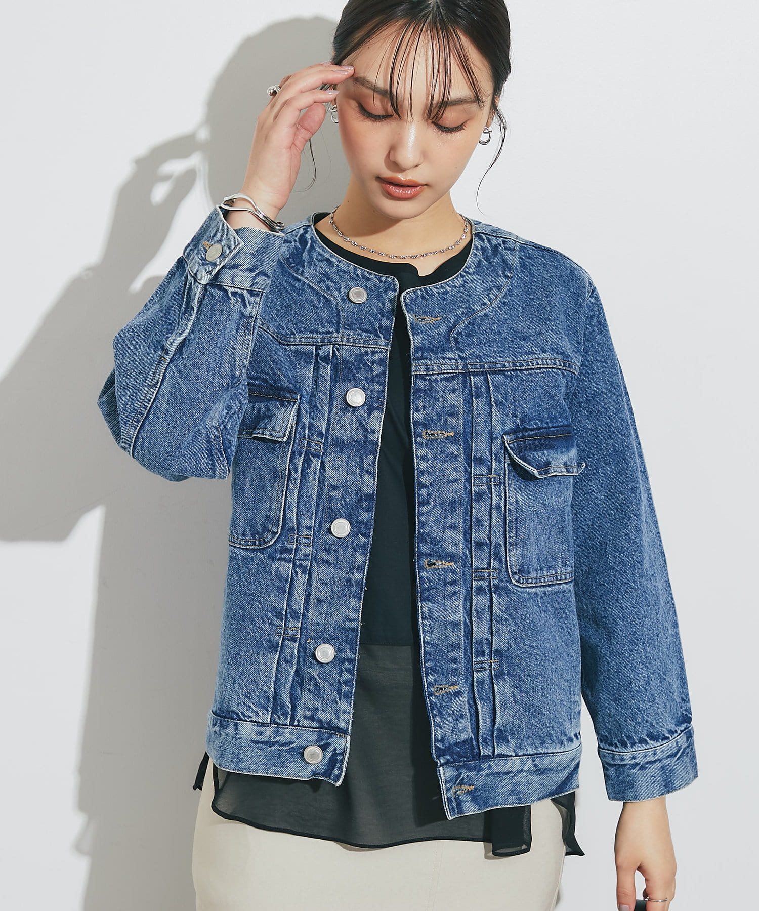 《一枚でこなれ感・着回し抜群》デニムノーカラージャケット