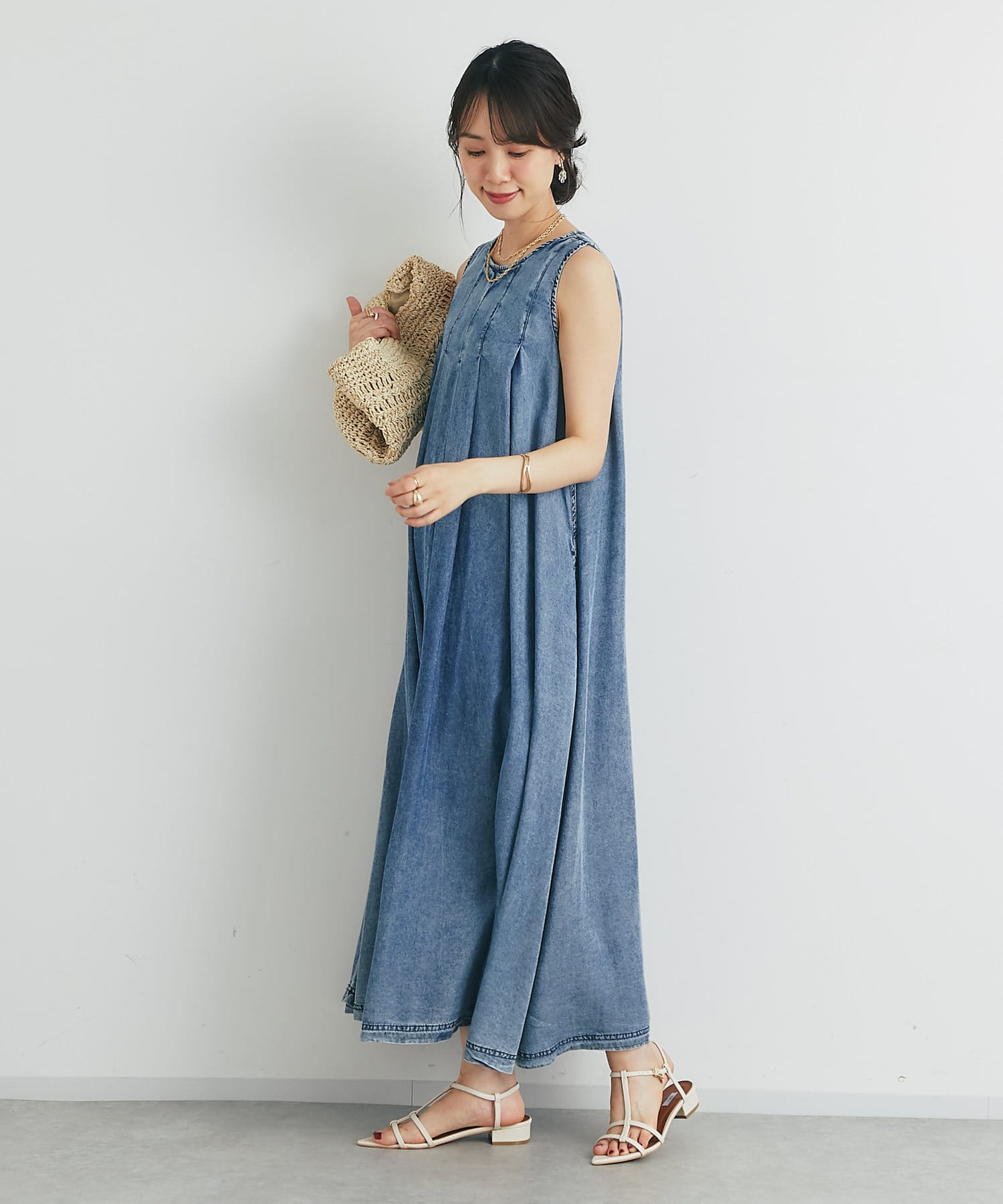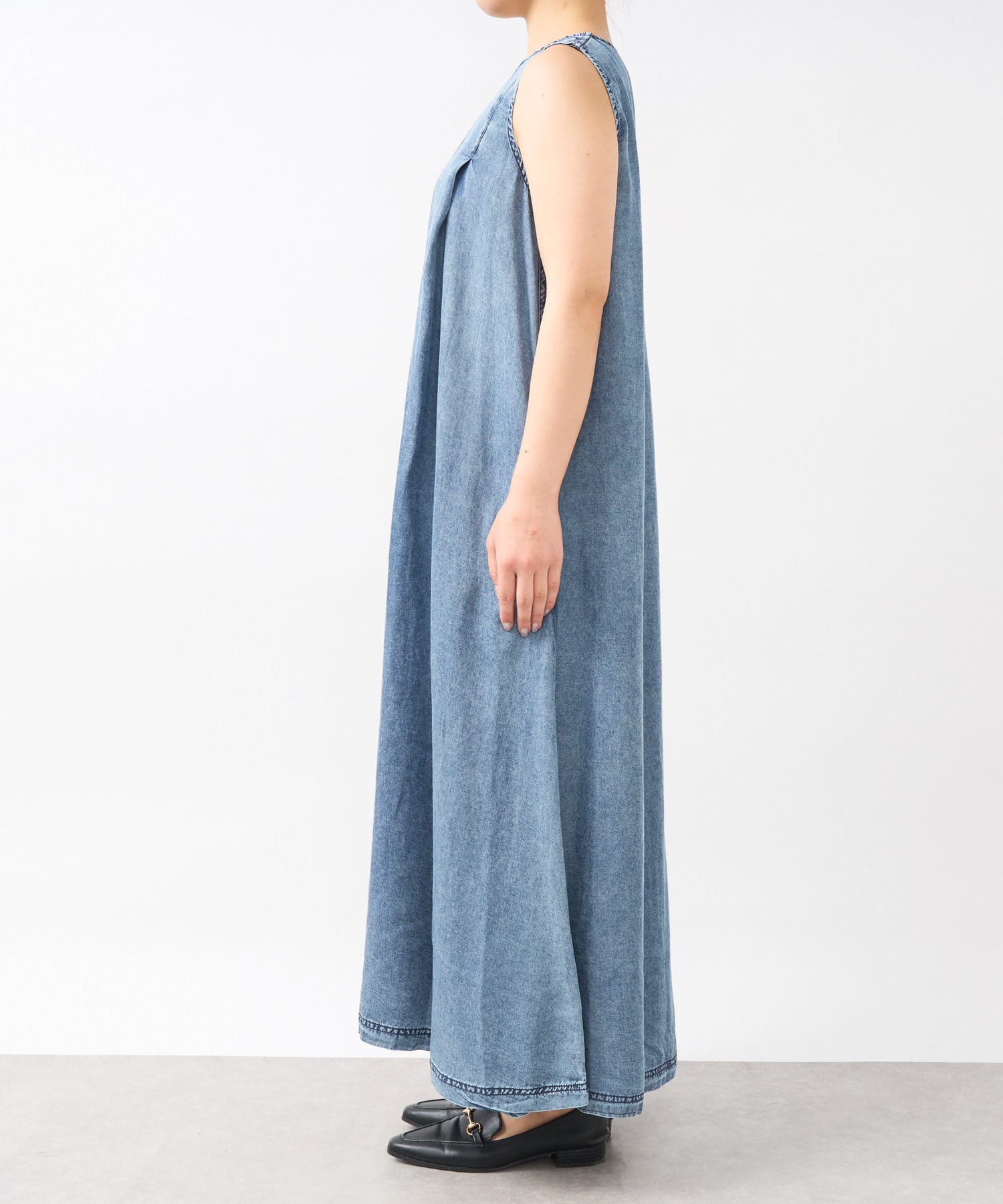 ・一枚でサマになる、着心地抜群のデニムロングワンピースです。