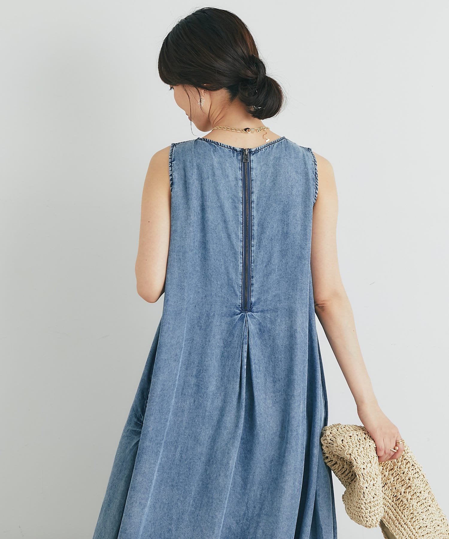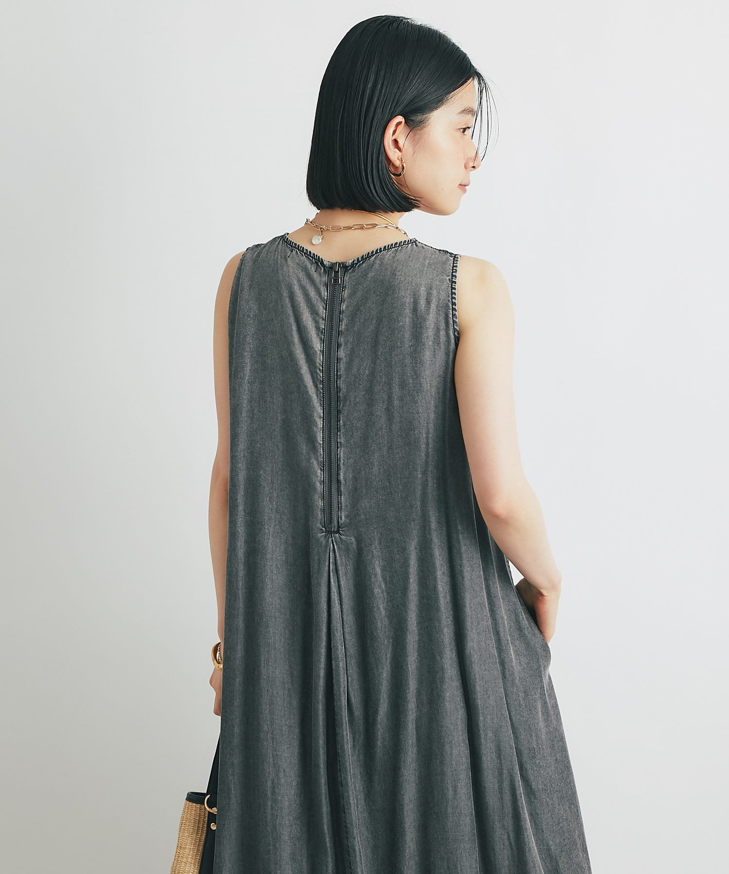 ノースリーブタックジップワンピース