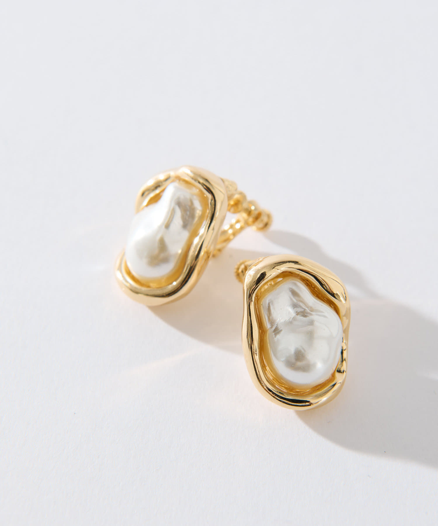 【GOLDY(ゴールディ)】メタルガラスパールイヤリング