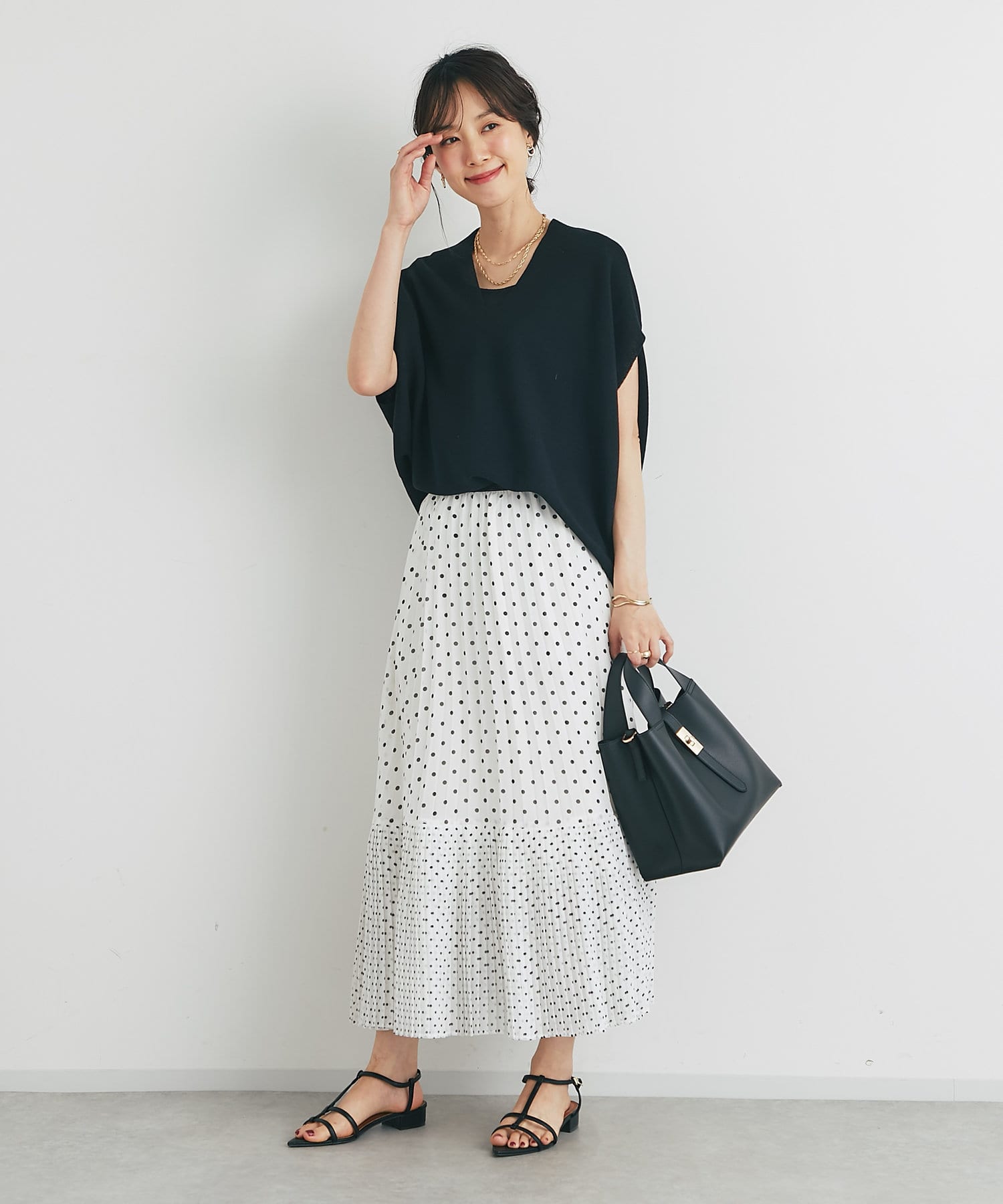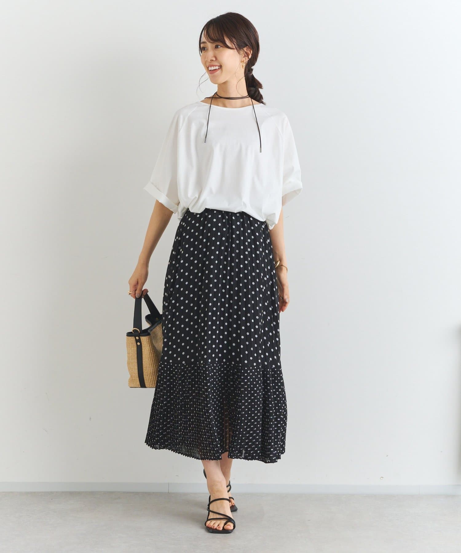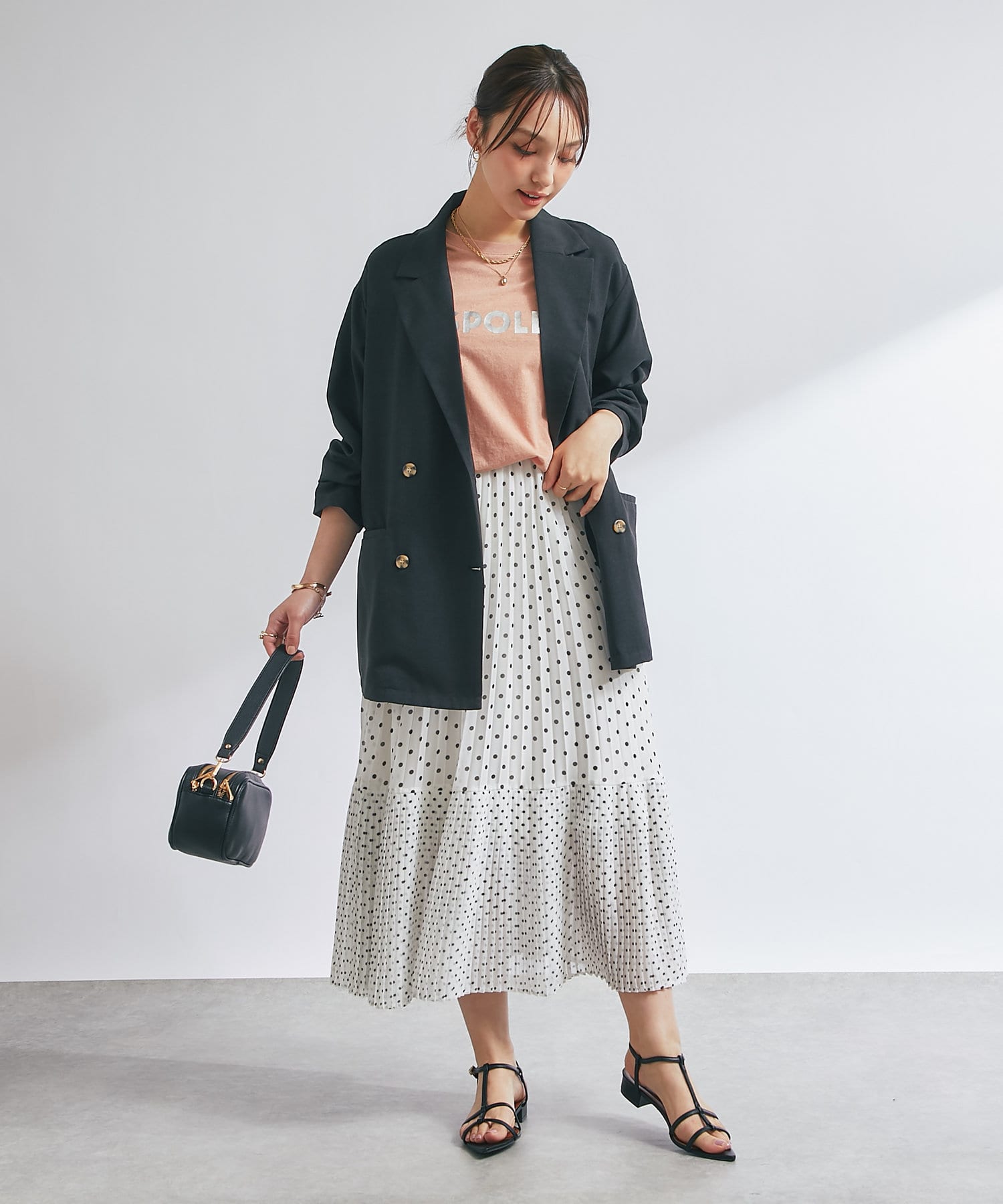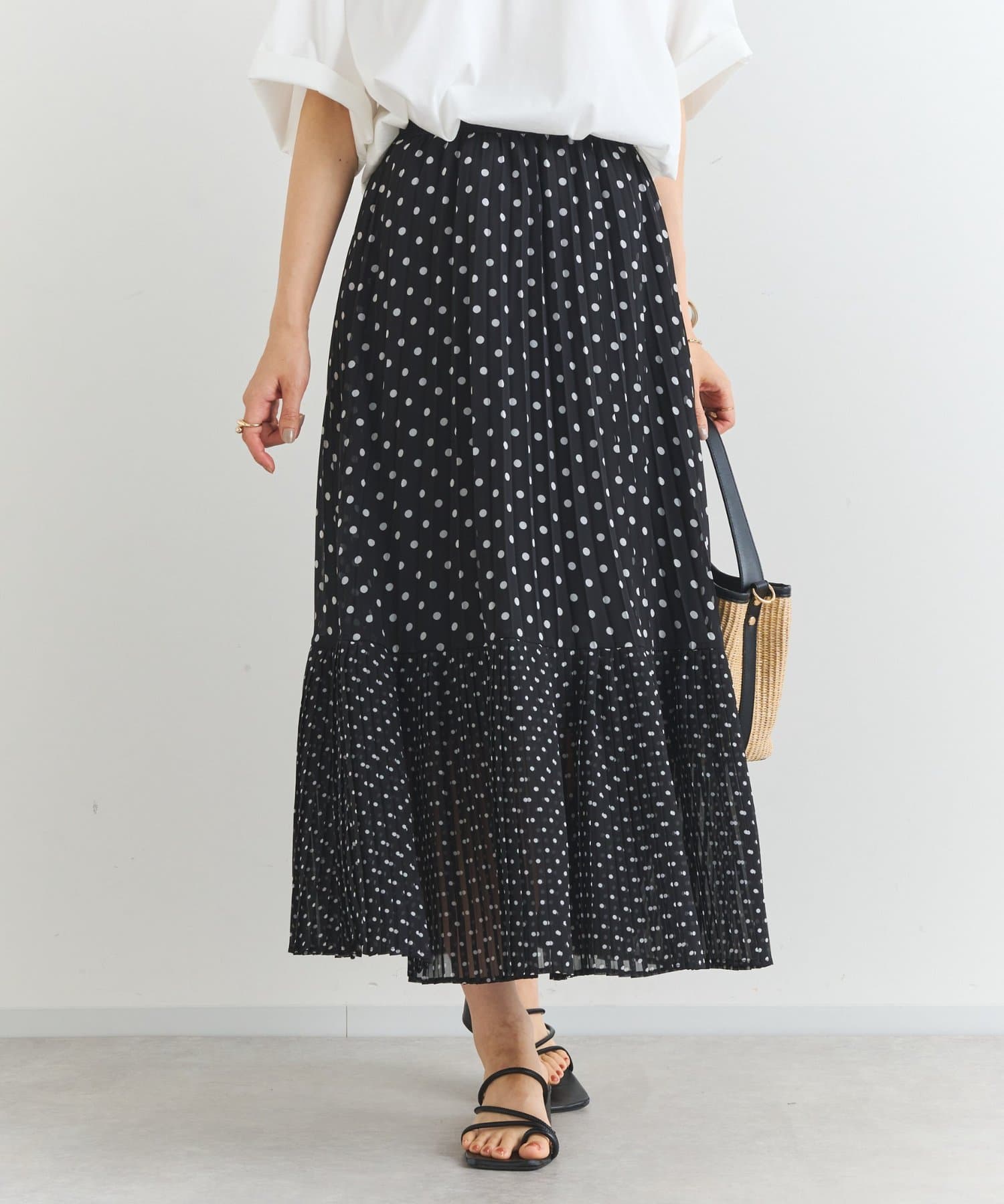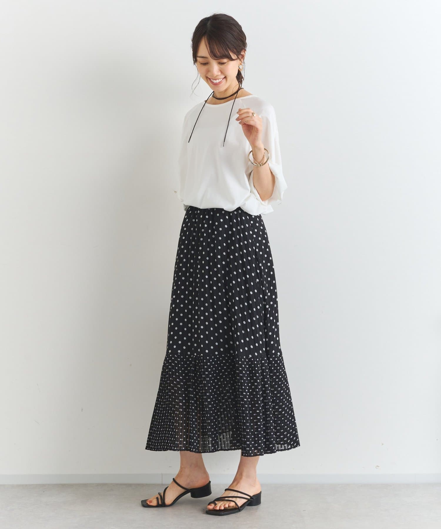 ・大人可愛いを叶える♪ポルカドットプリーツロングスカート