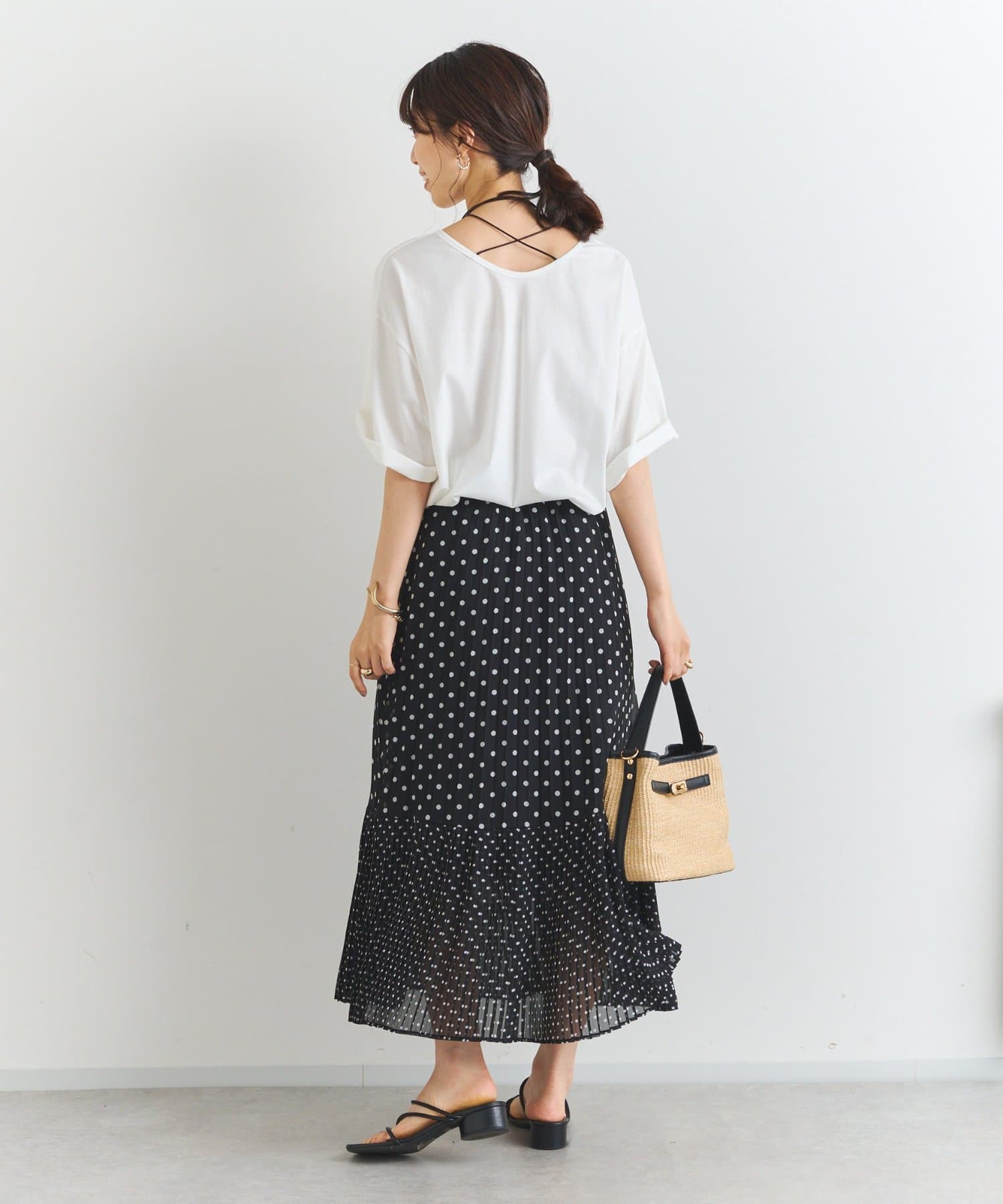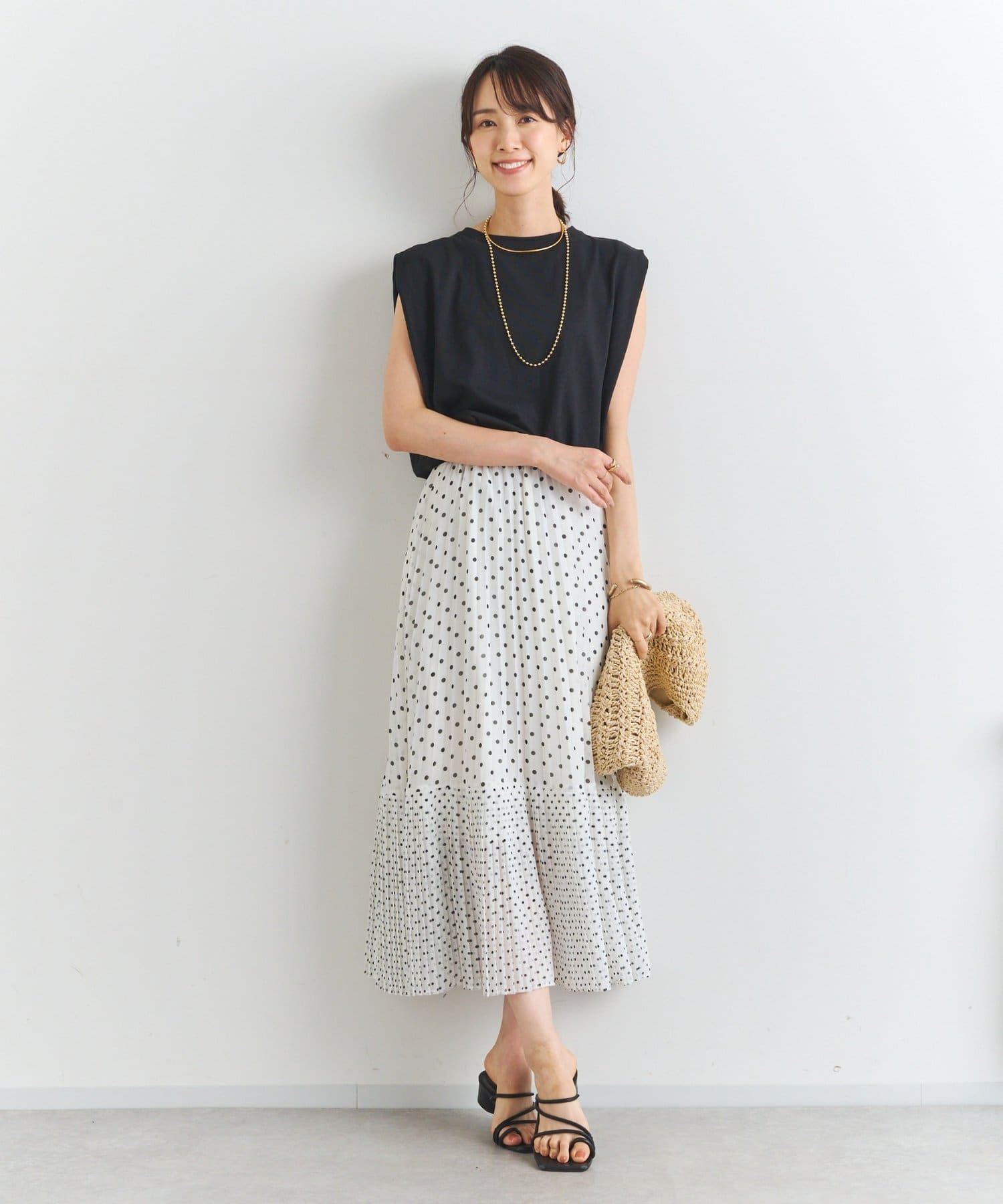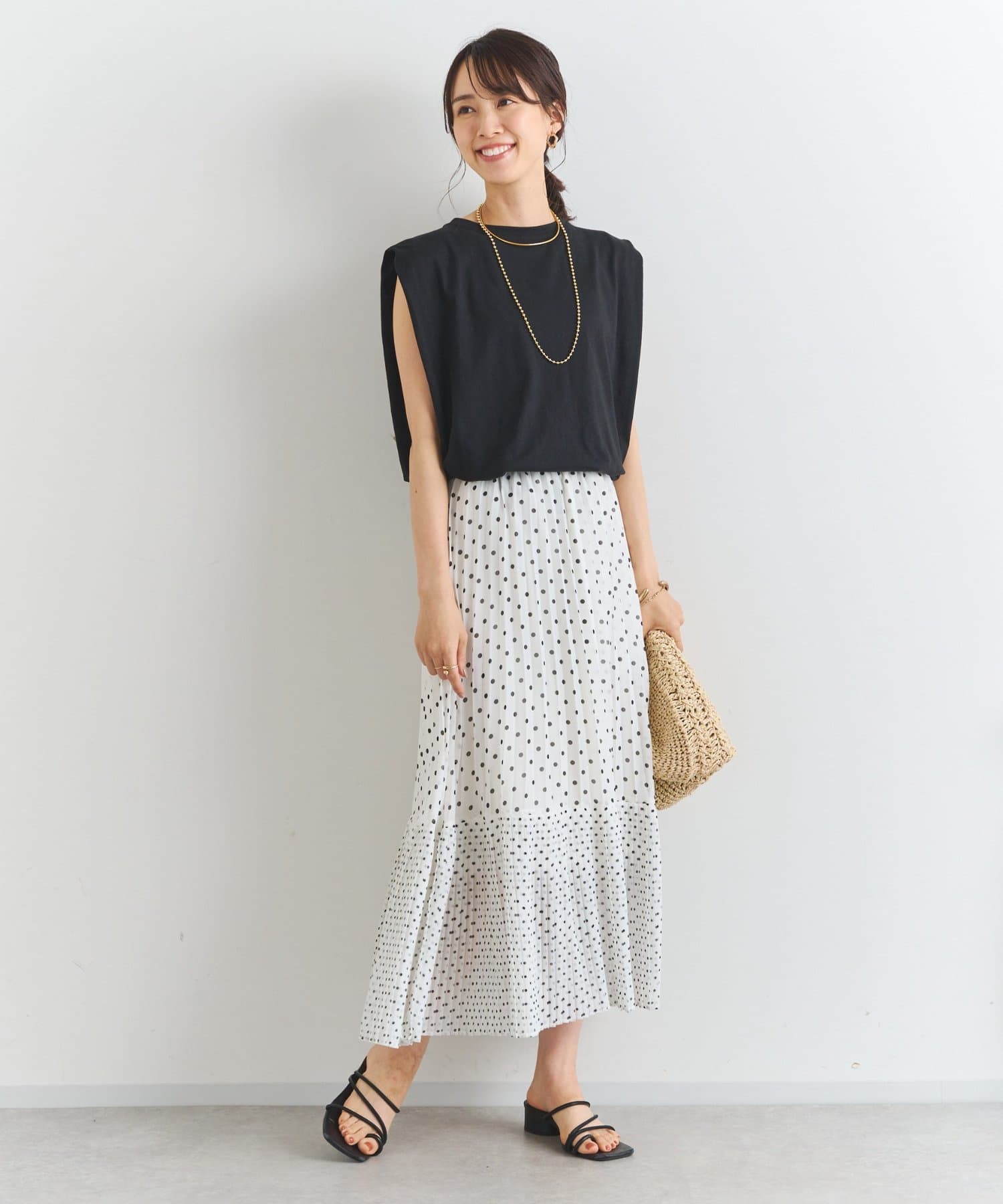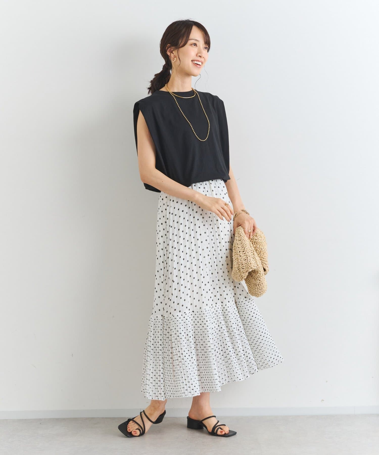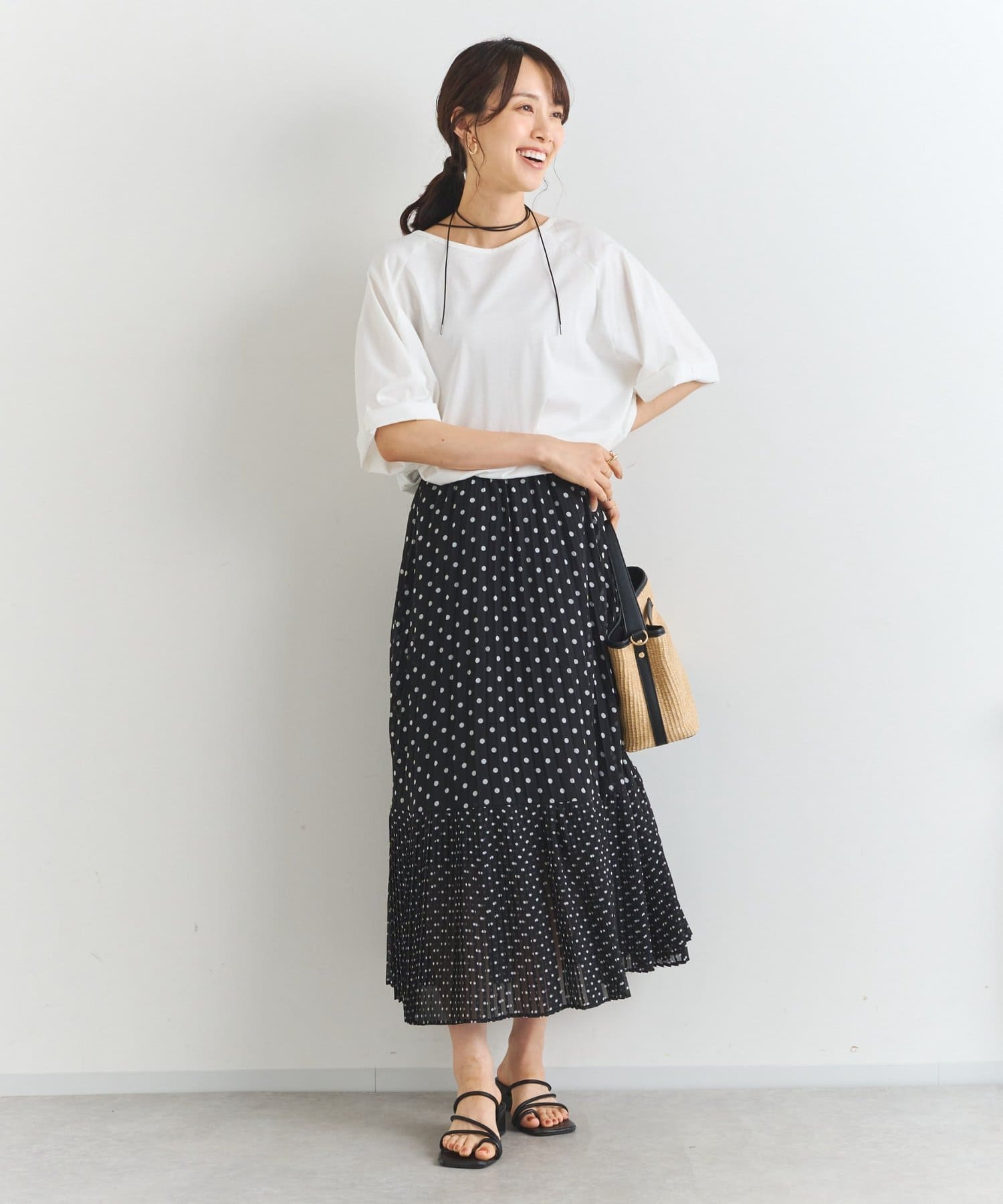・大人可愛いを叶える♪ポルカドットプリーツロングスカート