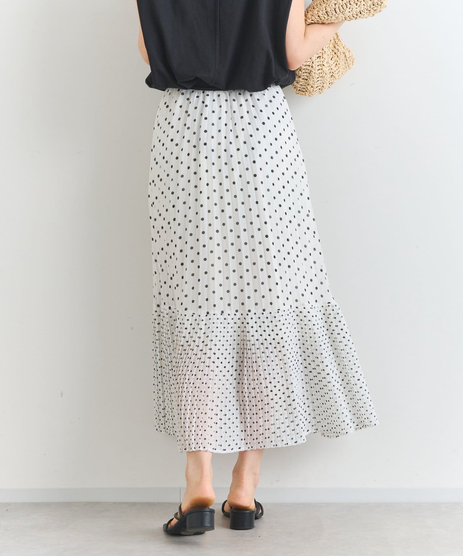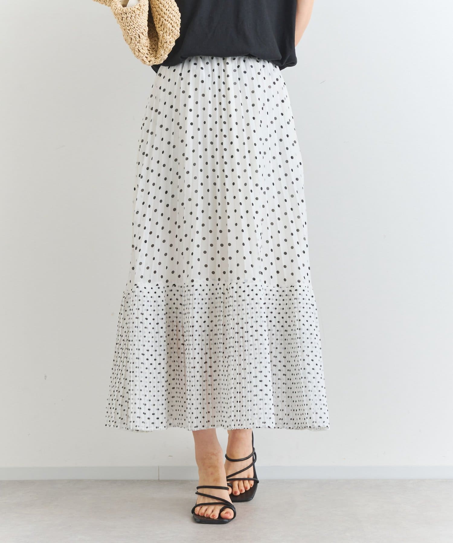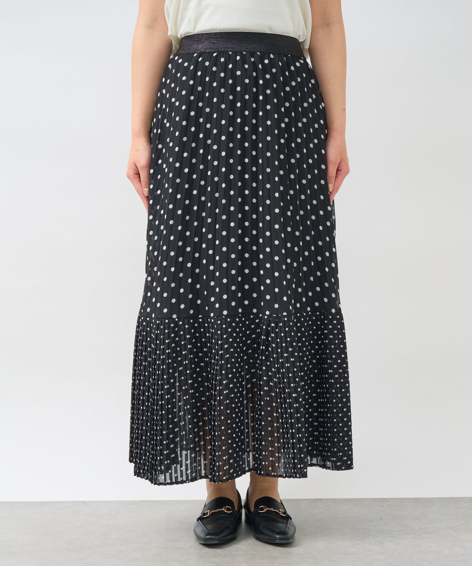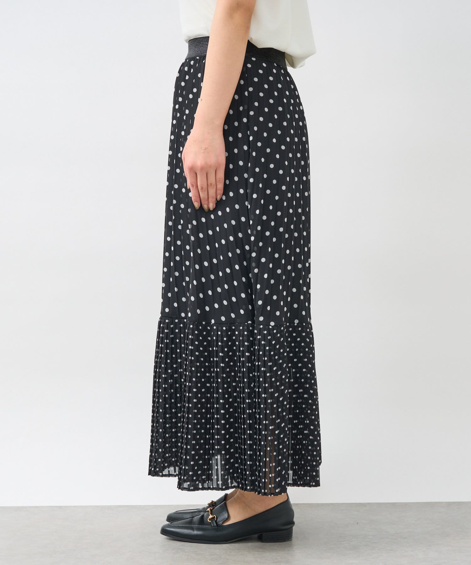 シフォンドットプリントプリーツスカート