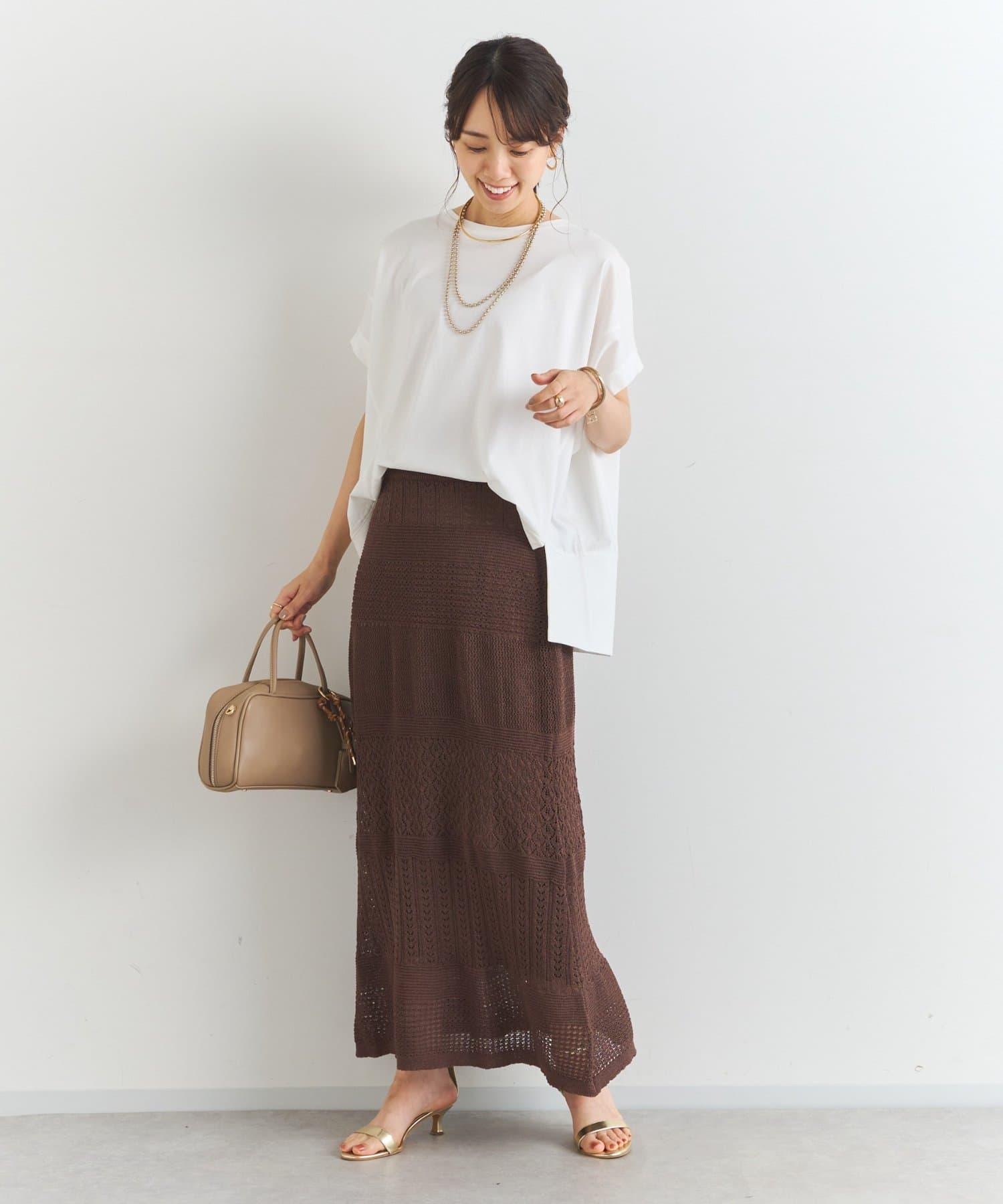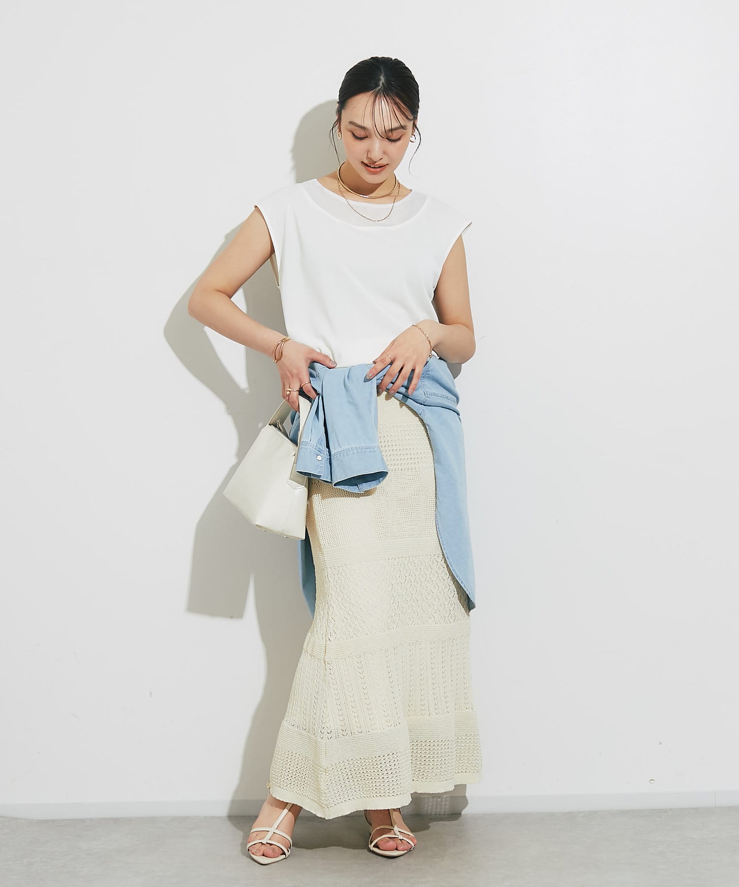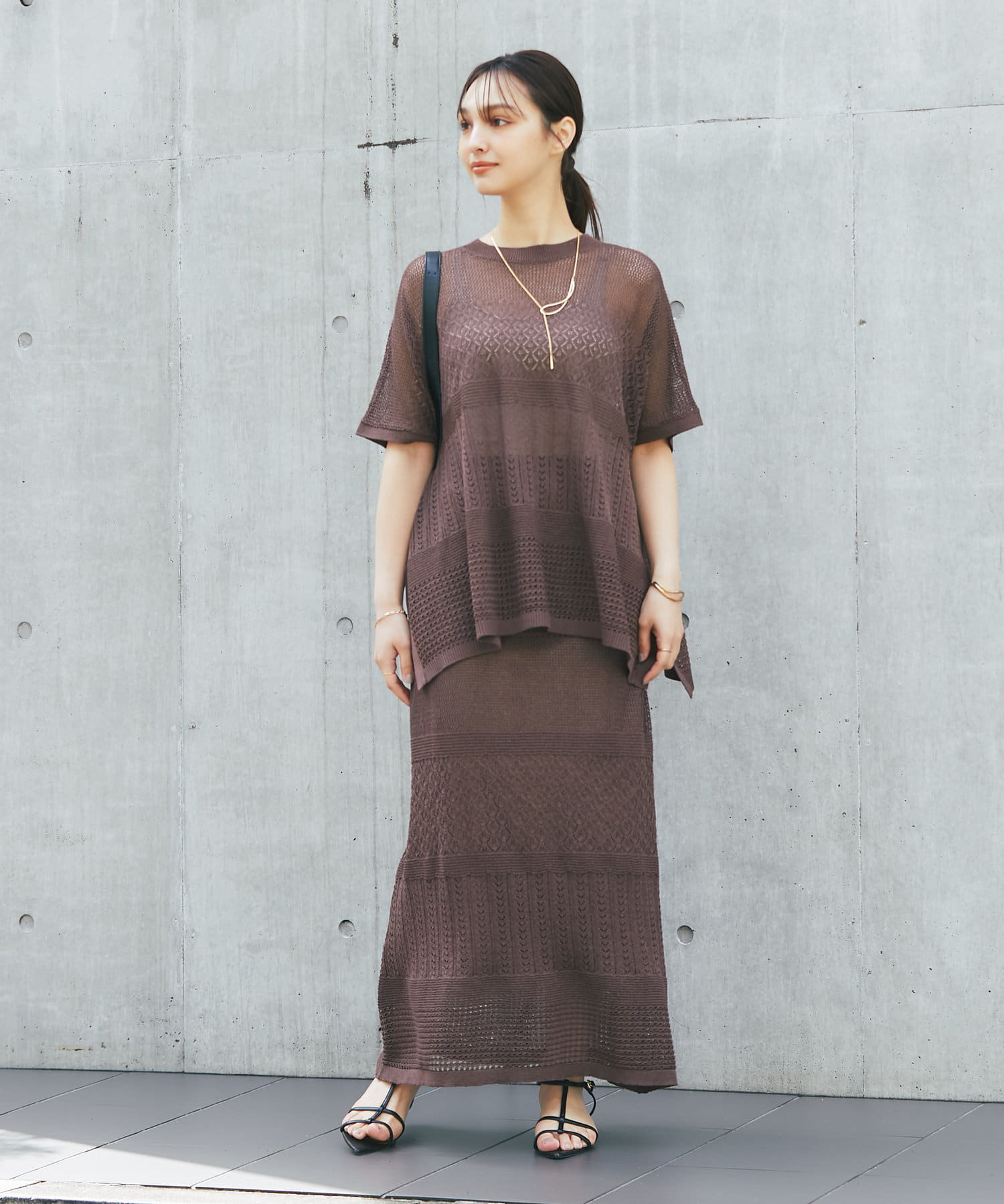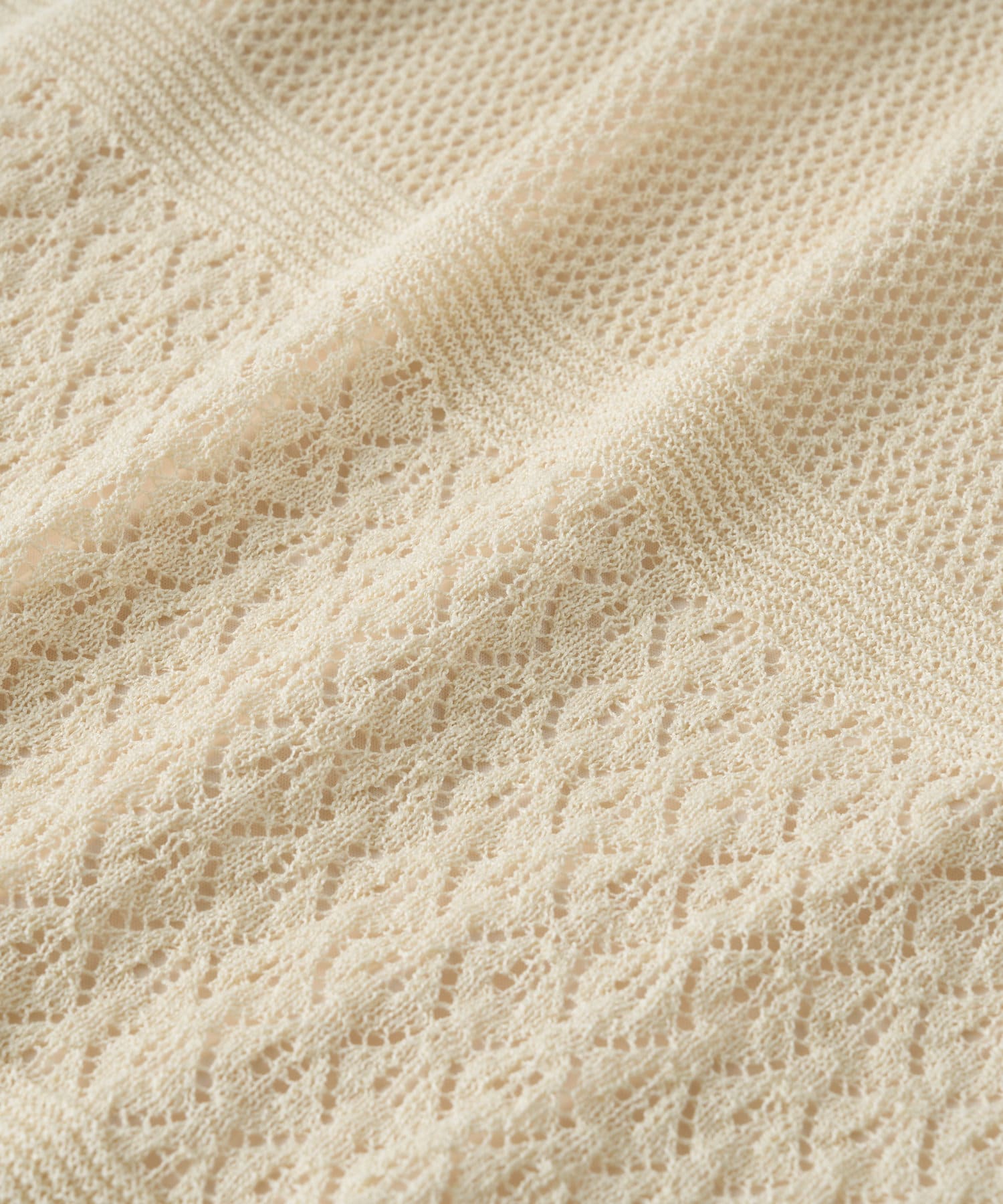 ・透け感のある繊細な編み地が、さりげない女性らしさをプラス。
