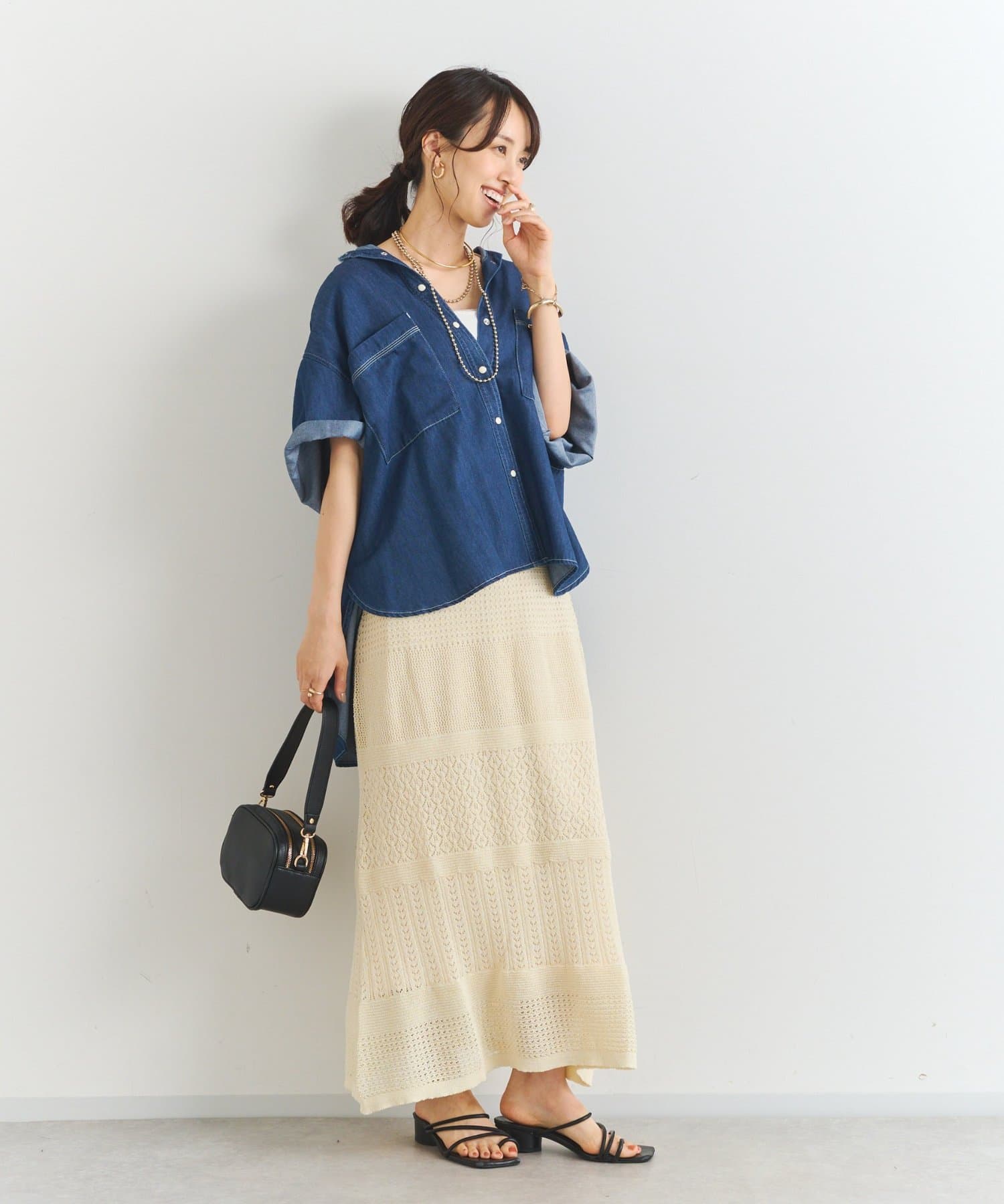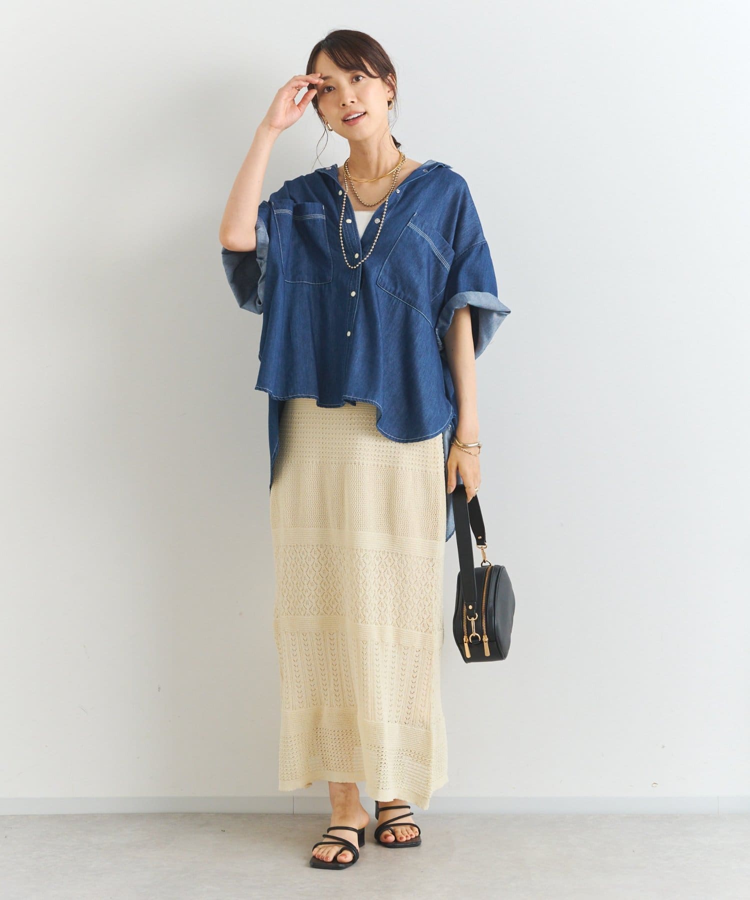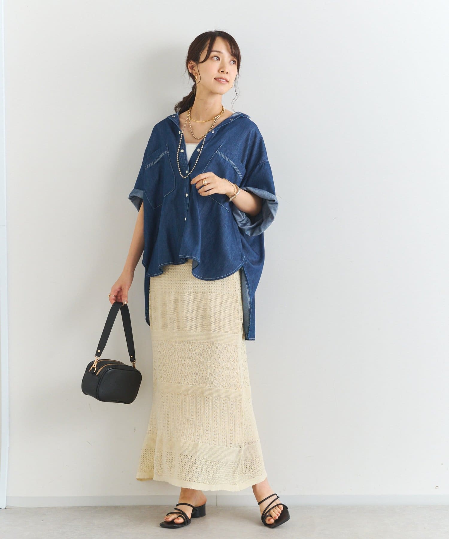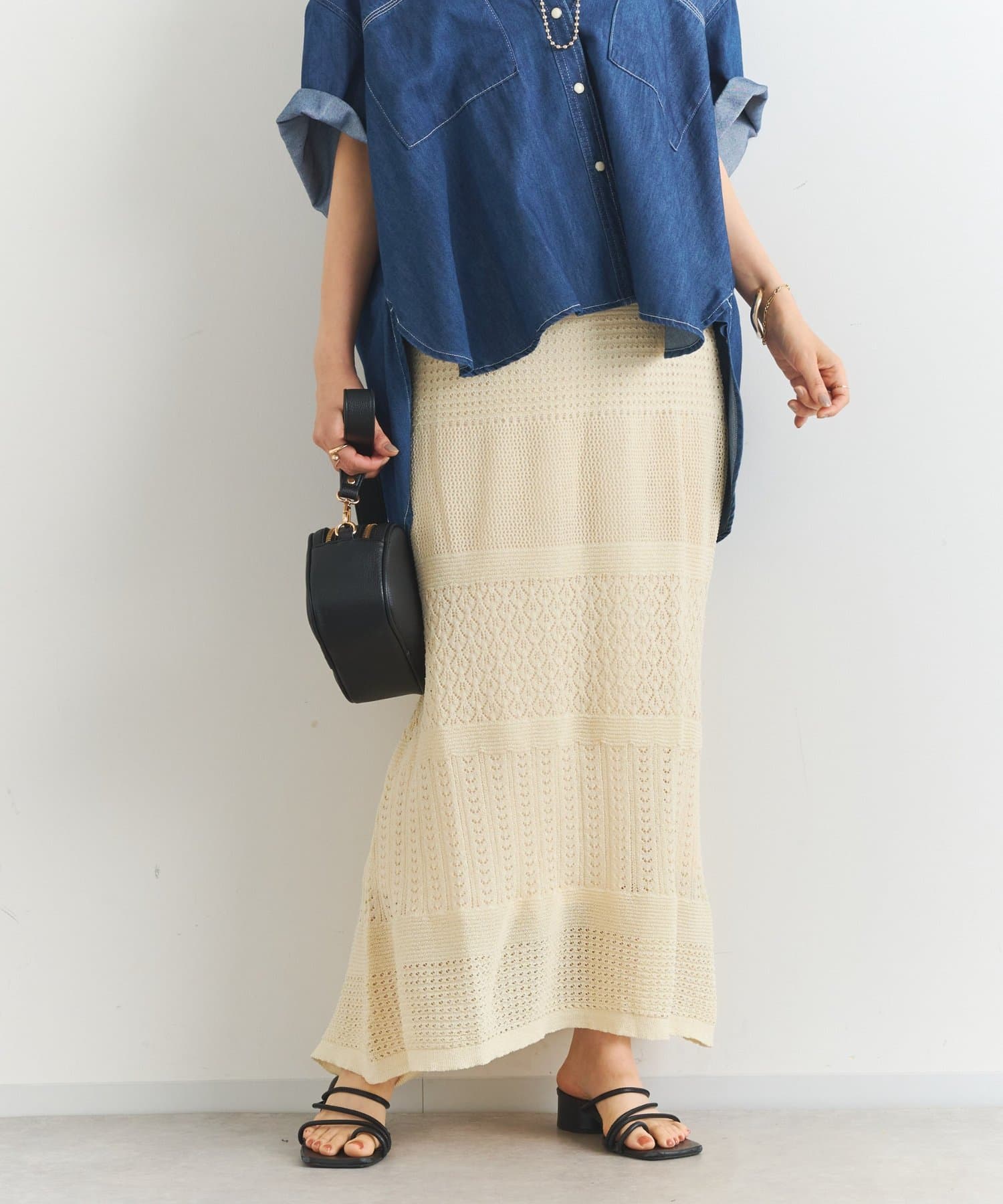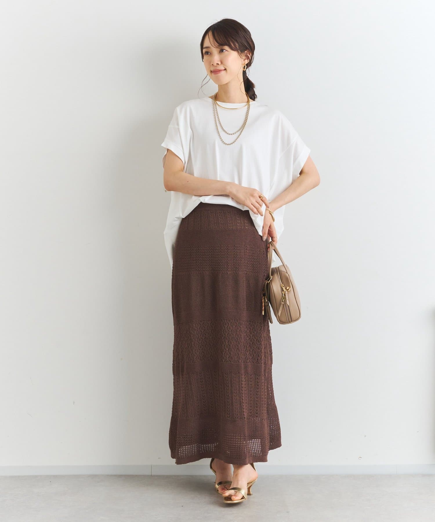 ・透け感のある繊細な編み地が、さりげない女性らしさをプラス。