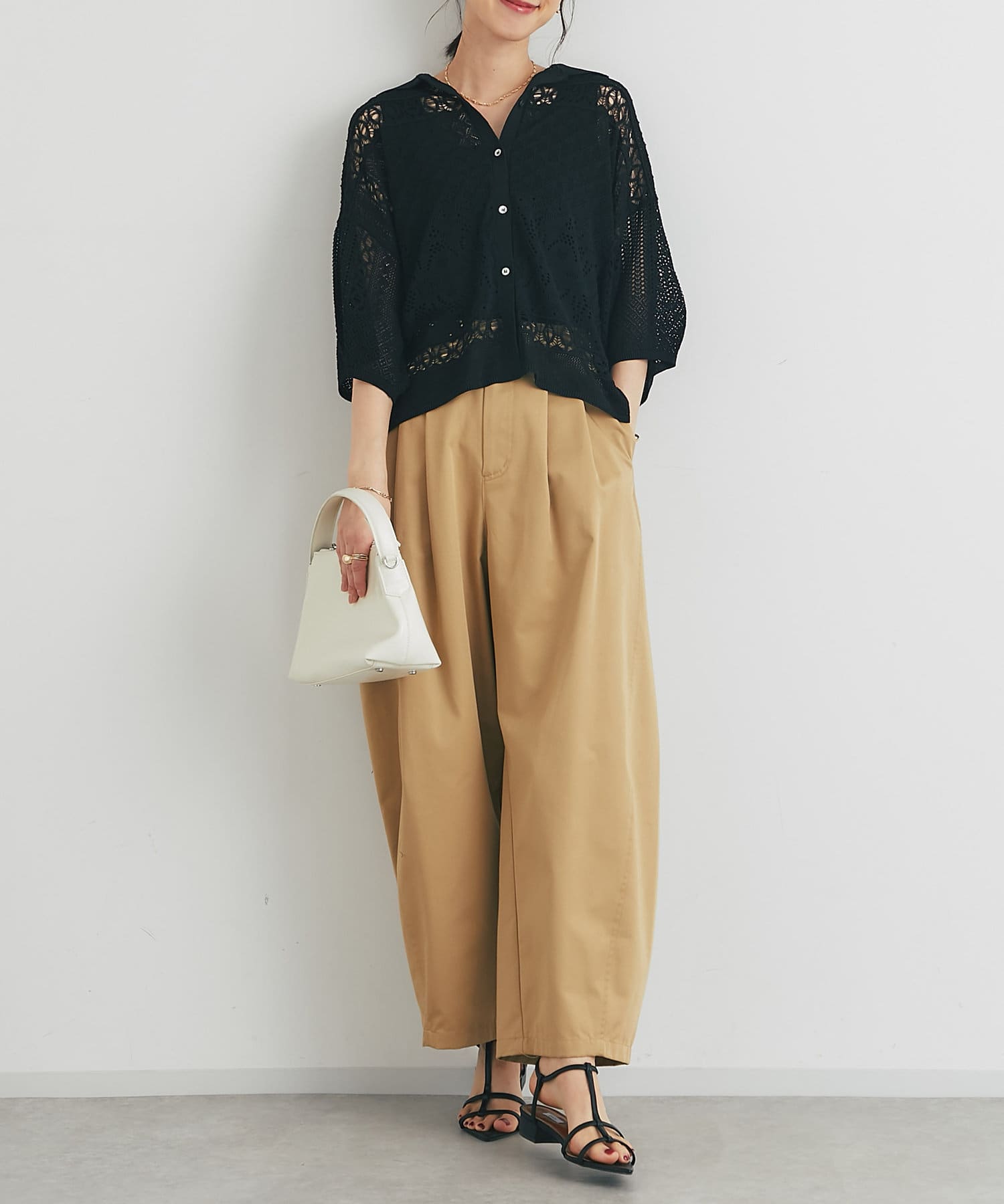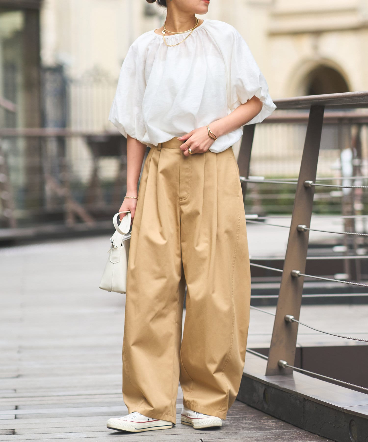 ・2タックデザインで、股上が深めのリラックス感のあるワイドシルエットが魅力。