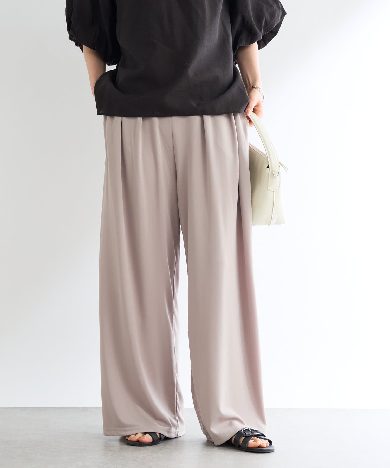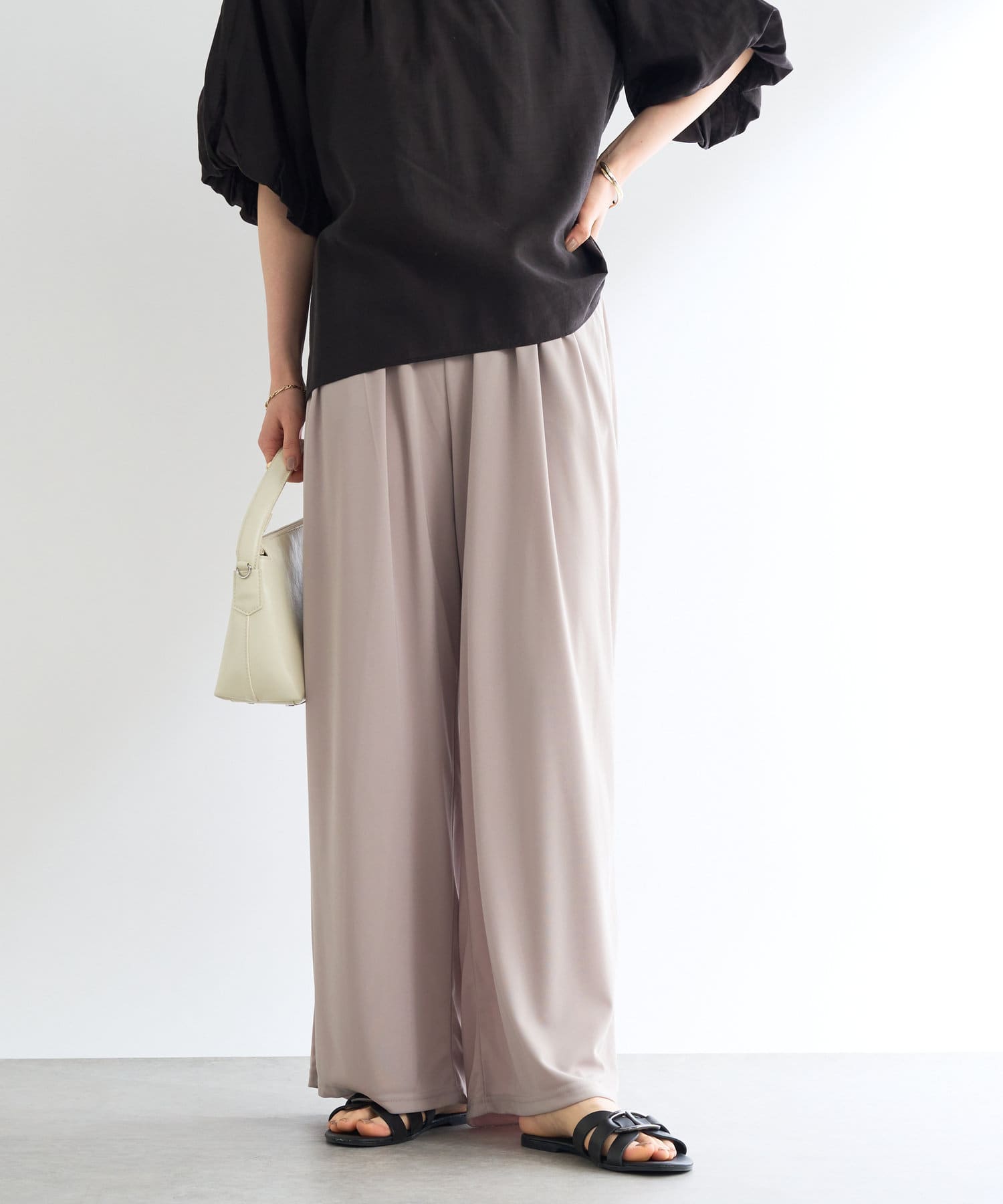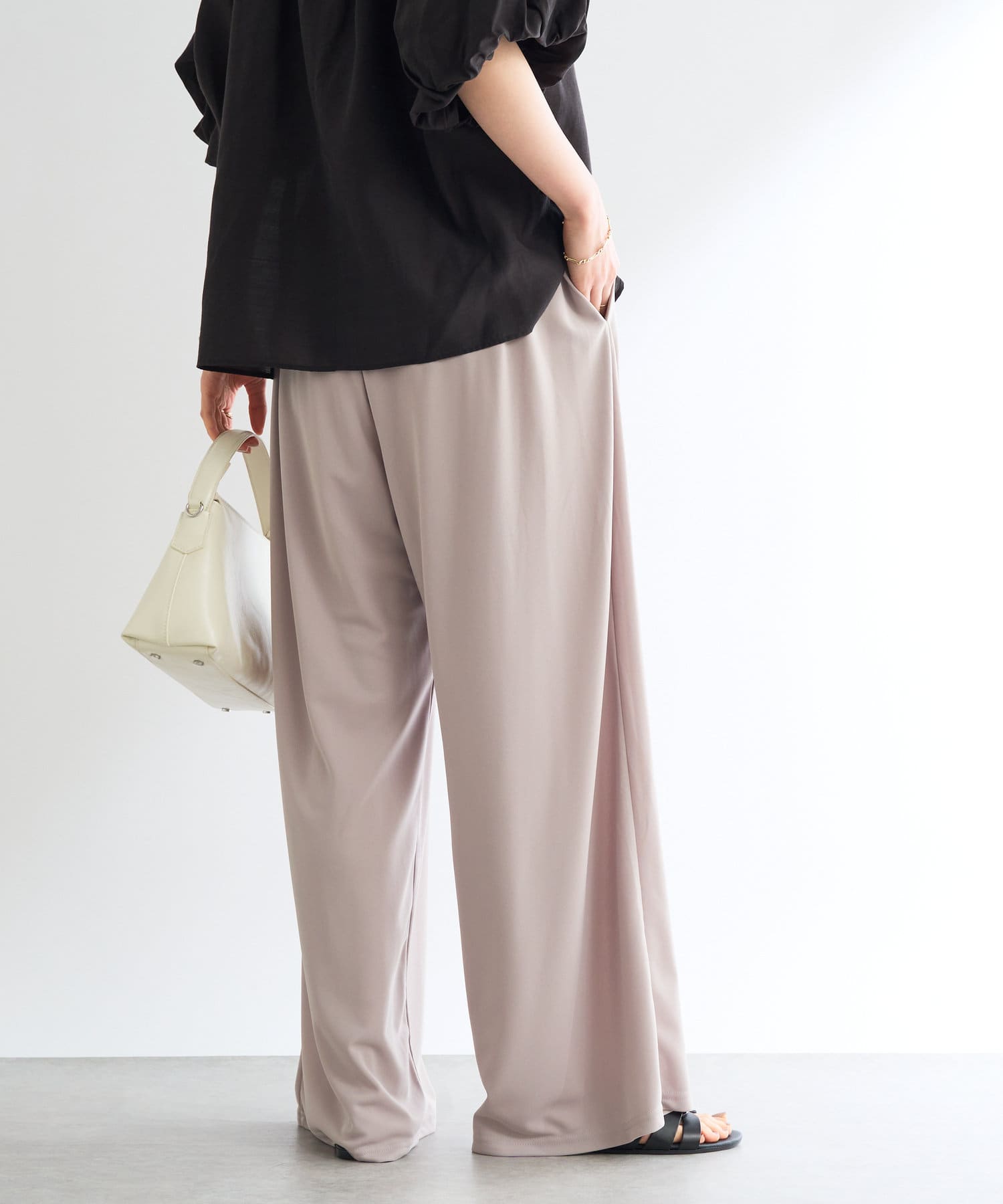 《全骨格細見え・楽な履き心地》ジョーゼットタックパンツ