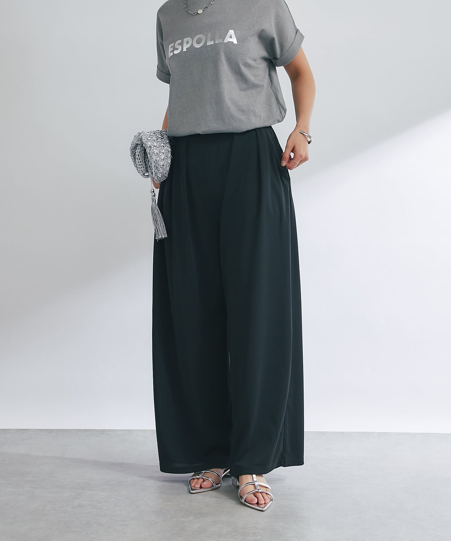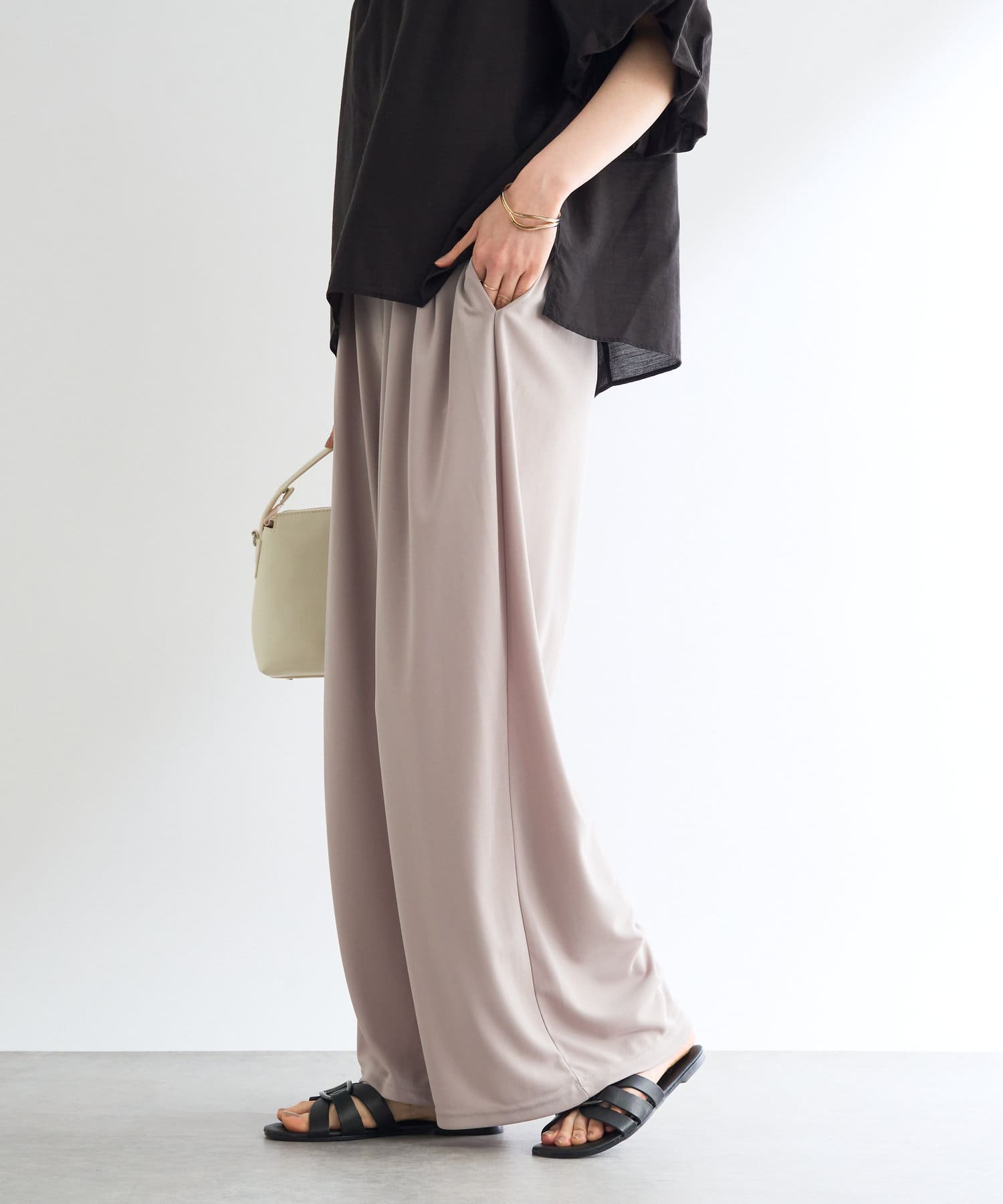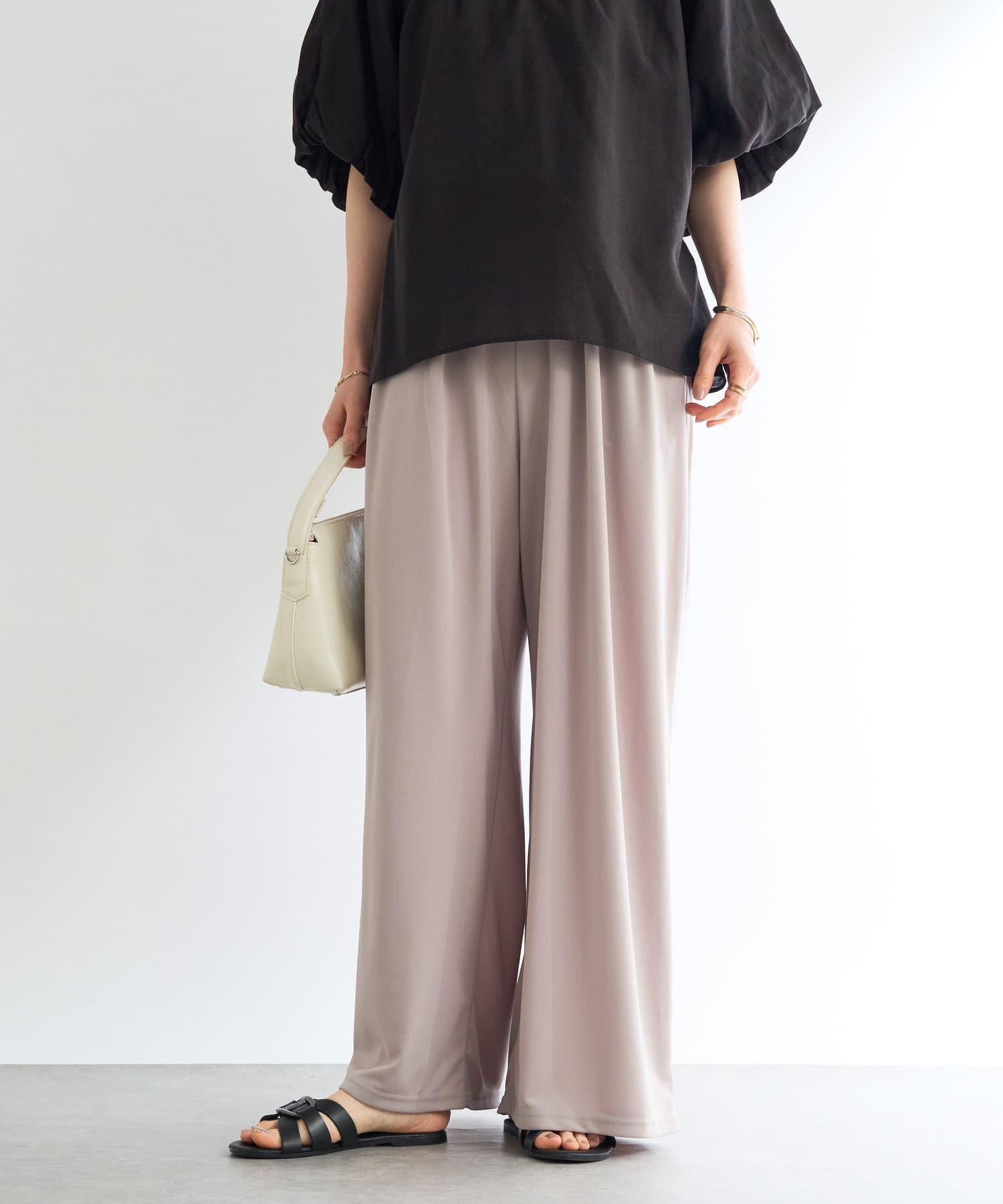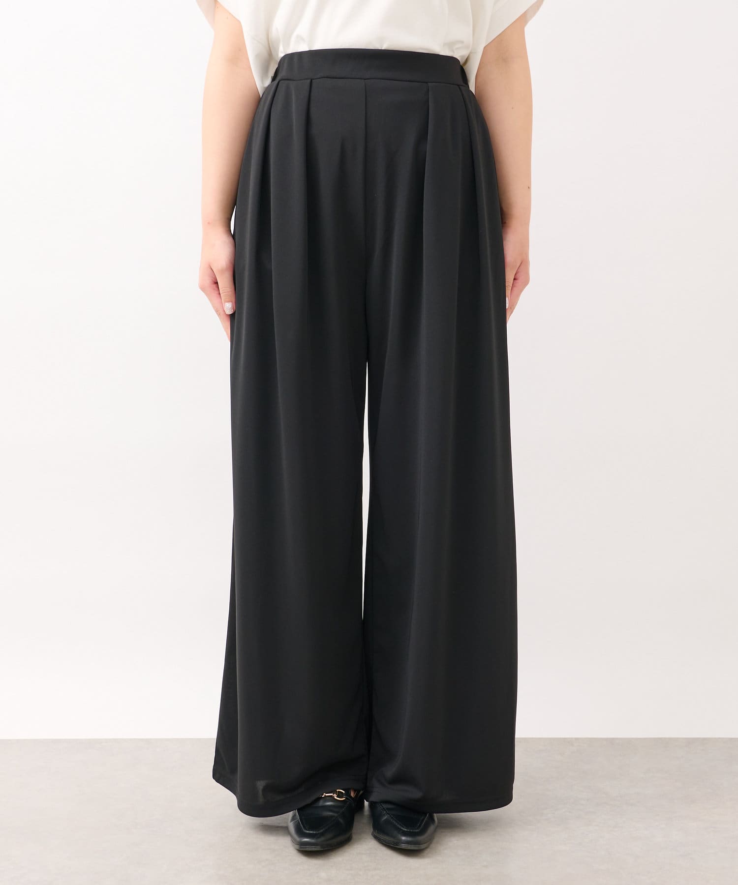《全骨格細見え・楽な履き心地》ジョーゼットタックパンツ