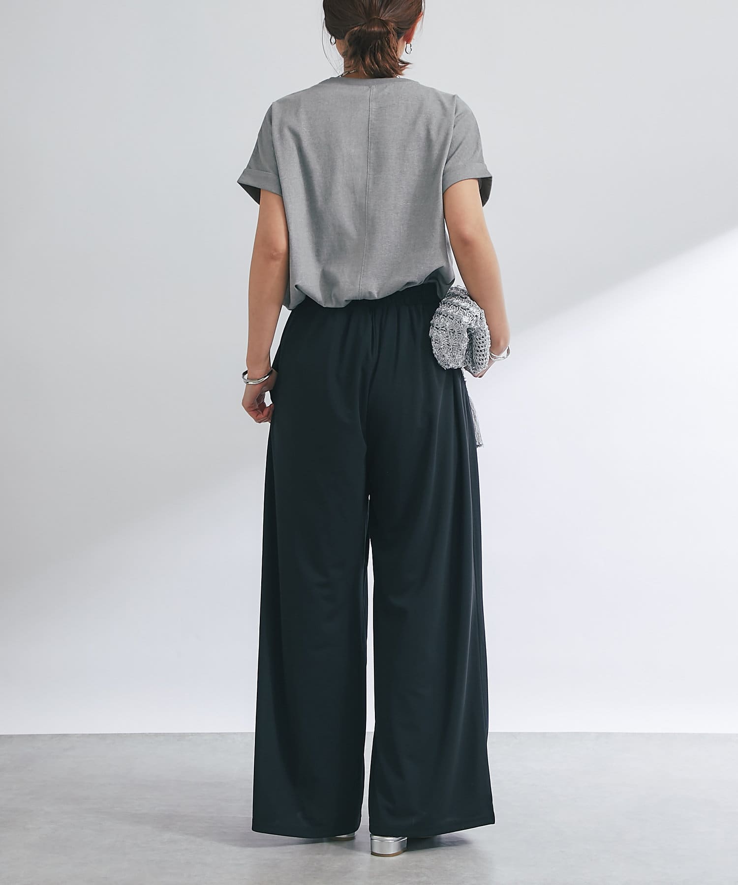 ・落ち感のある滑らかな生地が、体のラインを拾わず、体型カバーも叶えてくれます。