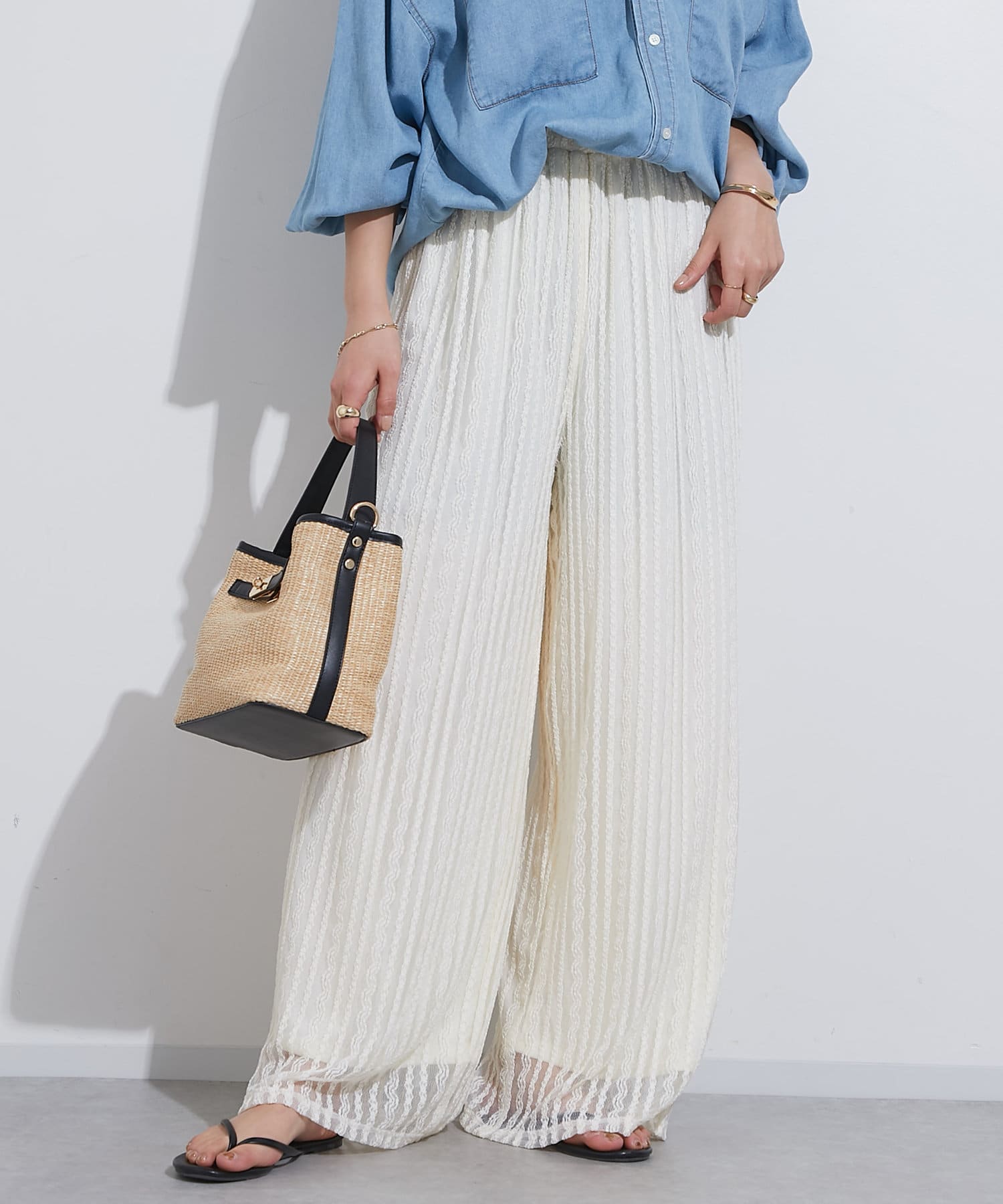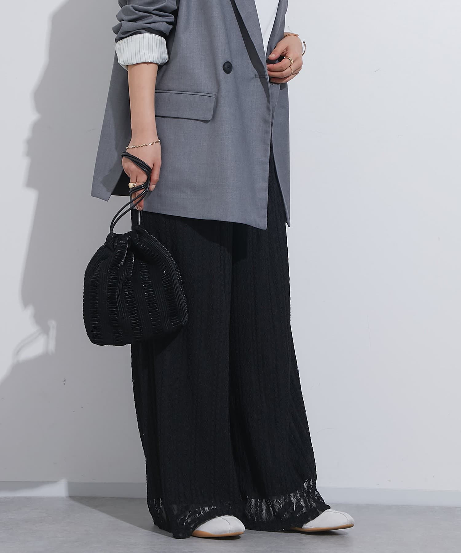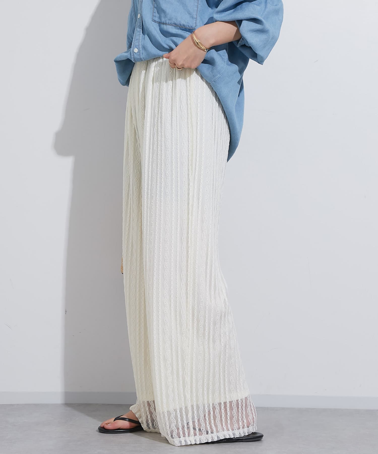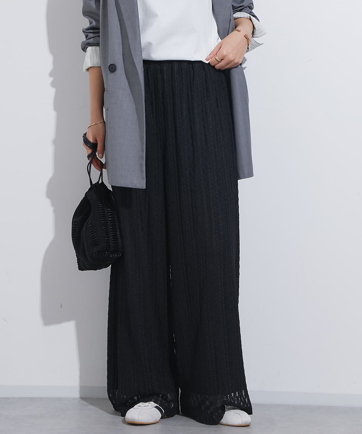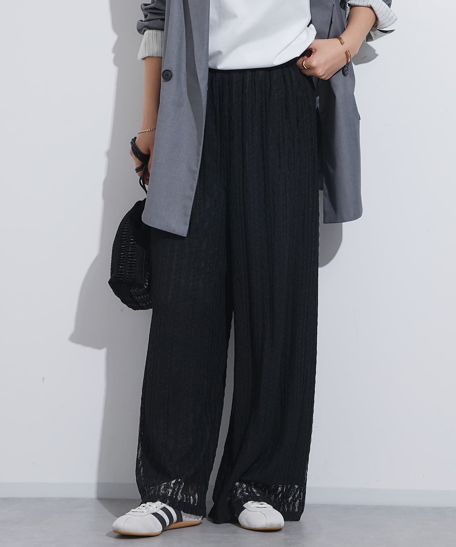 un dix cors(アンディコール) 《リラクシーな履き心地》ストレッチレースイージーパンツ