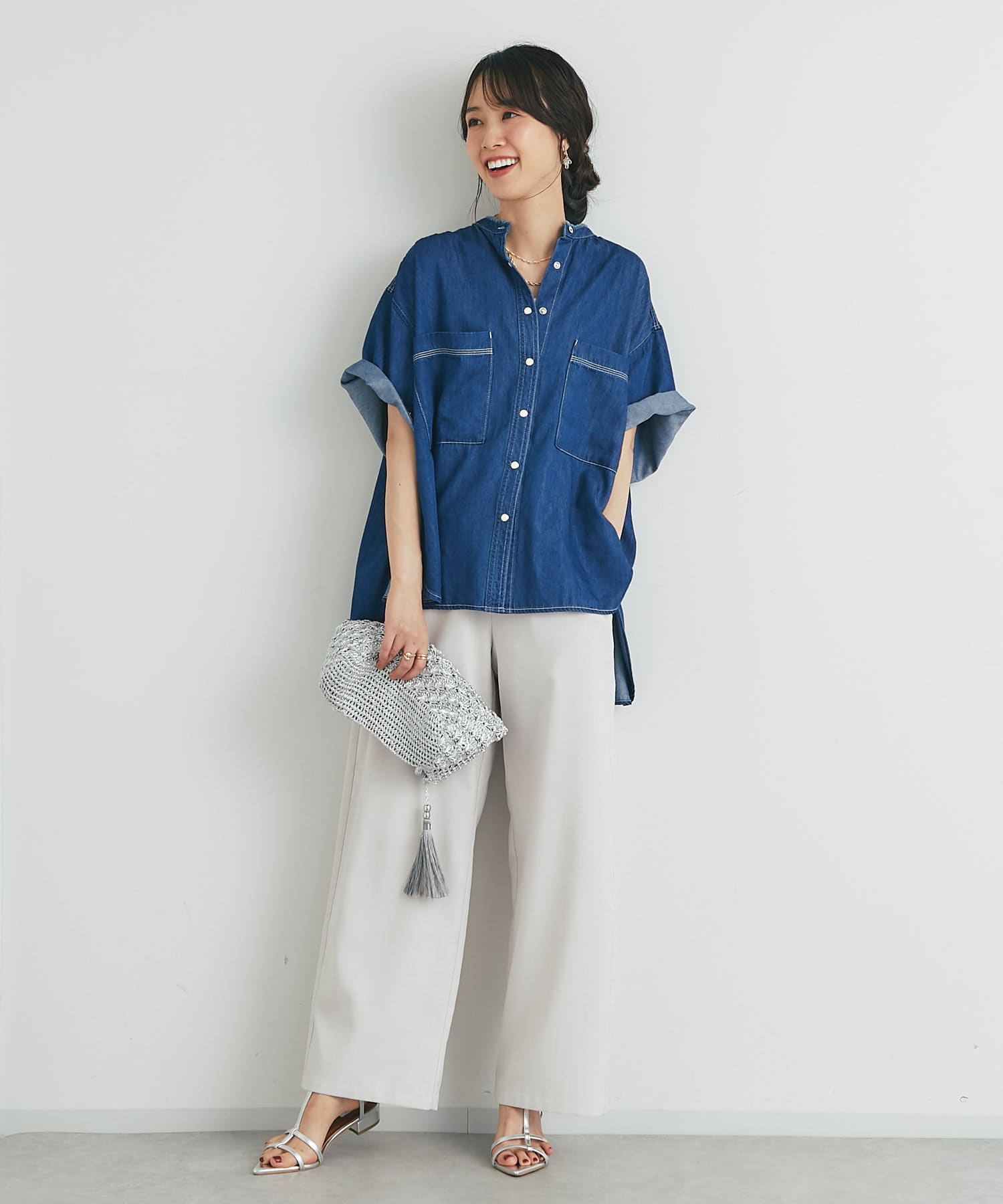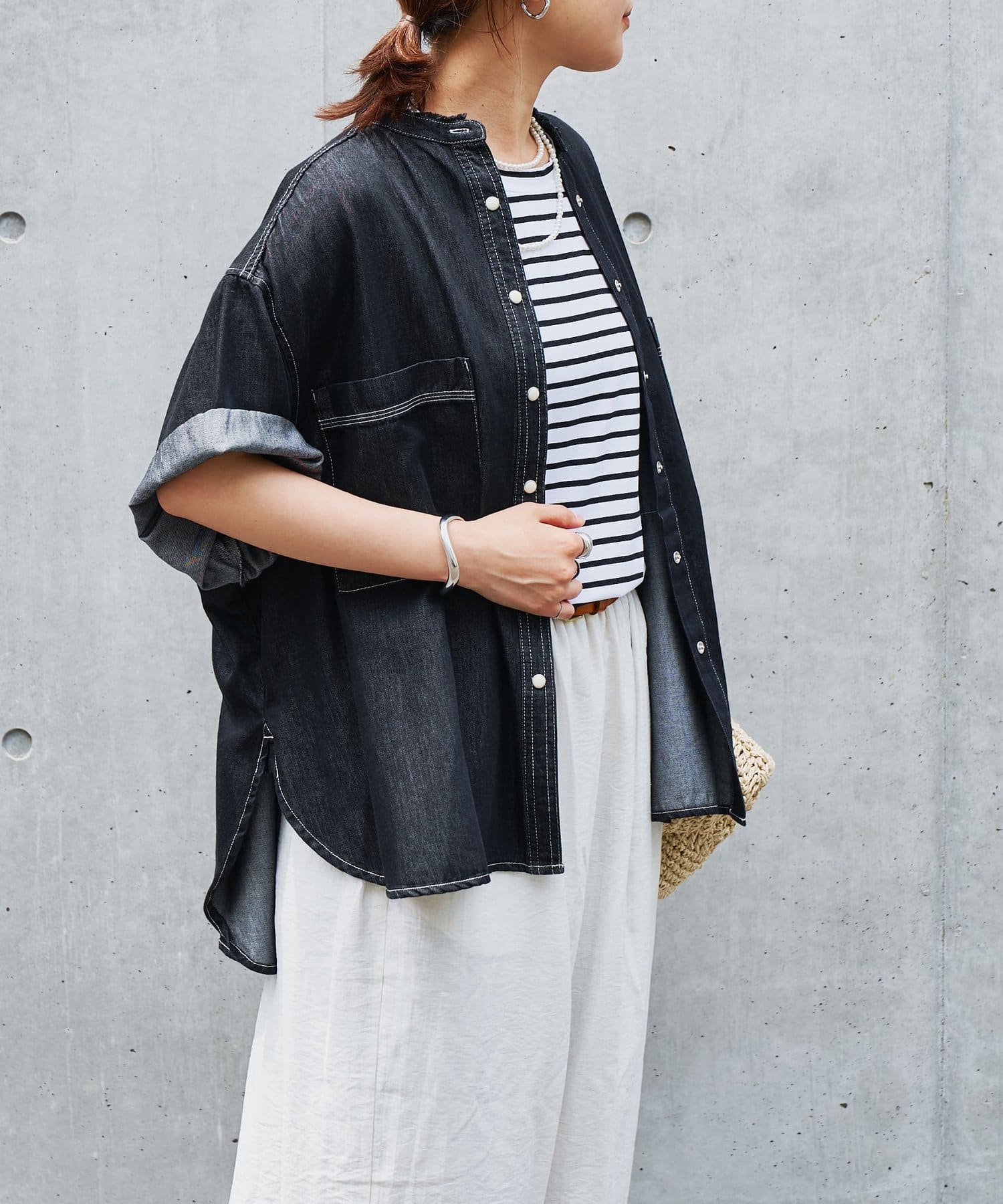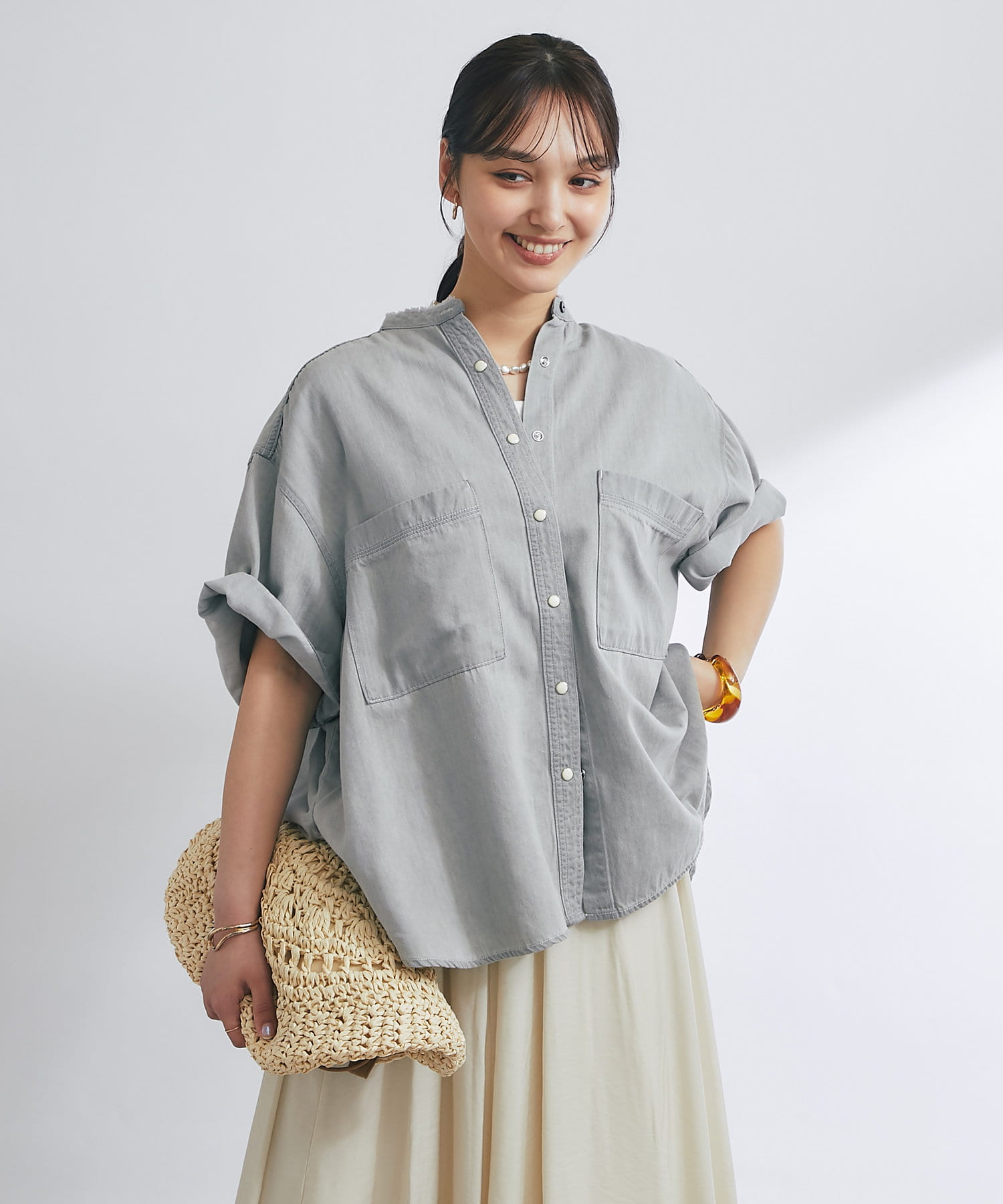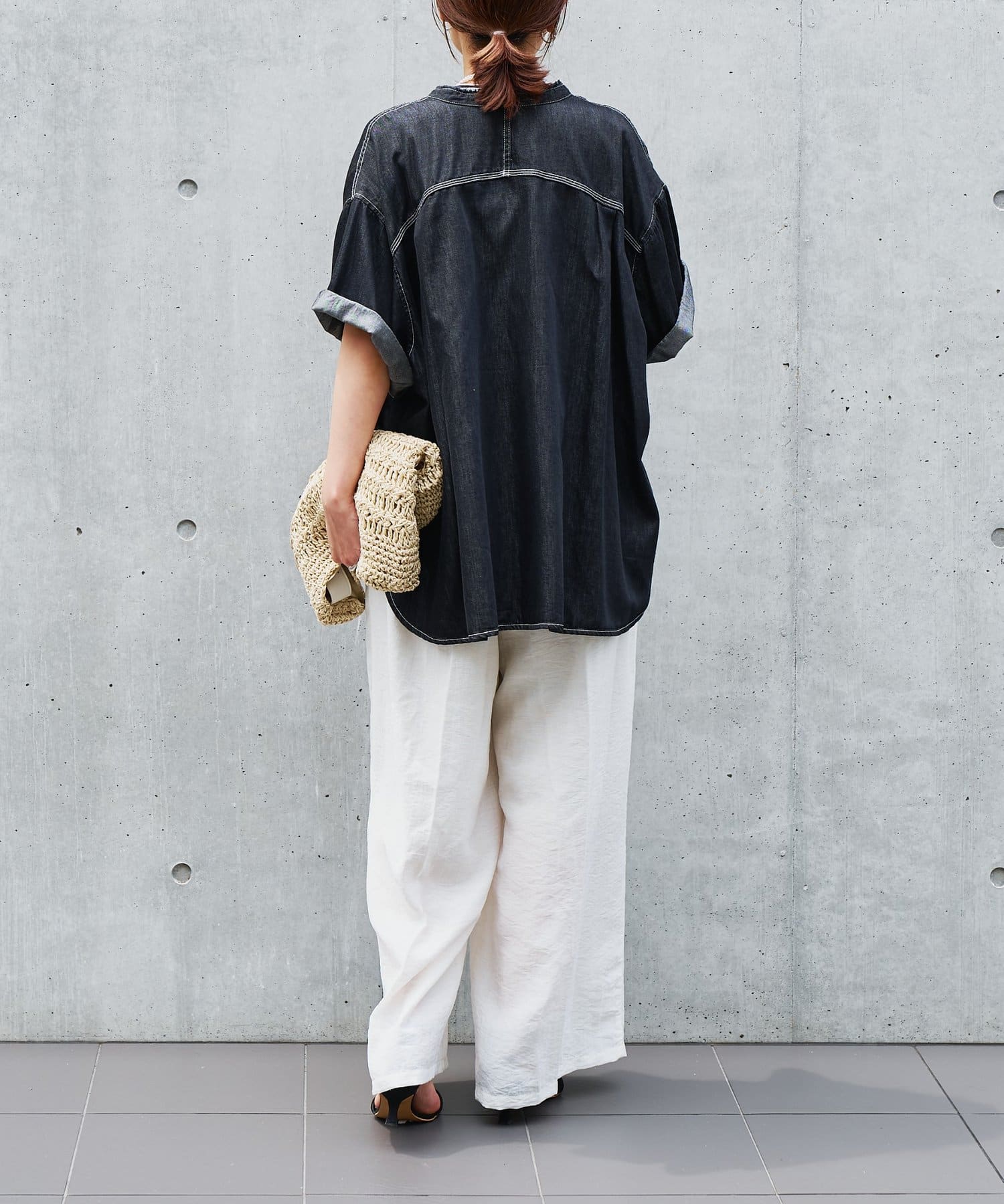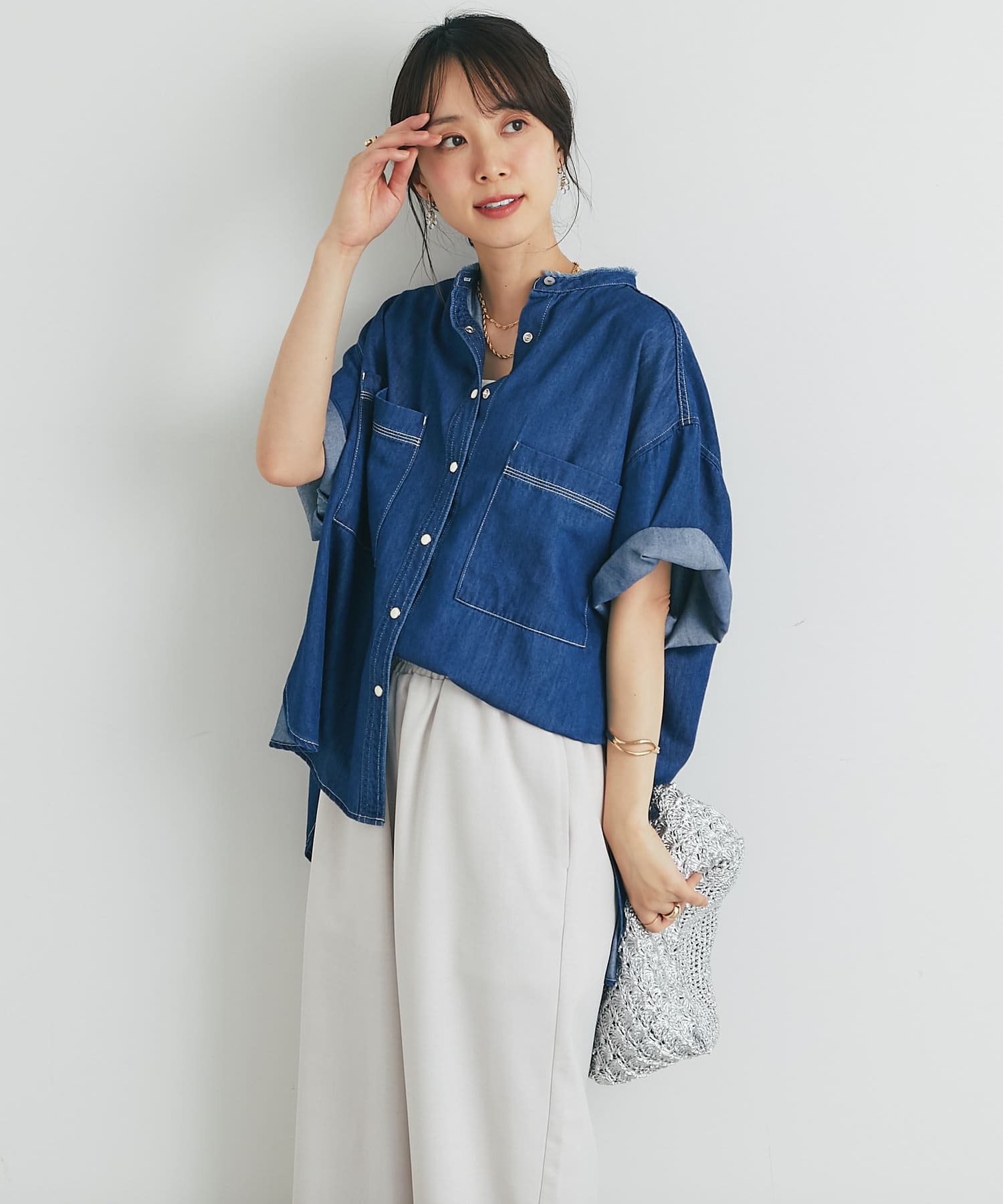 《1枚でこなれカジュアル》半袖デニムビックシャツ
