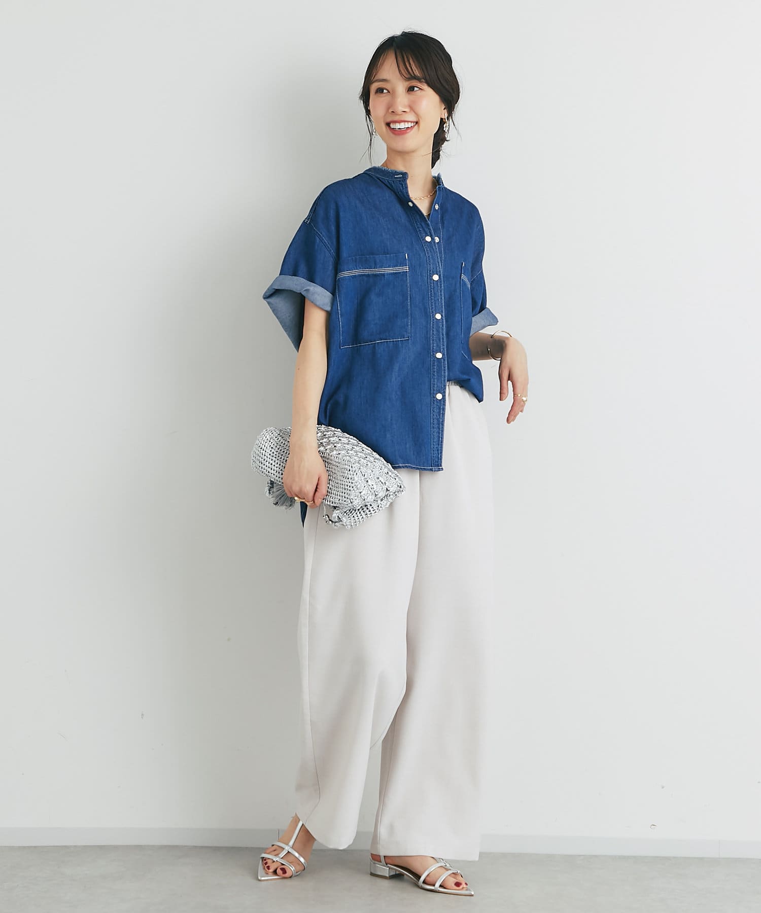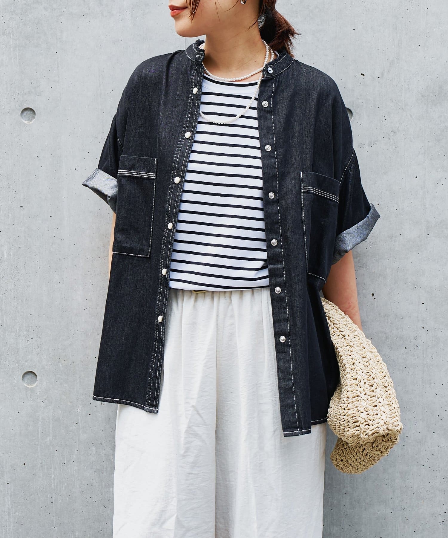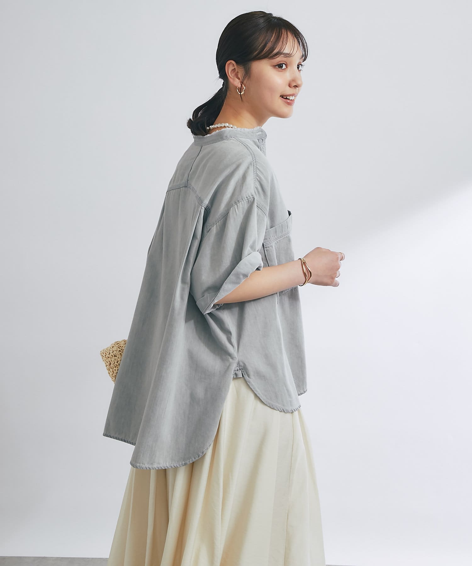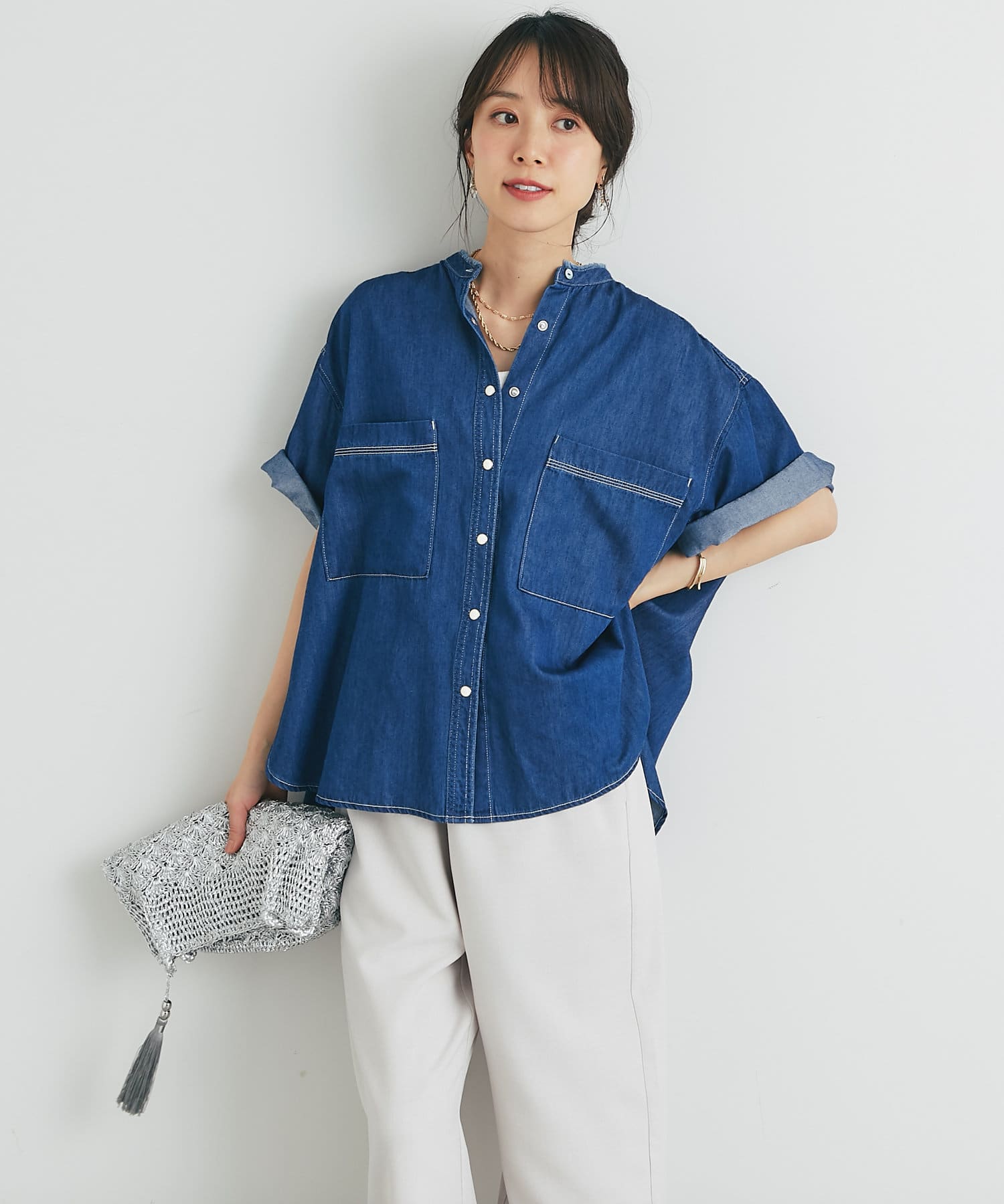 《1枚でこなれカジュアル》半袖デニムビックシャツ