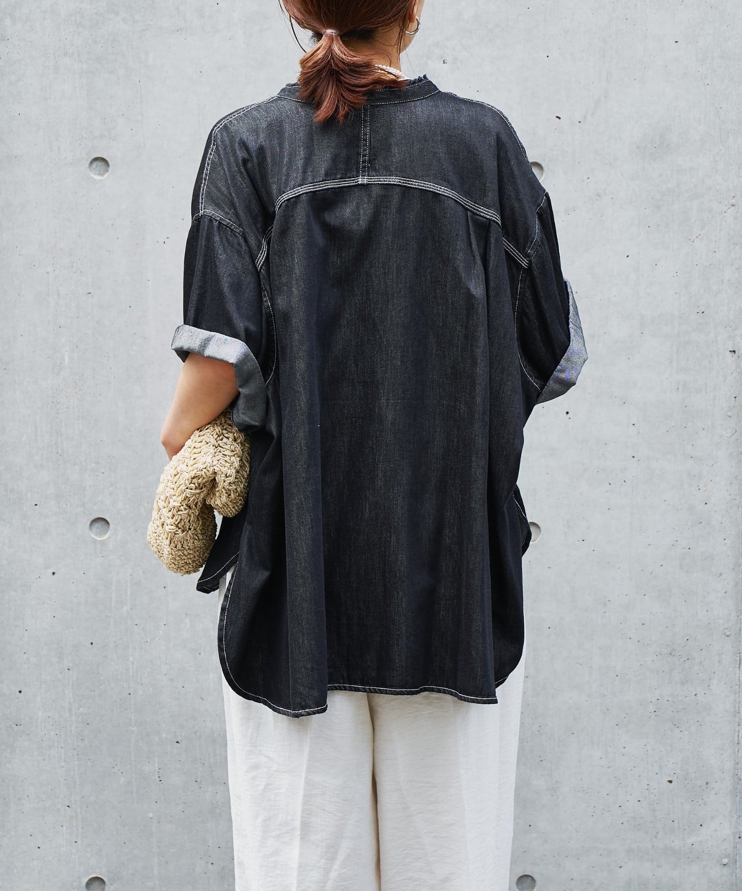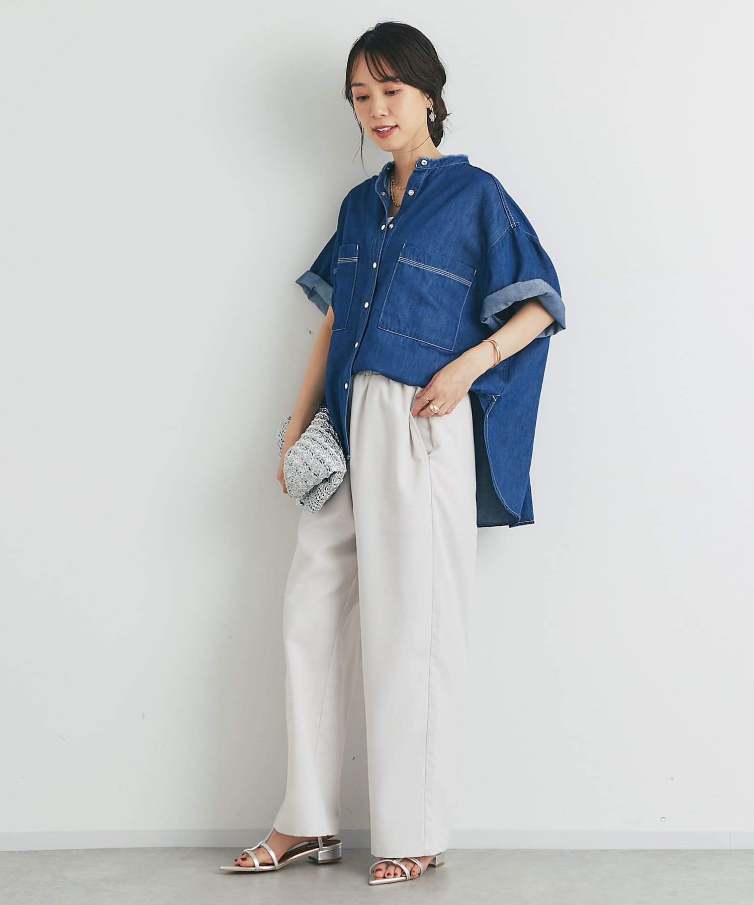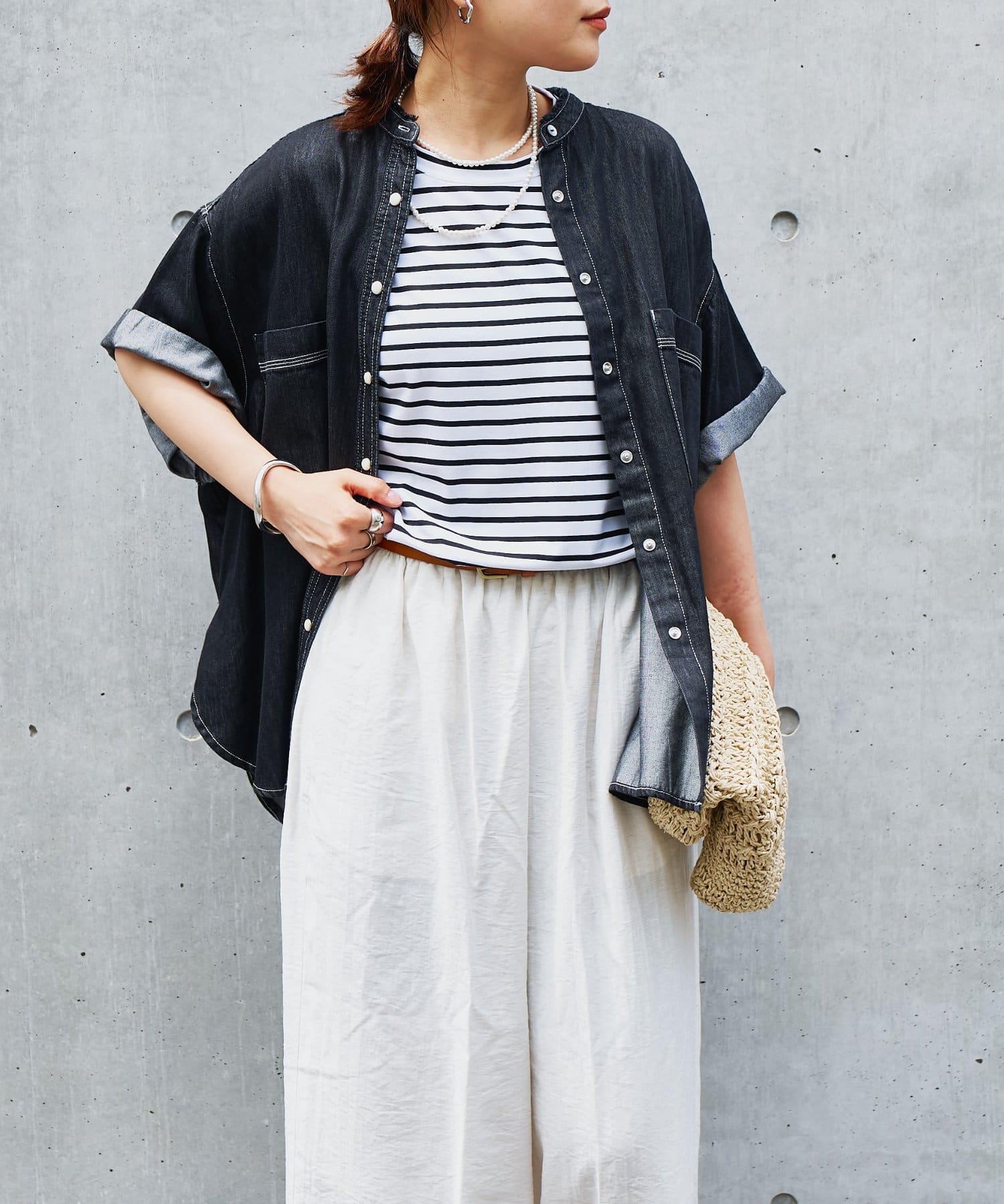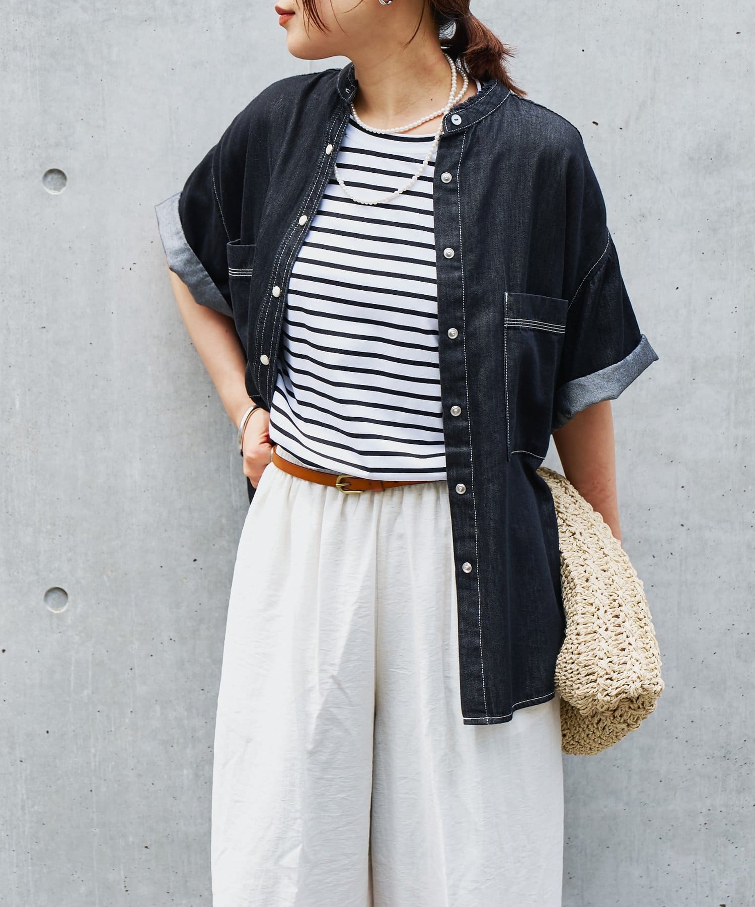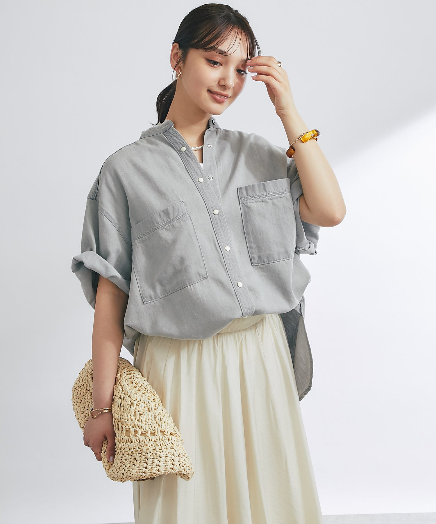 《1枚でこなれカジュアル》半袖デニムビックシャツ