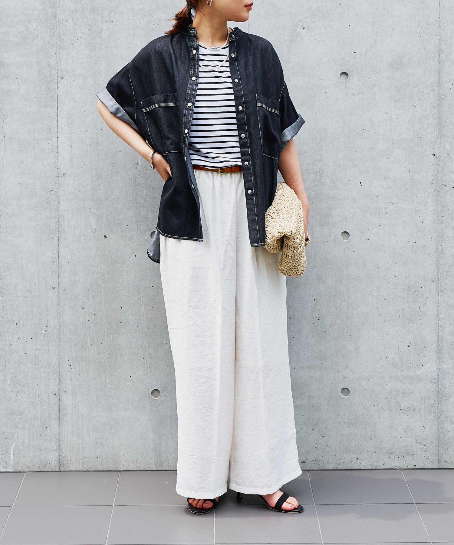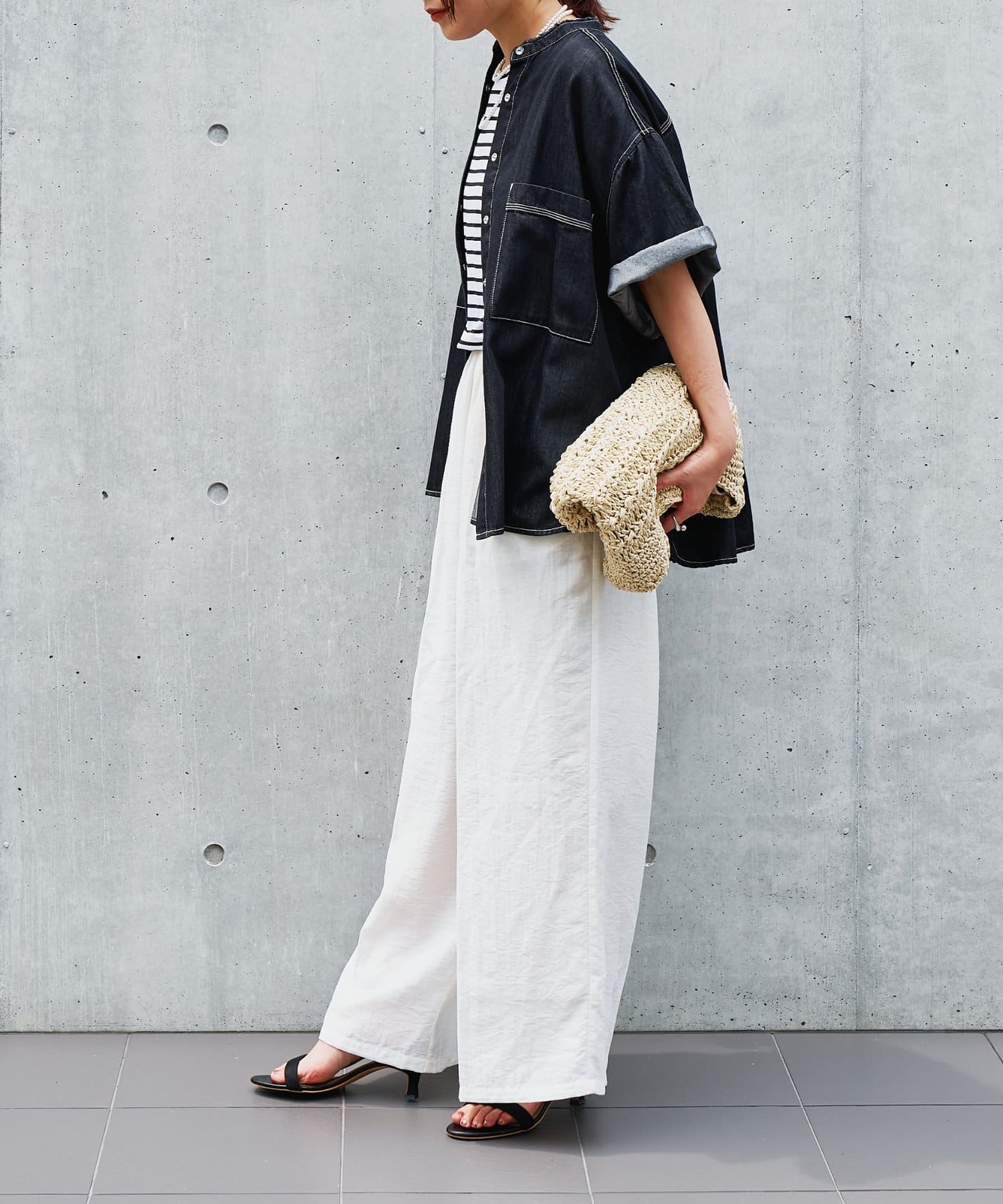 イージーパンツなどゆるいシルエットのパンツと合わせてリラックスカジュアルに、