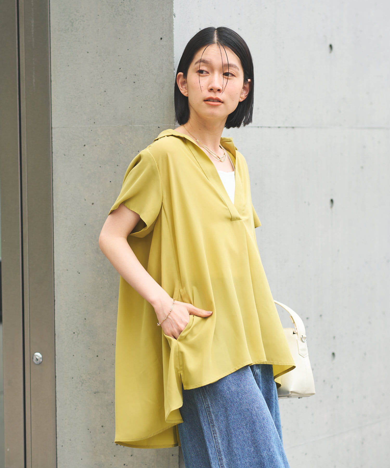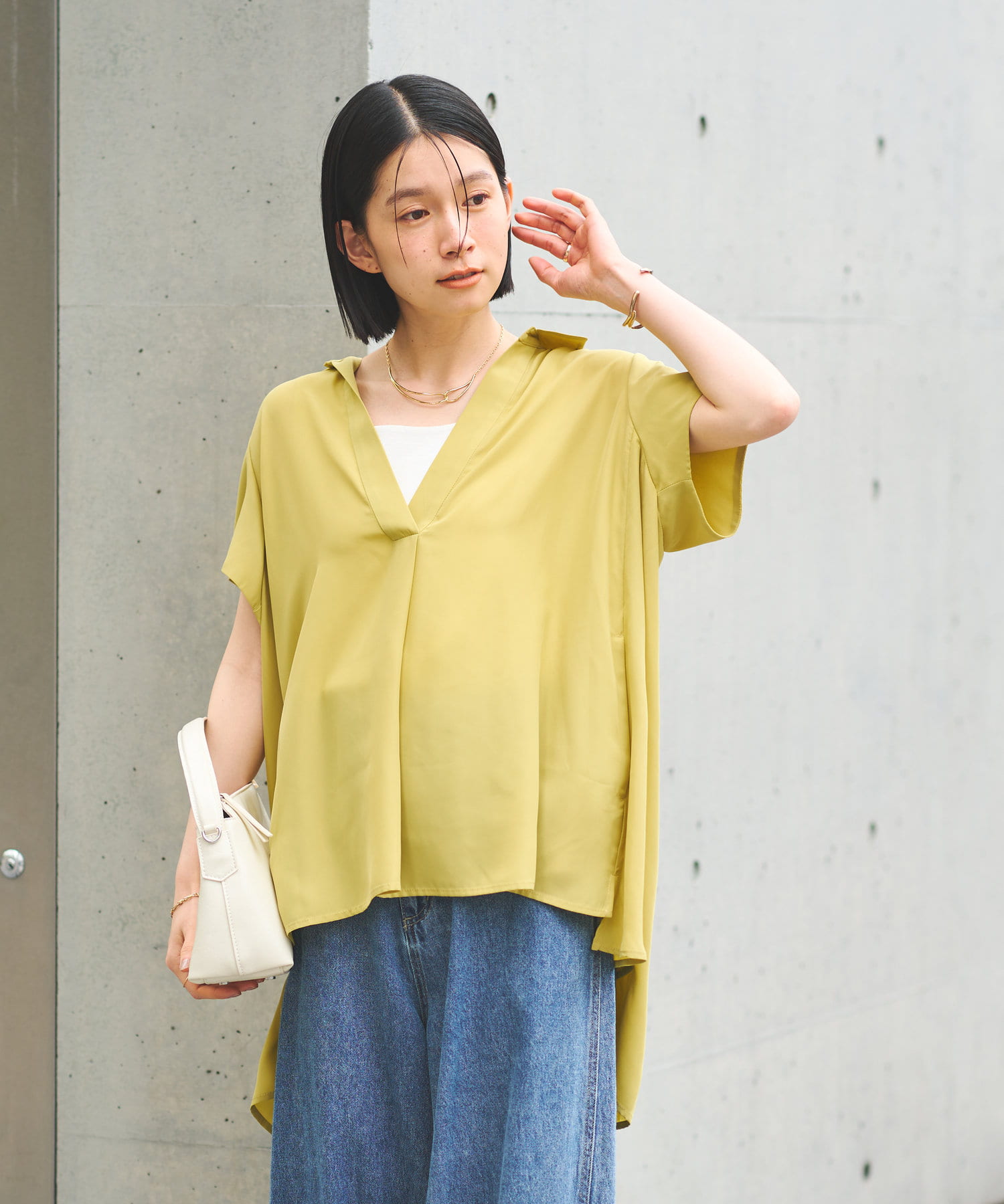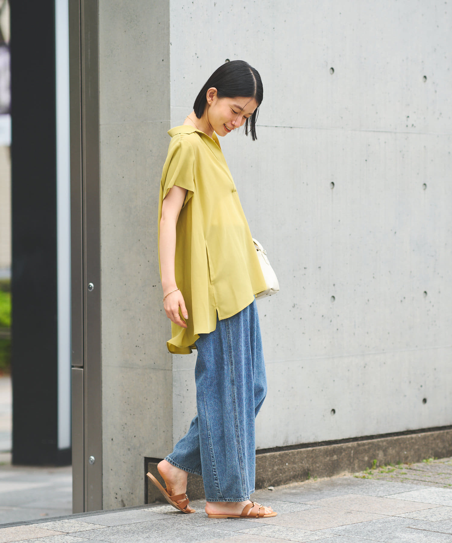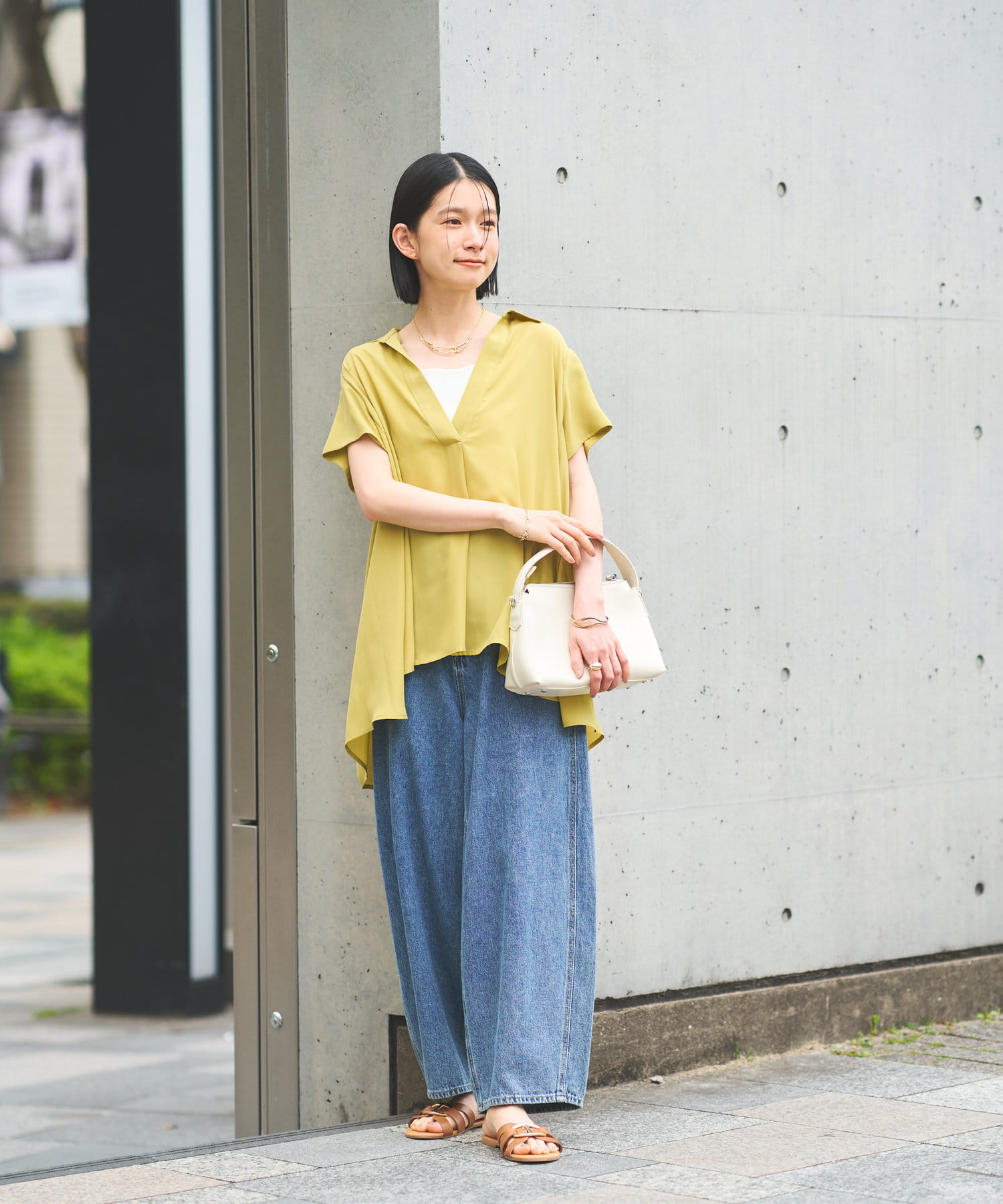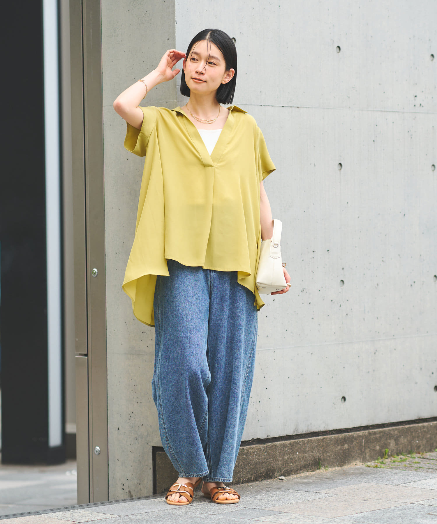とろみ感がある素材できちんと見えし、デニムと合わせても大人な雰囲気で着こなせました。