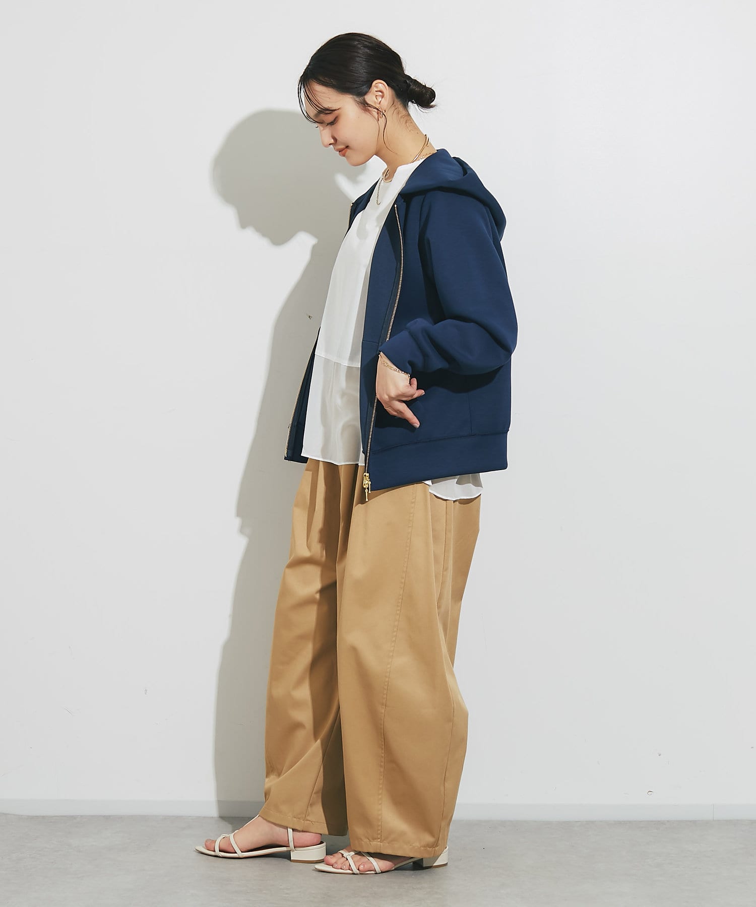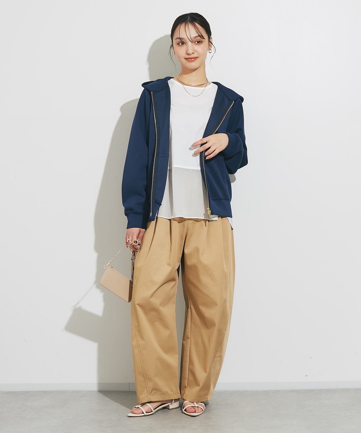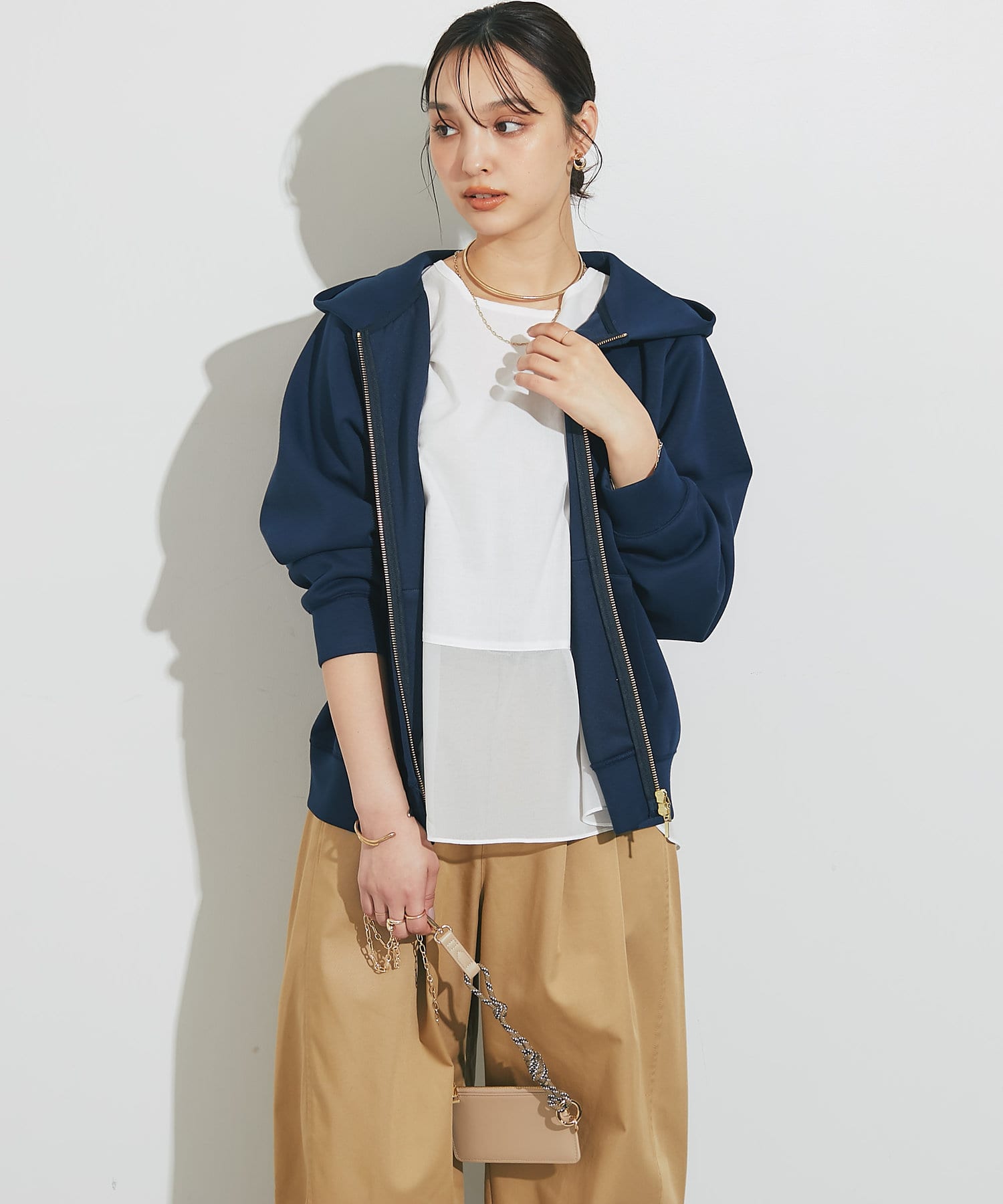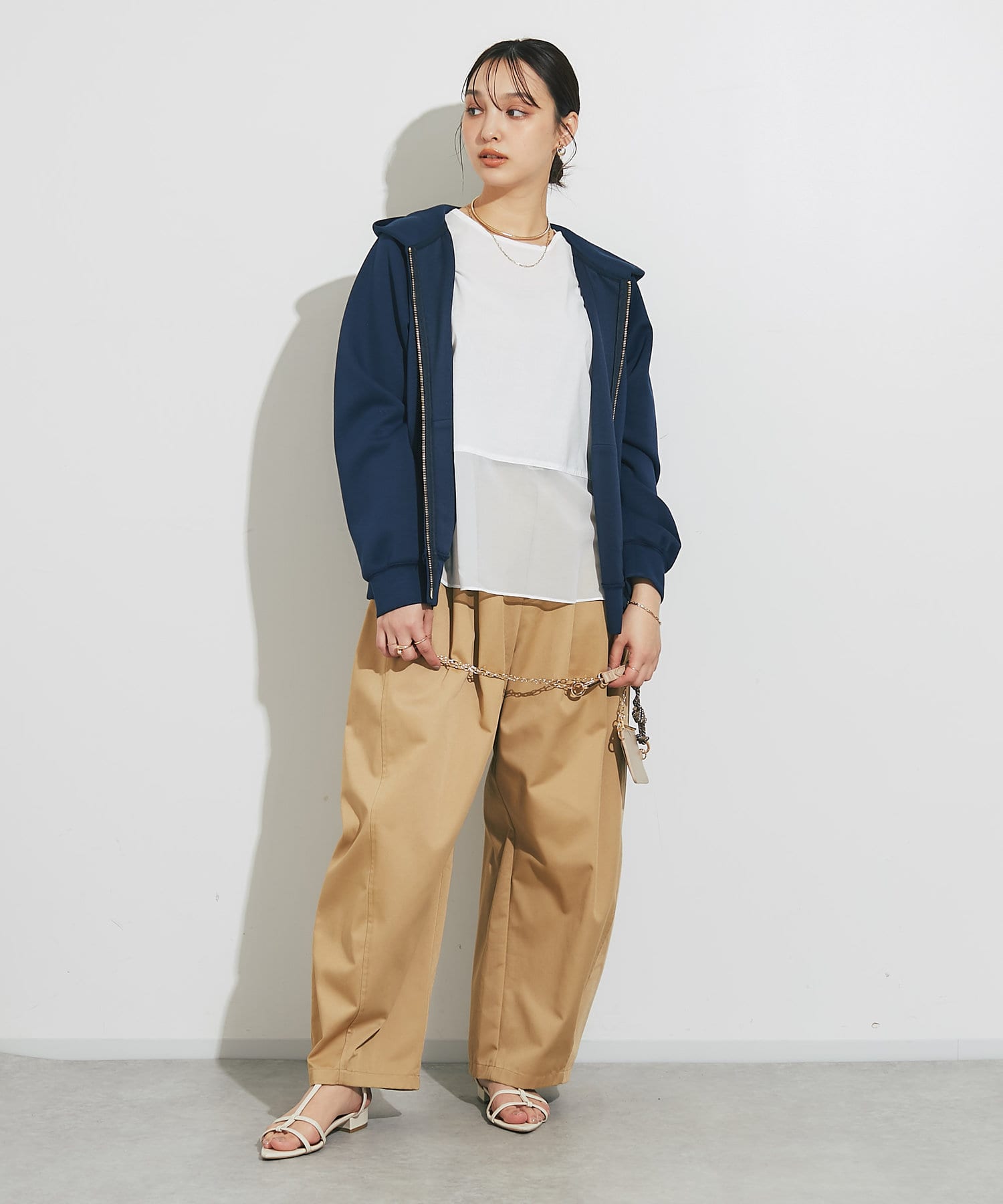 ・一枚で着ても、ジャケットやカーディガンを羽織っても様になる万能アイテム。