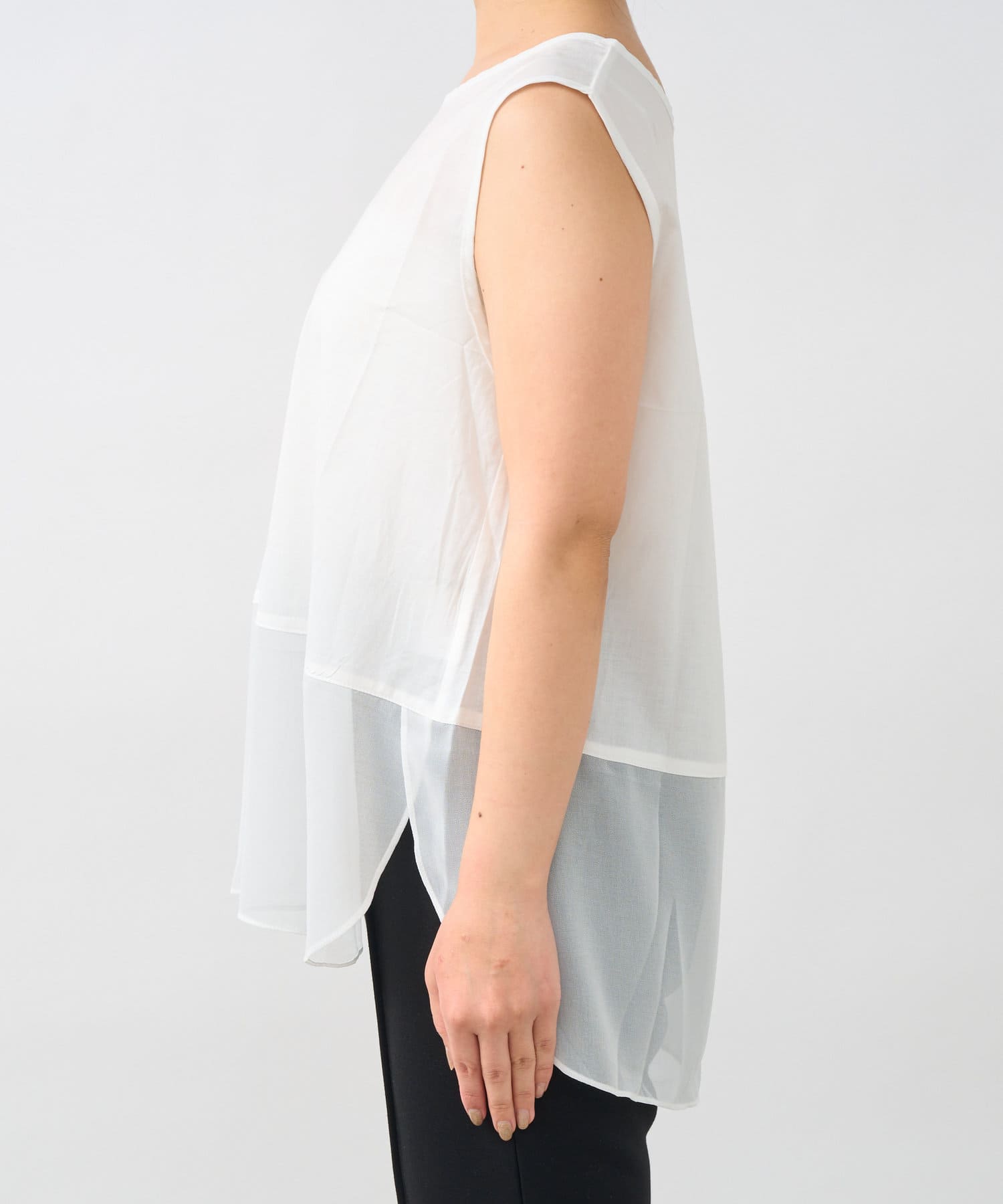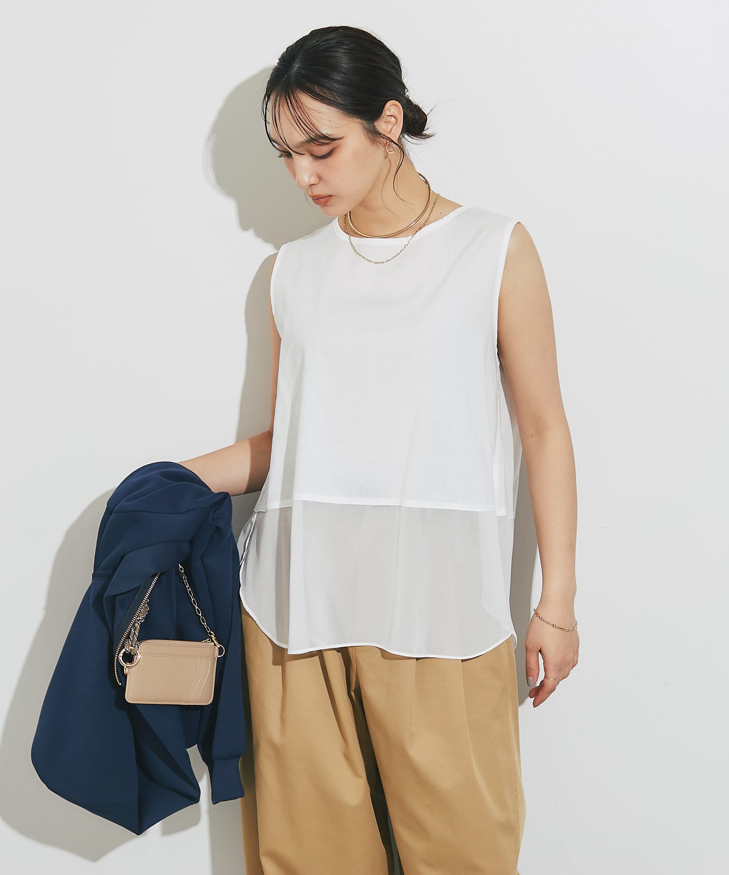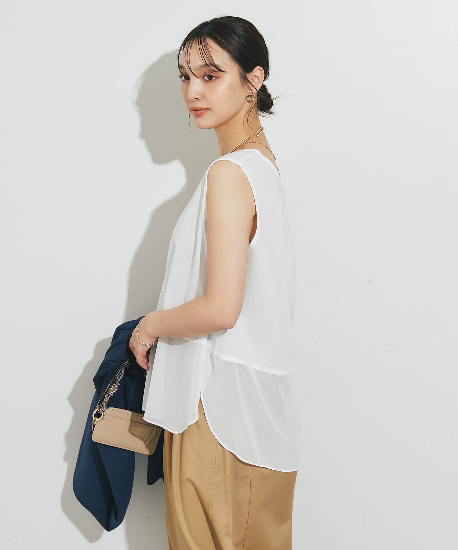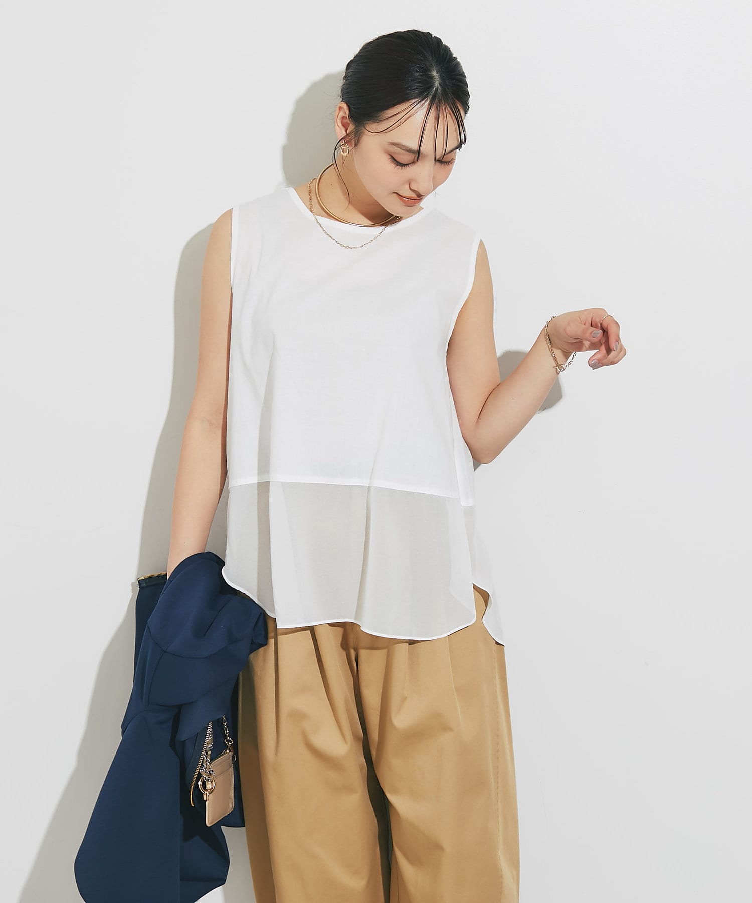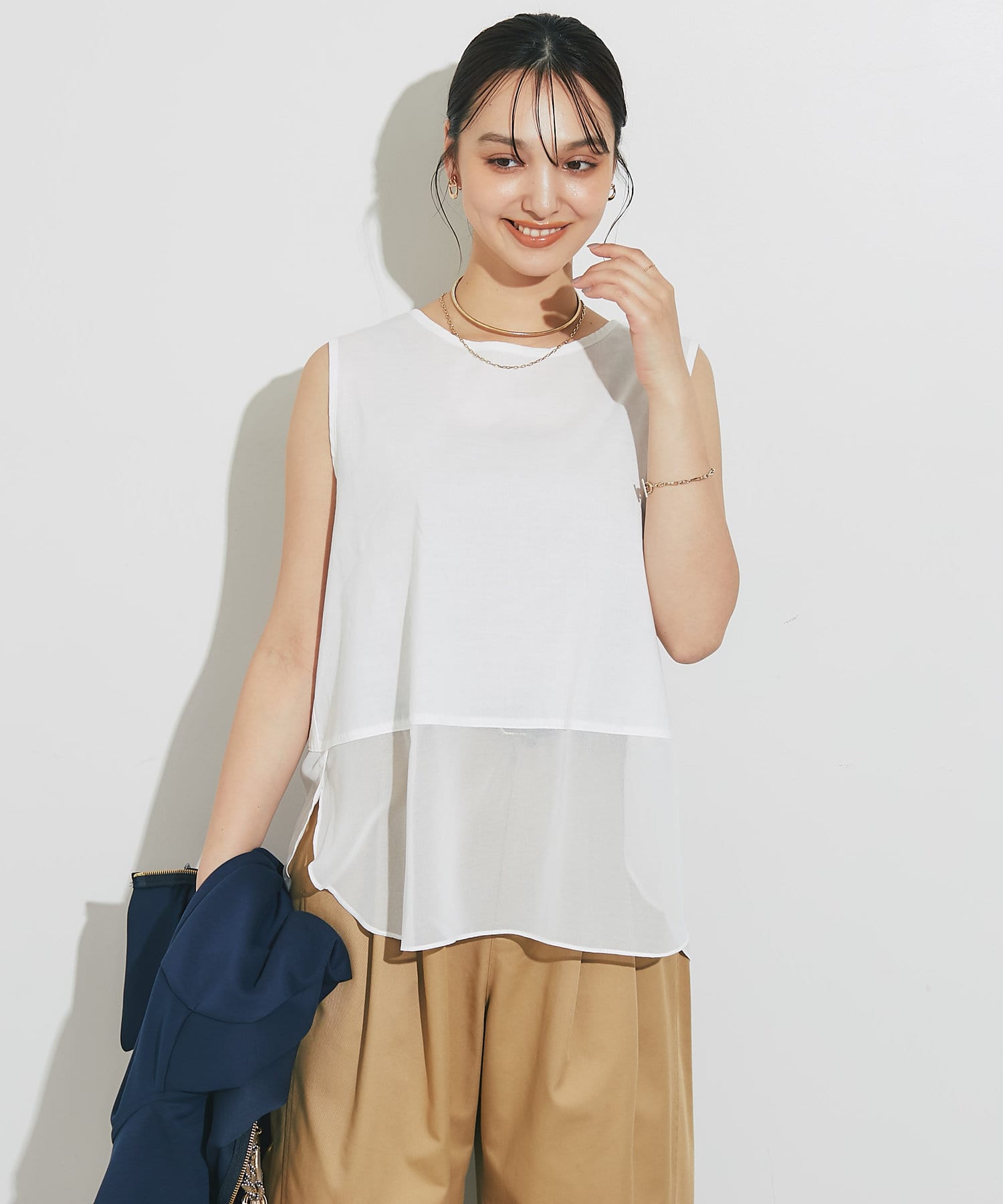 ・軽やかで上品な大人の着こなしが叶う綿100%のシアーレイヤードトップス