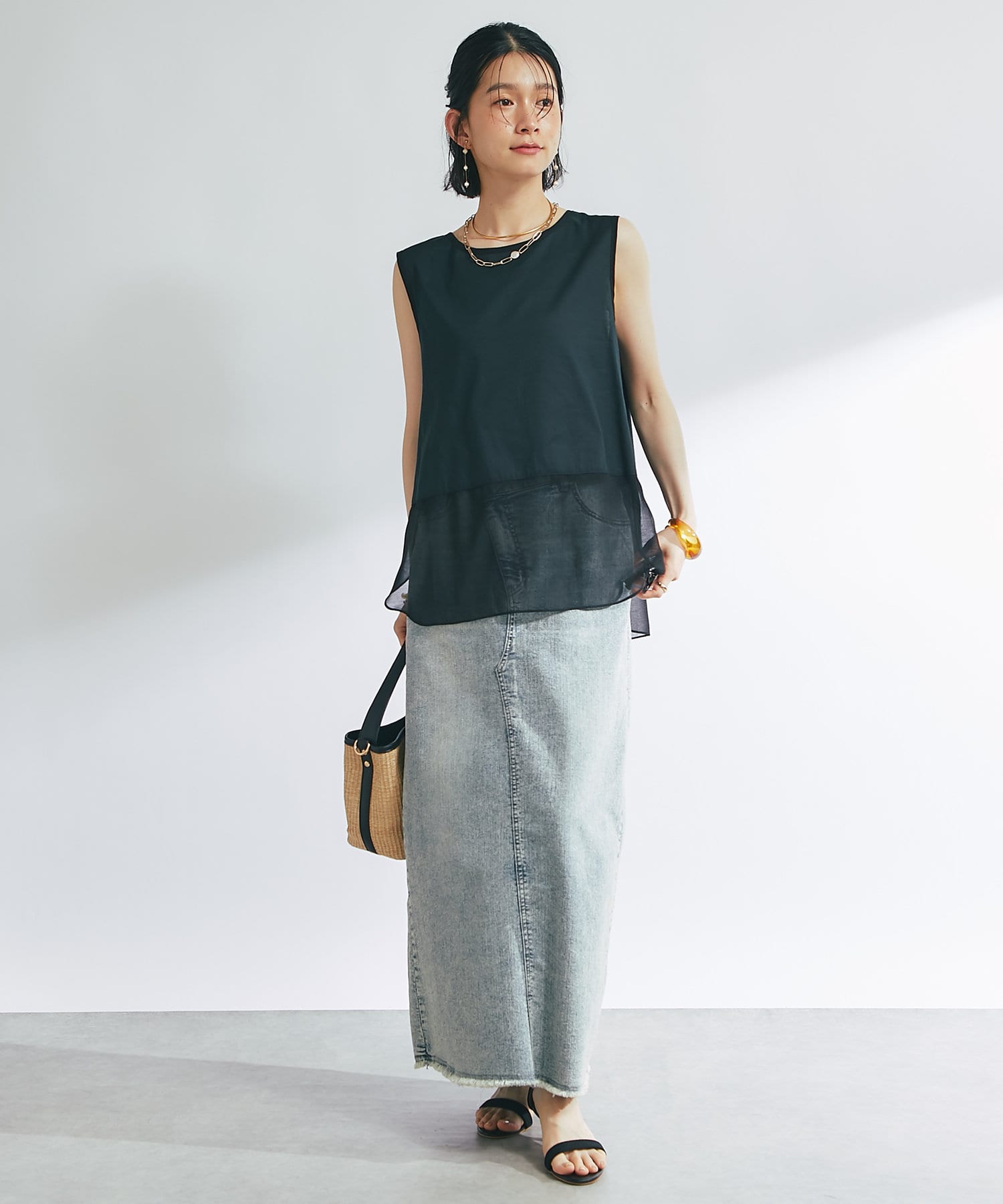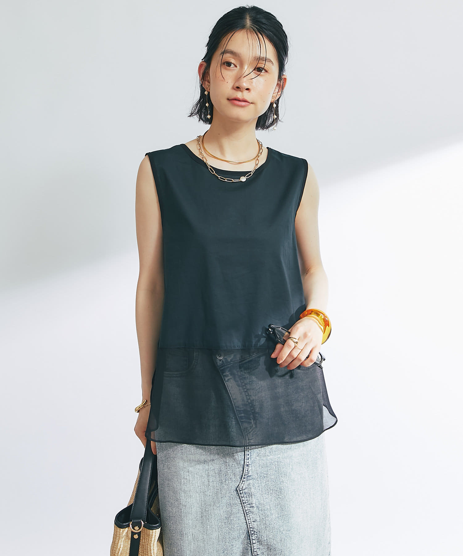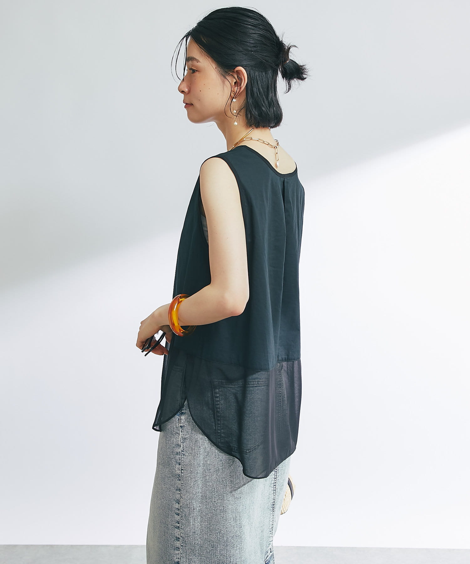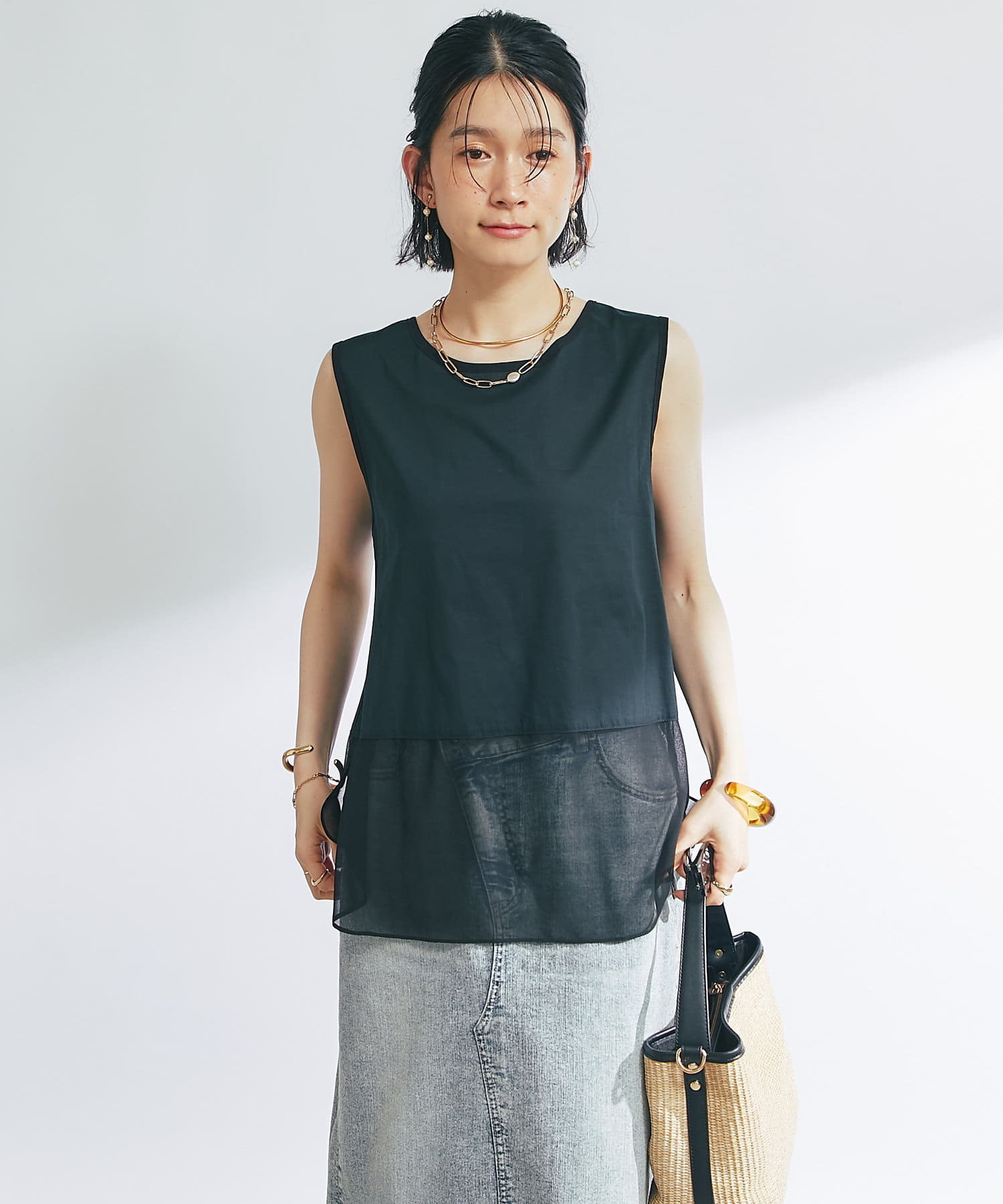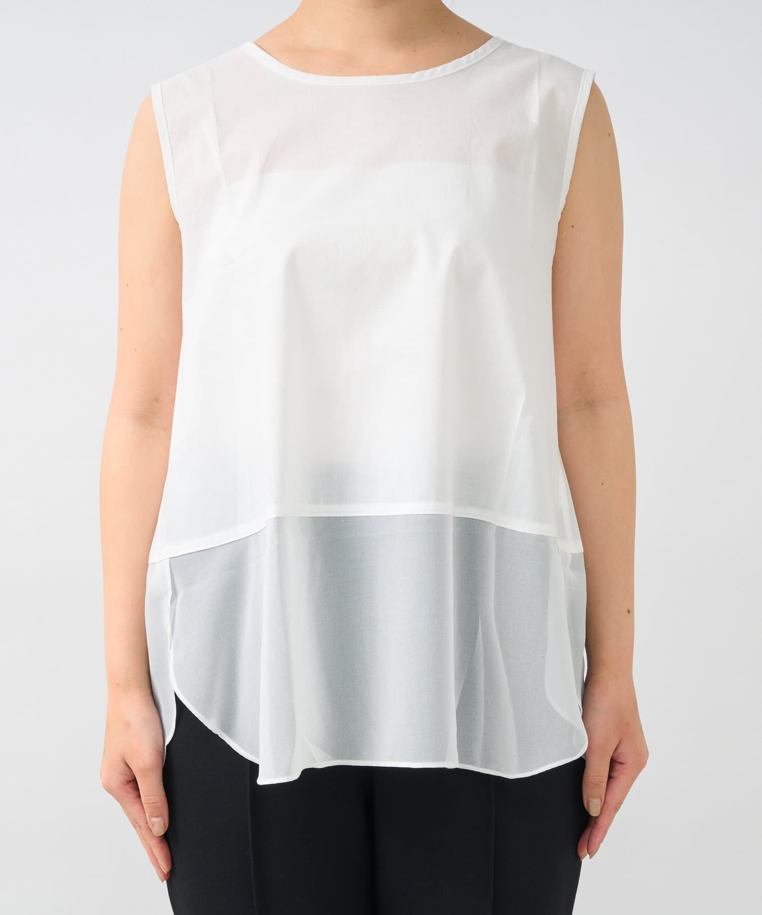 ・軽やかで上品な大人の着こなしが叶う綿100%のシアーレイヤードトップス