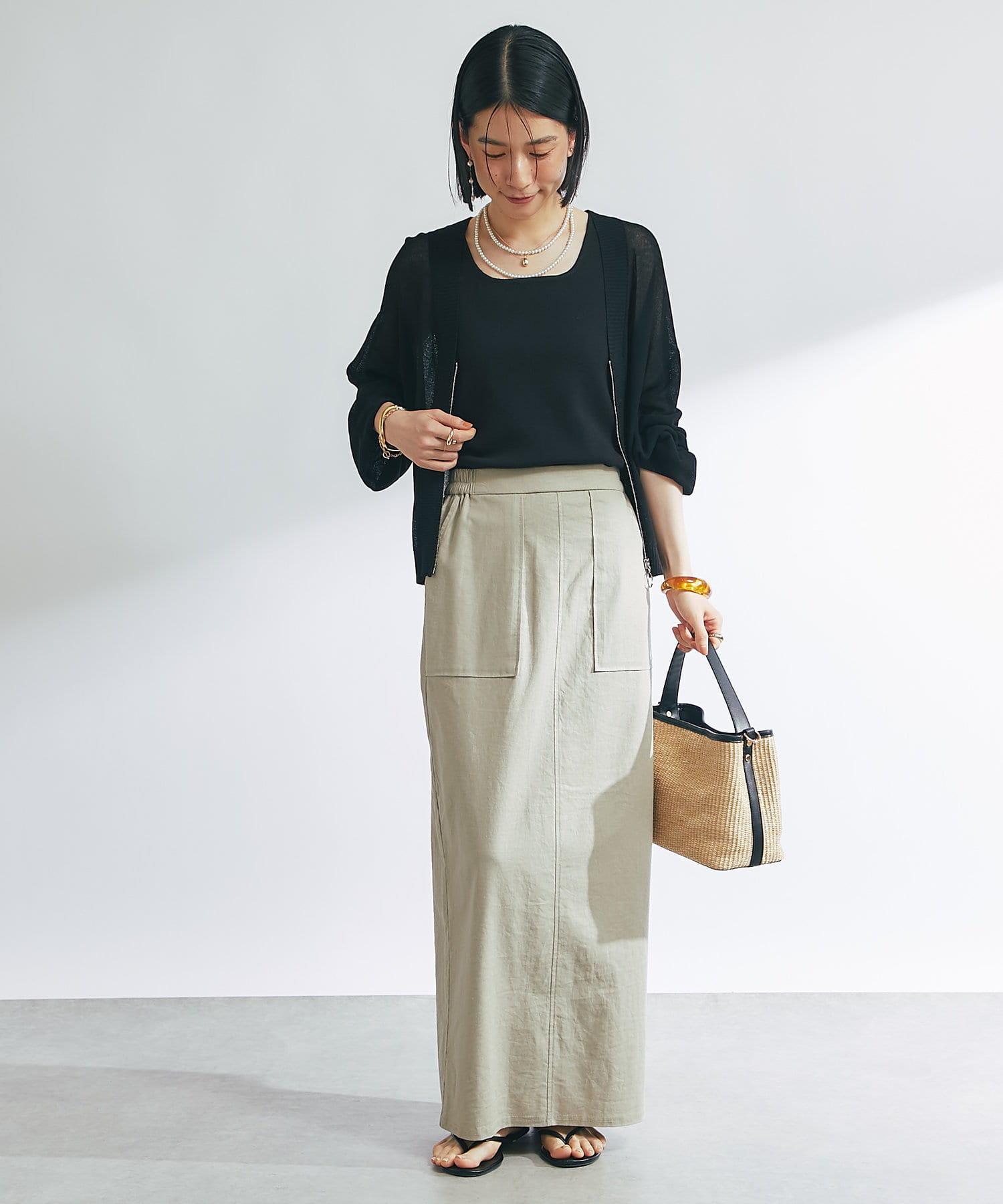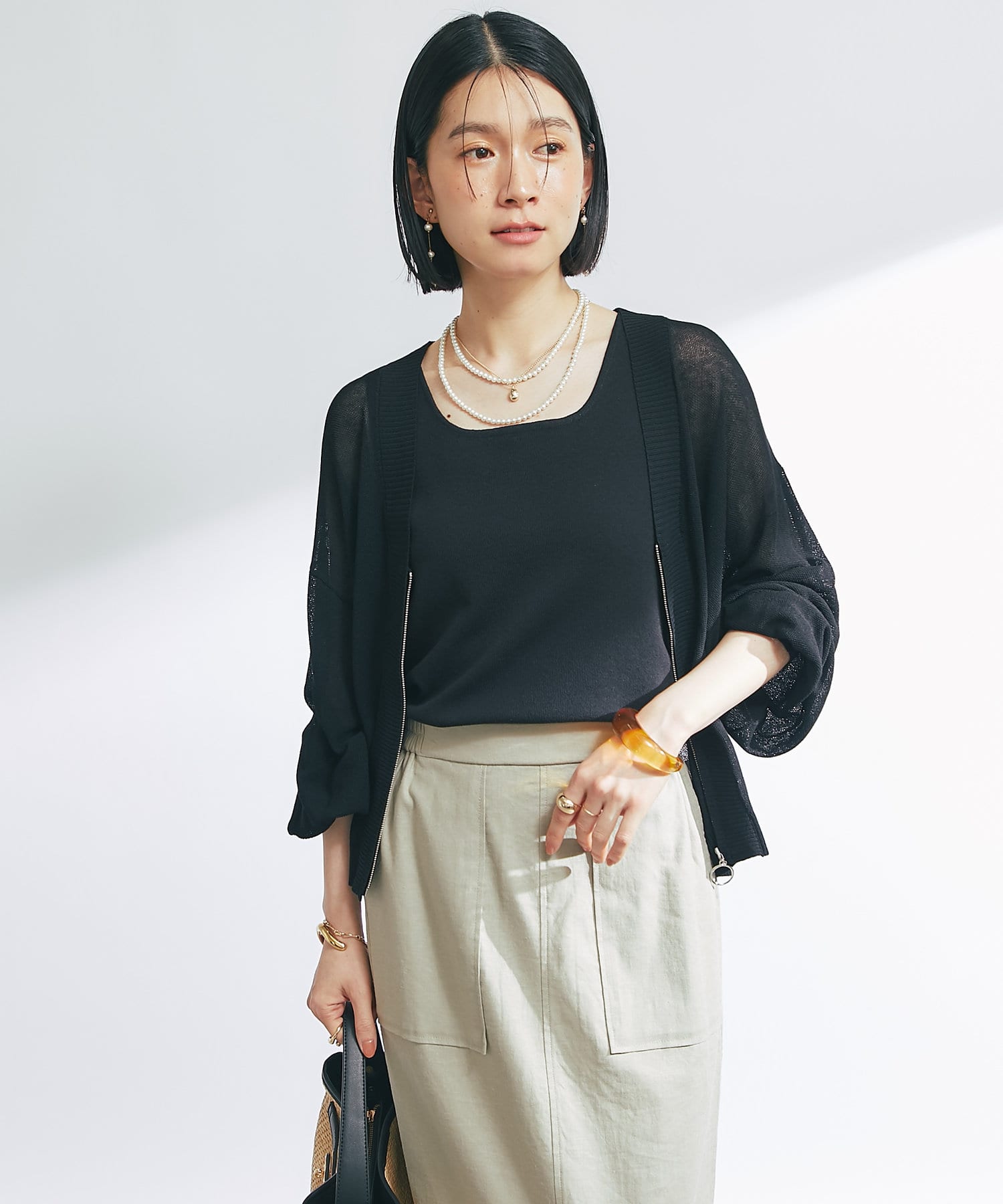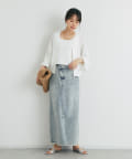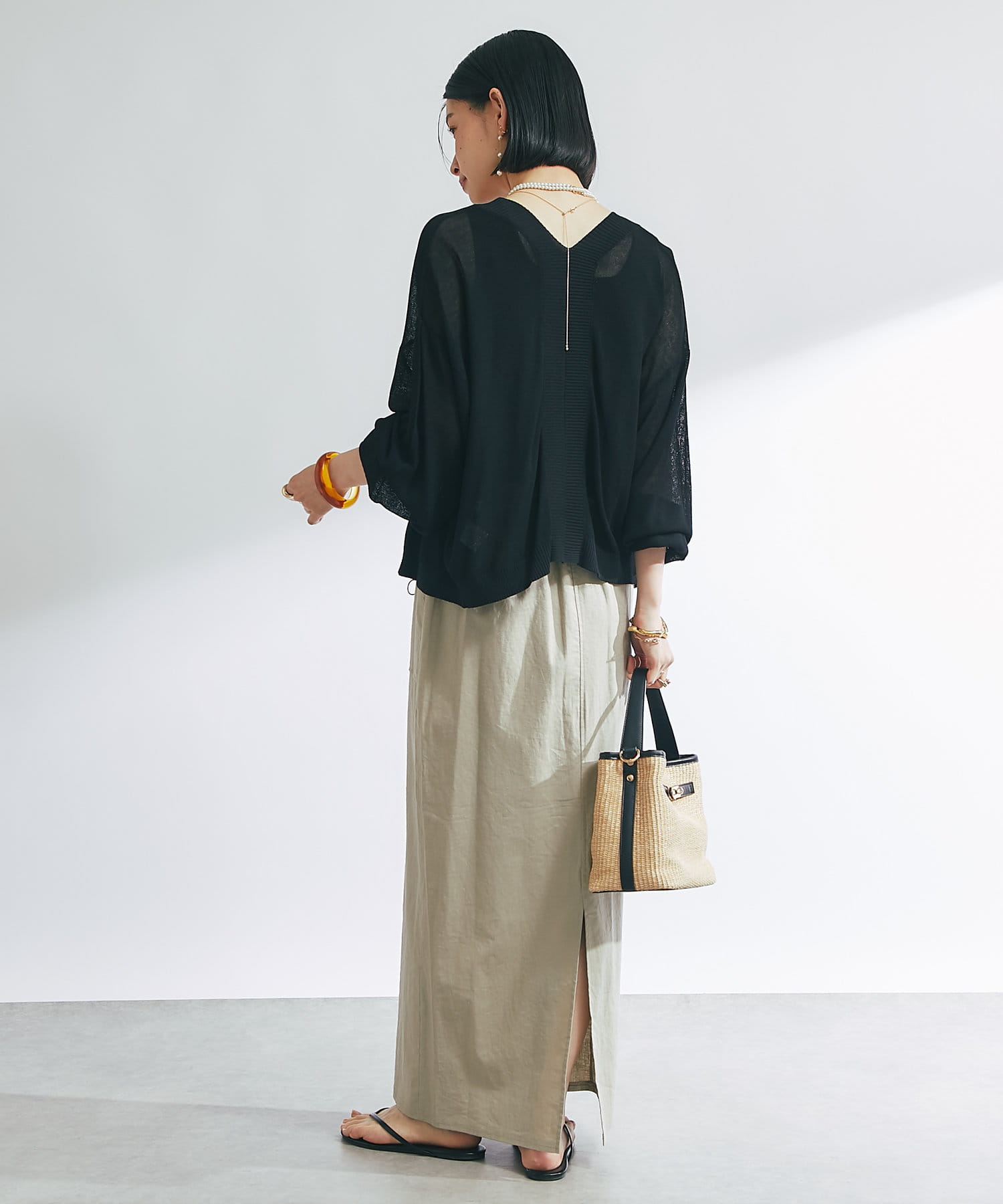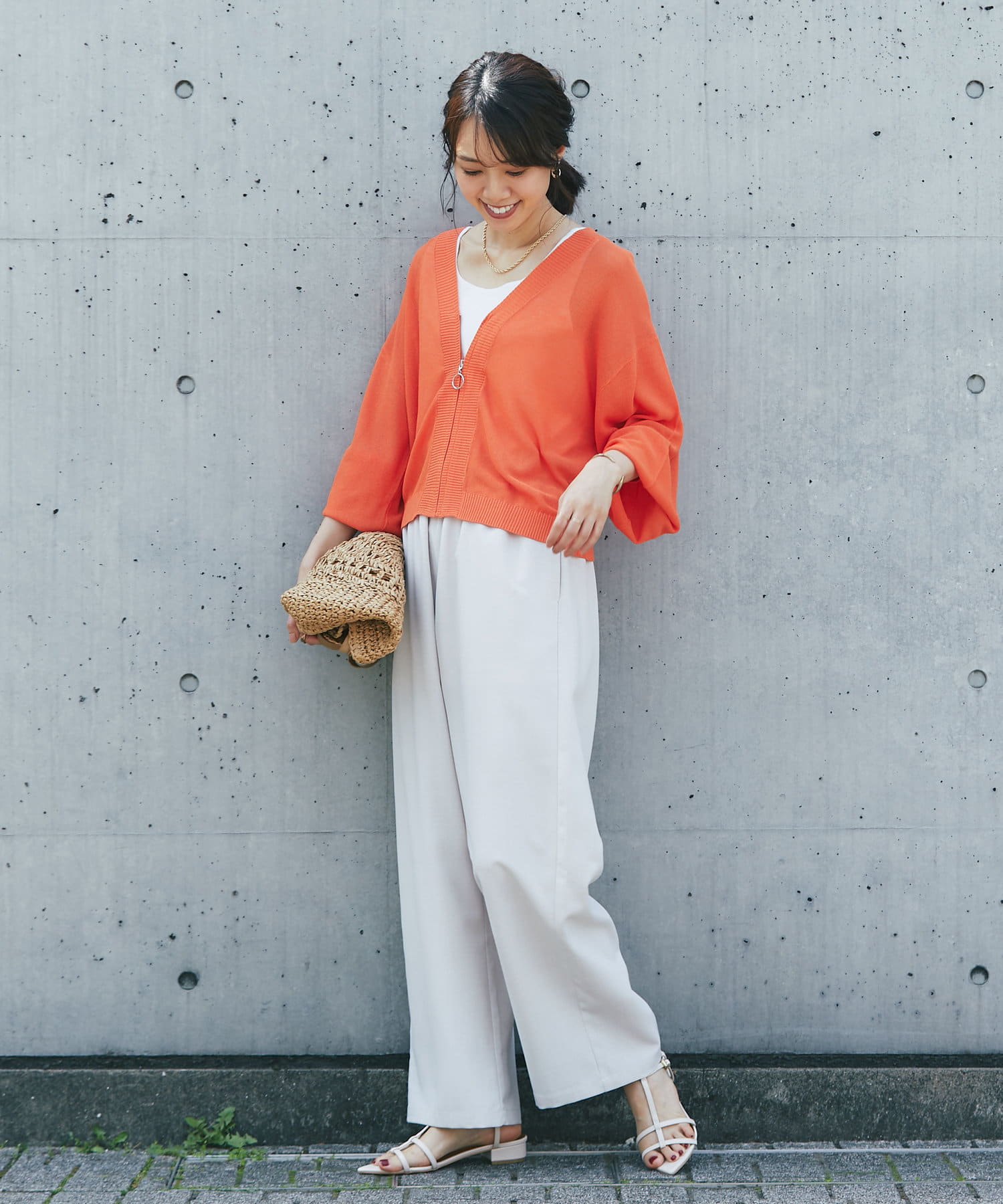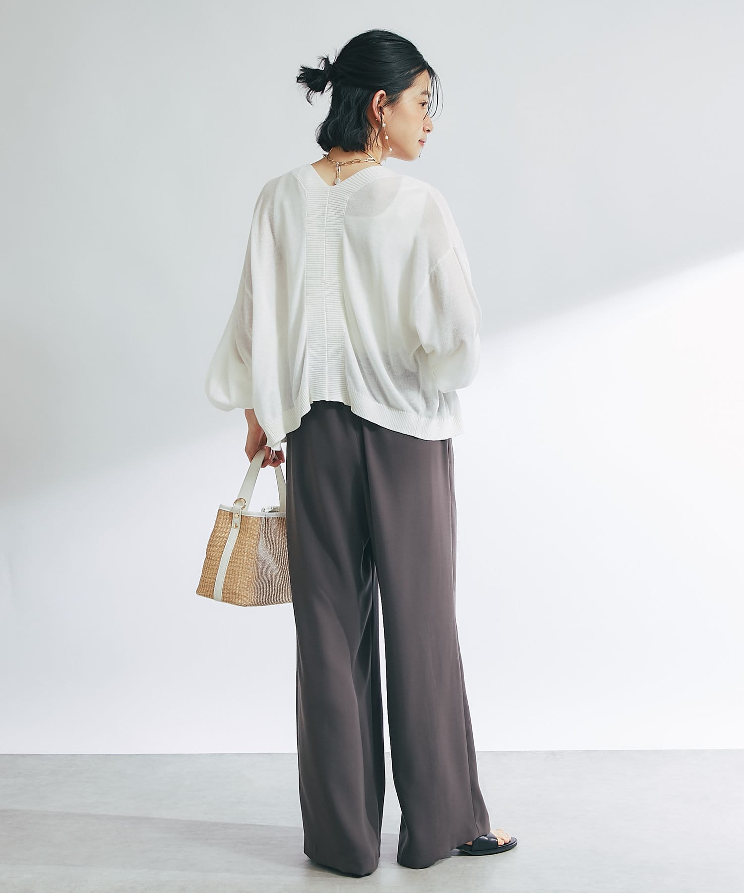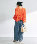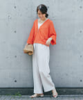 ・程よくゆとりのあるシルエットは、体型をカバーしながらも、女性らしいこなれ感を演出。