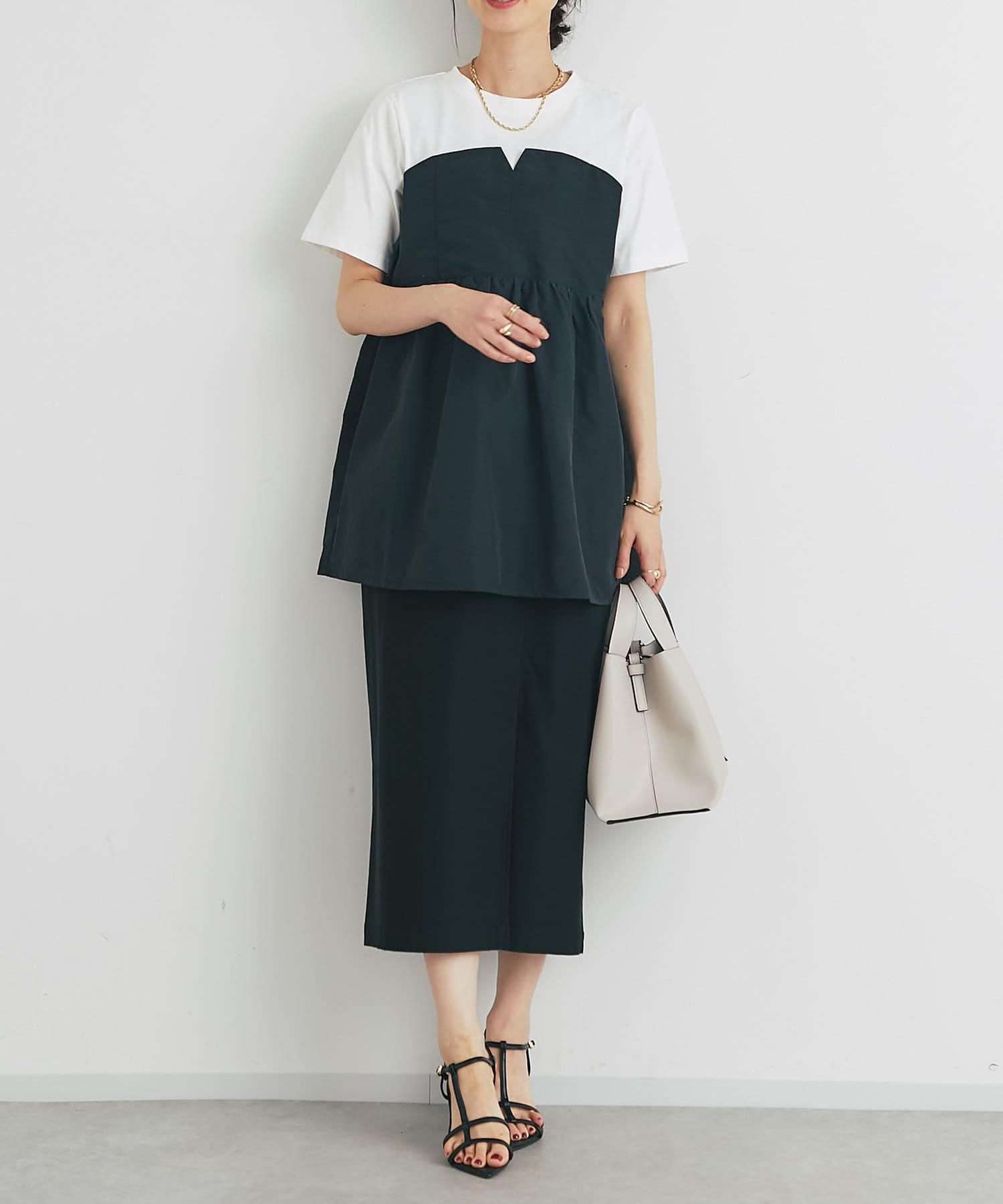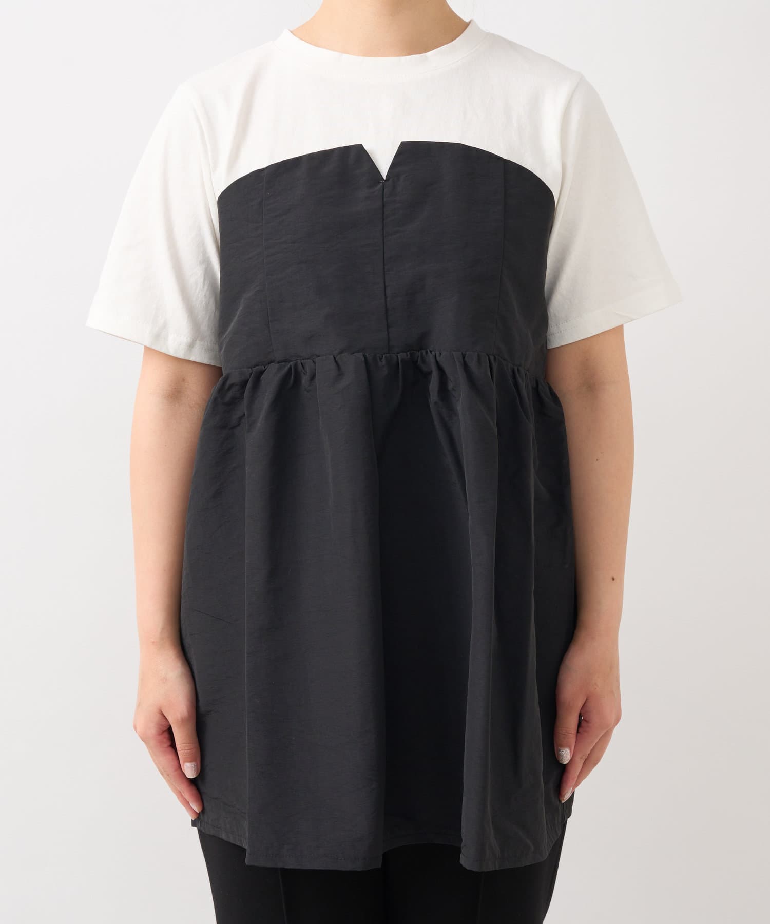 《スタイルアップ効果◎》ドッキング切替Tシャツ