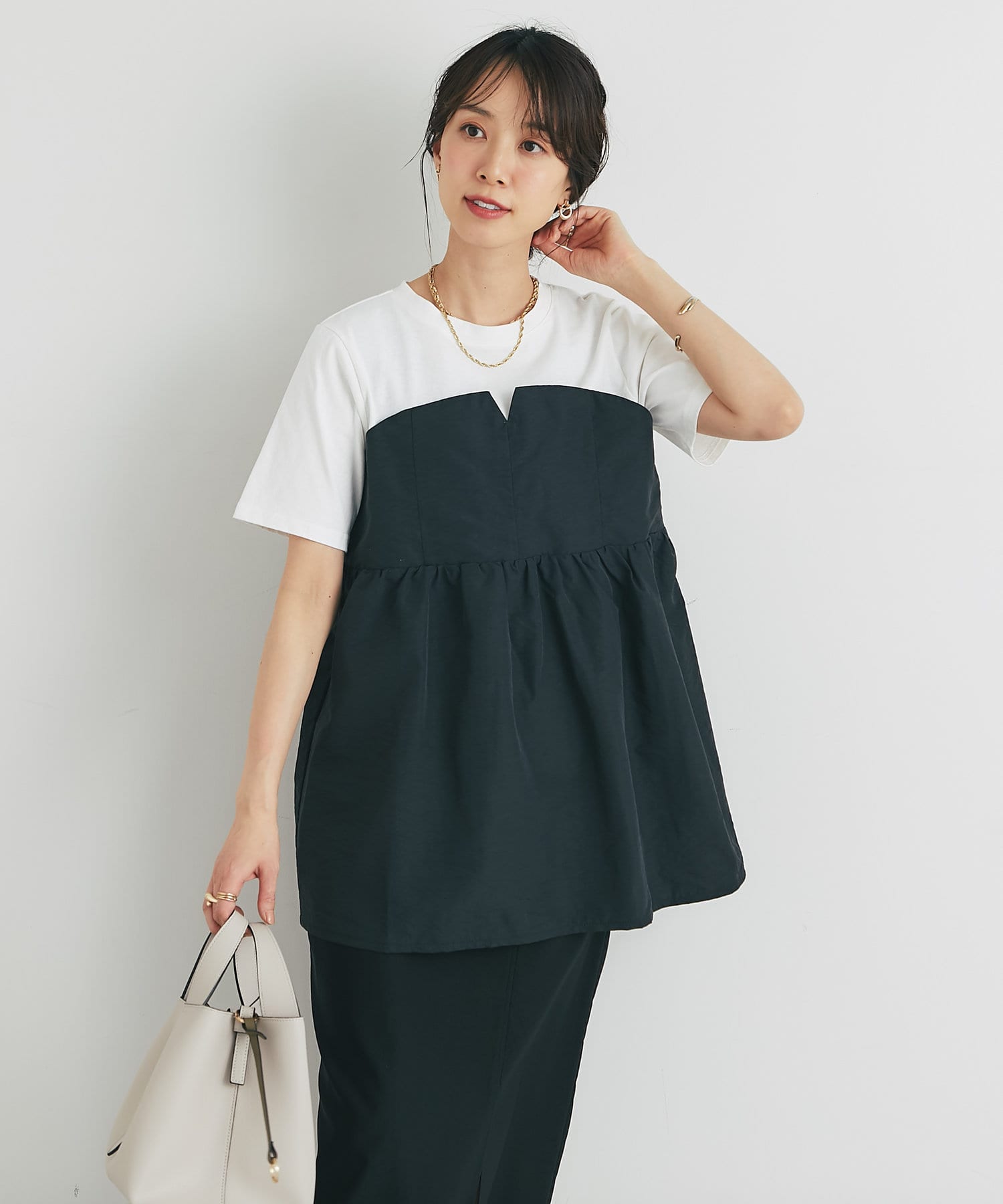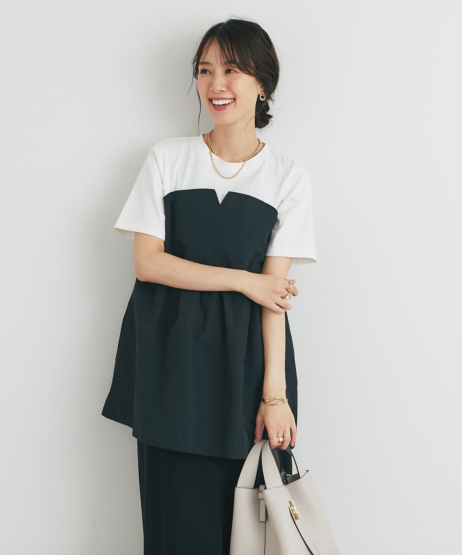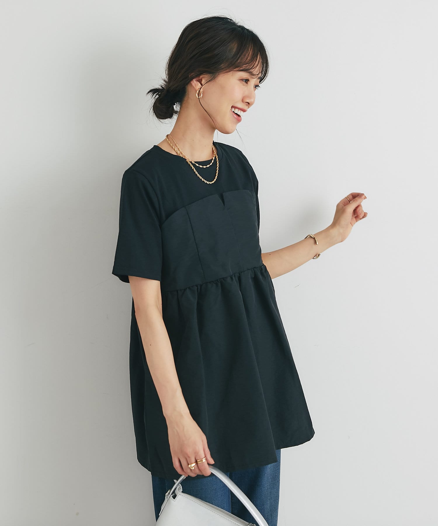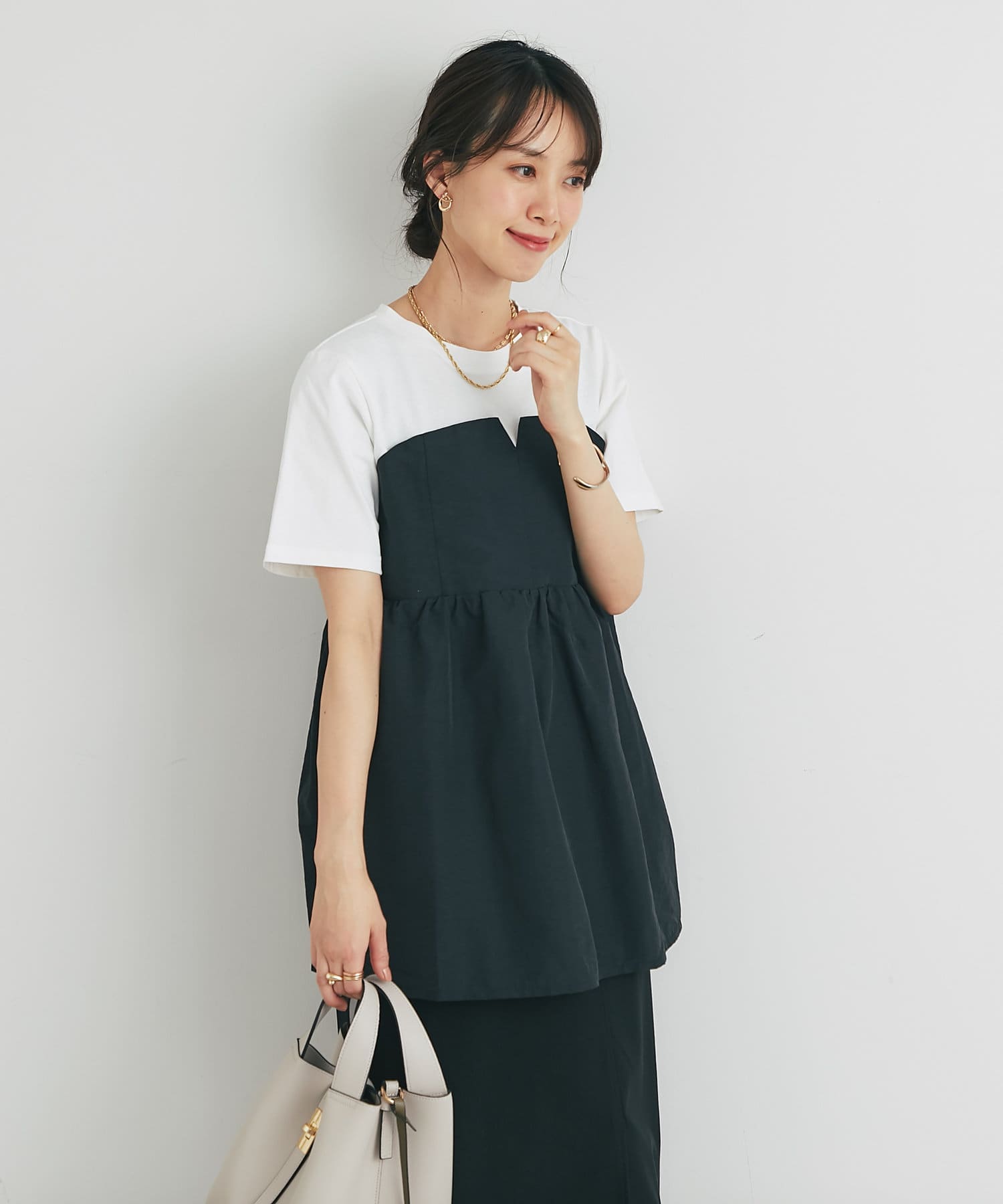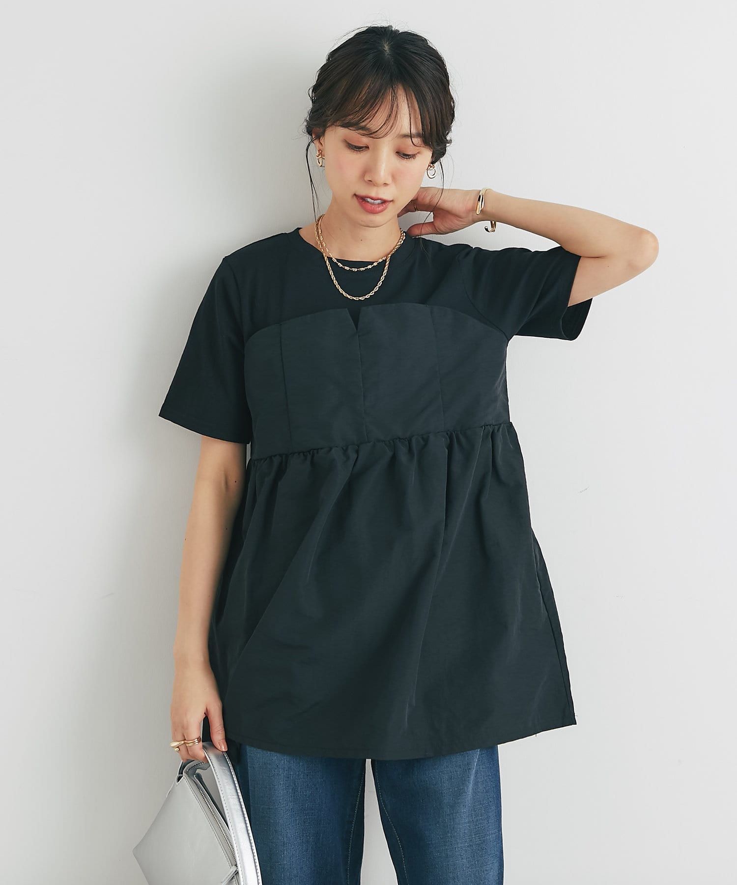 ・2つのトップスを重ね着しているかのようなデザインで、簡単におしゃれ見えします!