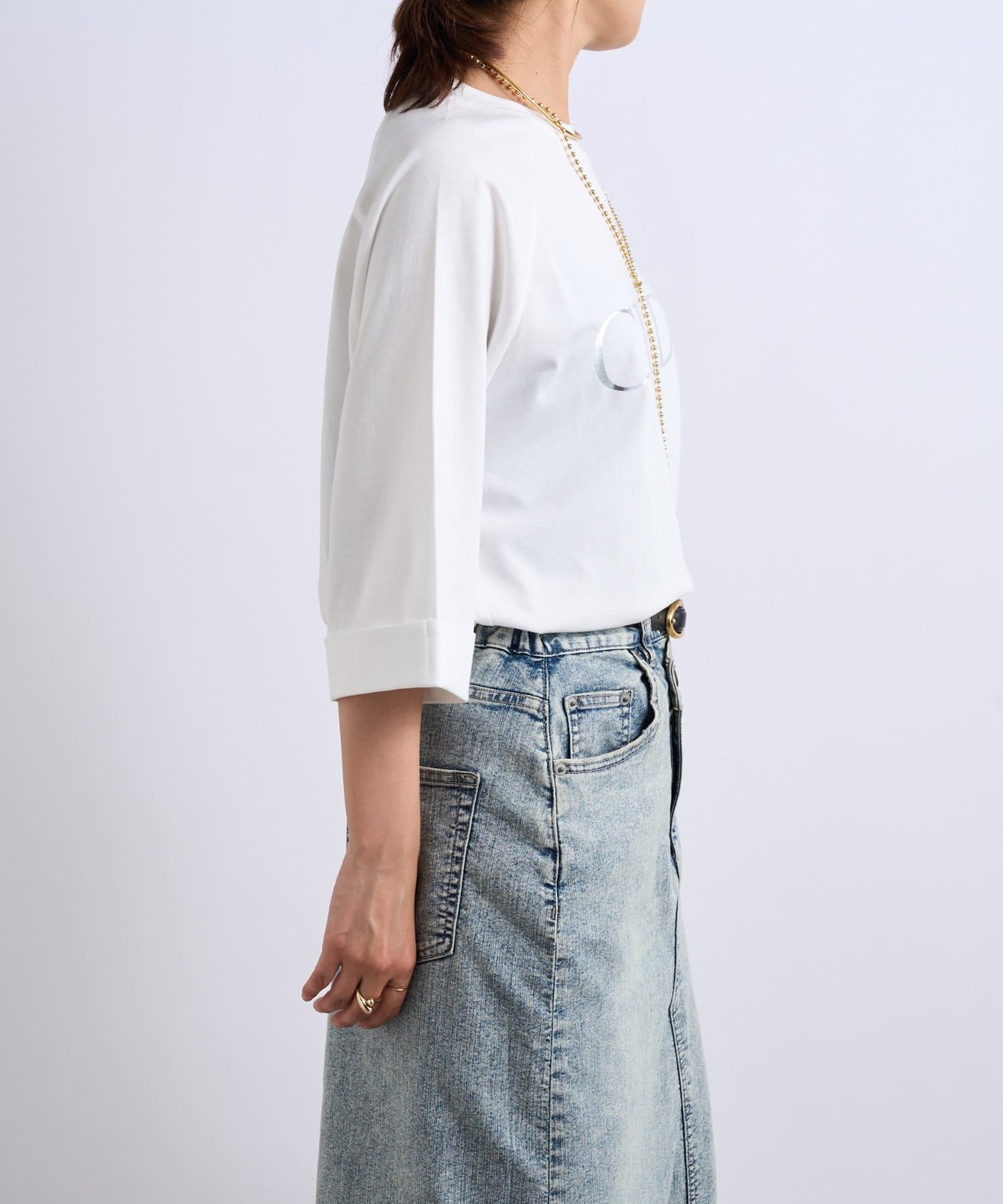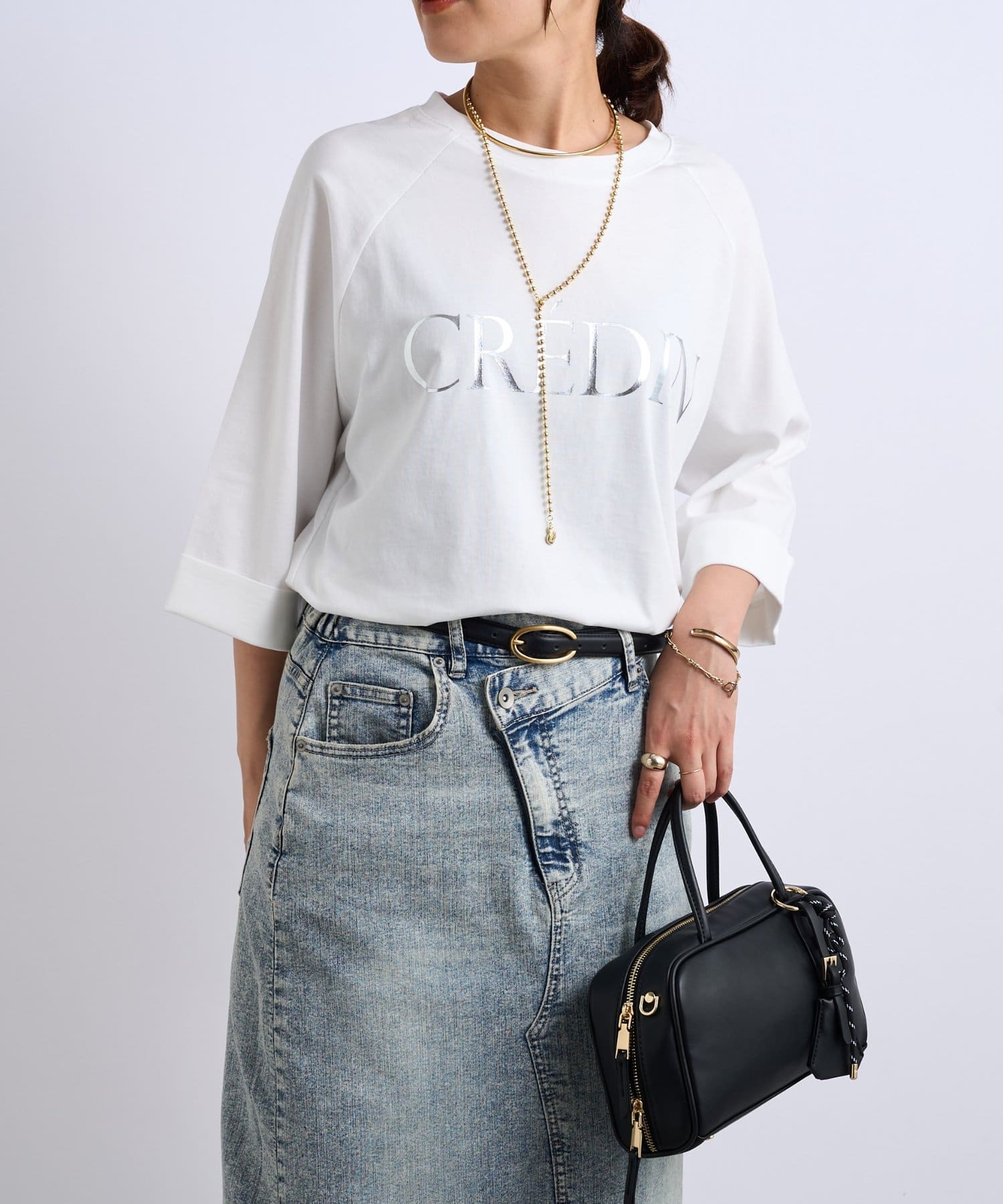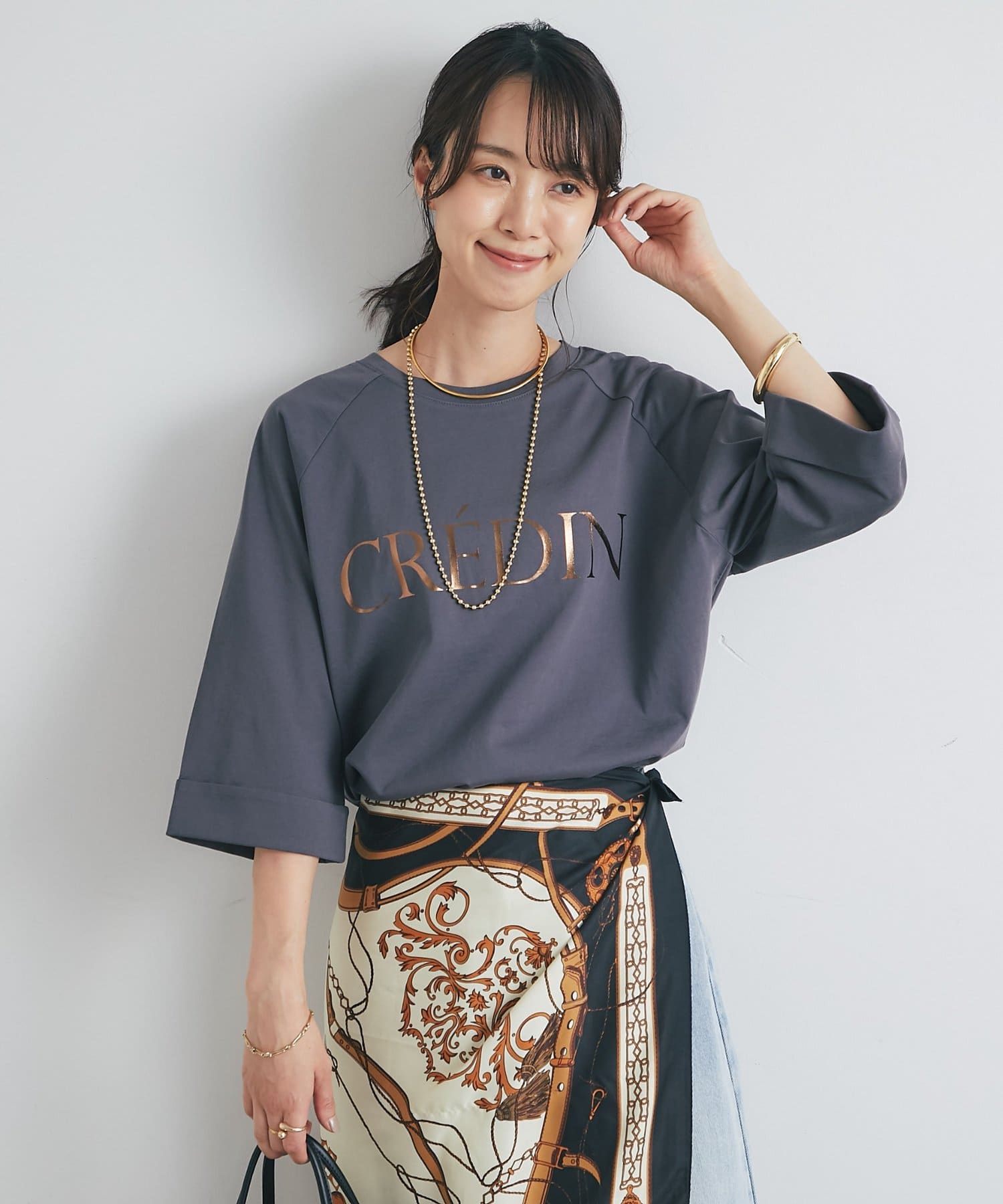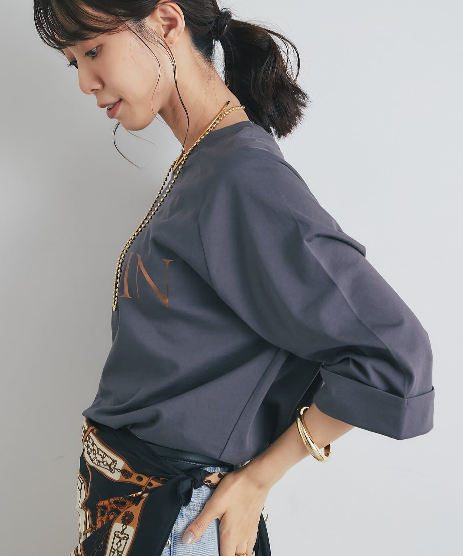 ・洗練された大人の女性を演出する箔押しロゴTシャツ