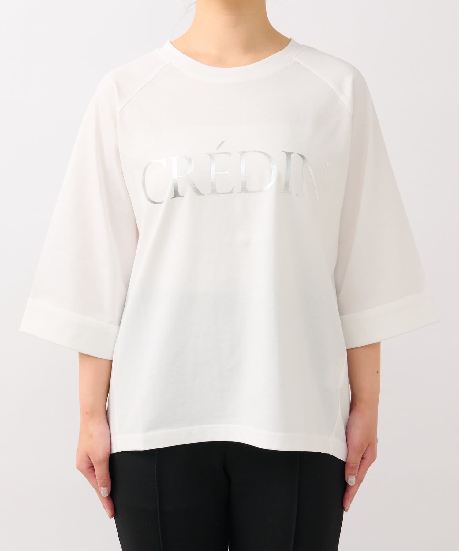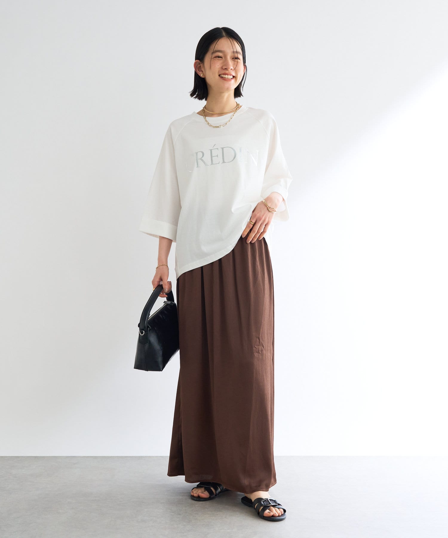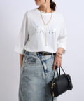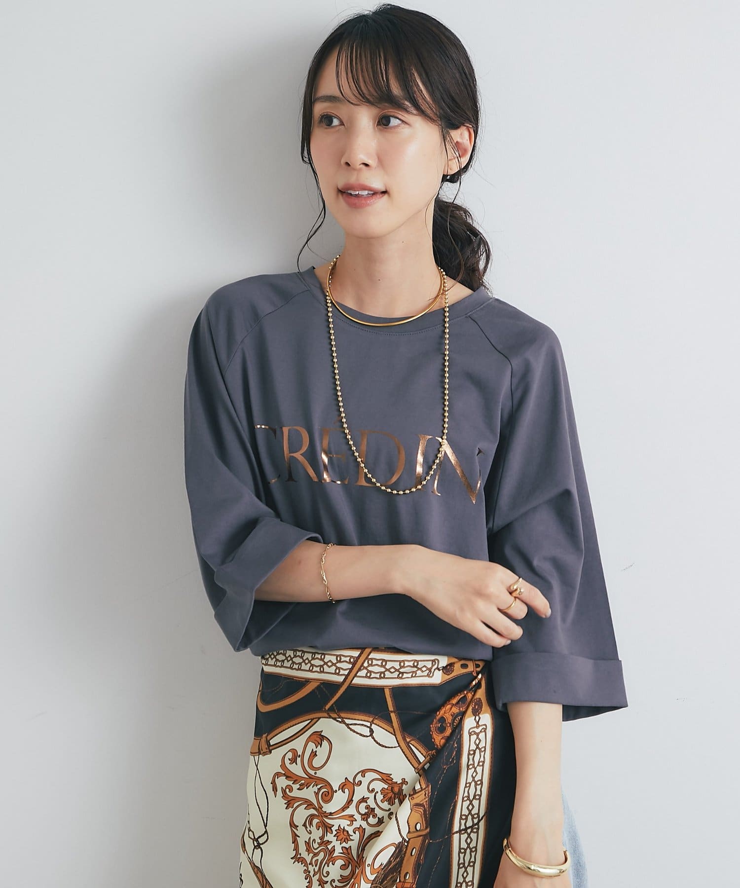 ・洗練された大人の女性を演出する箔押しロゴTシャツ