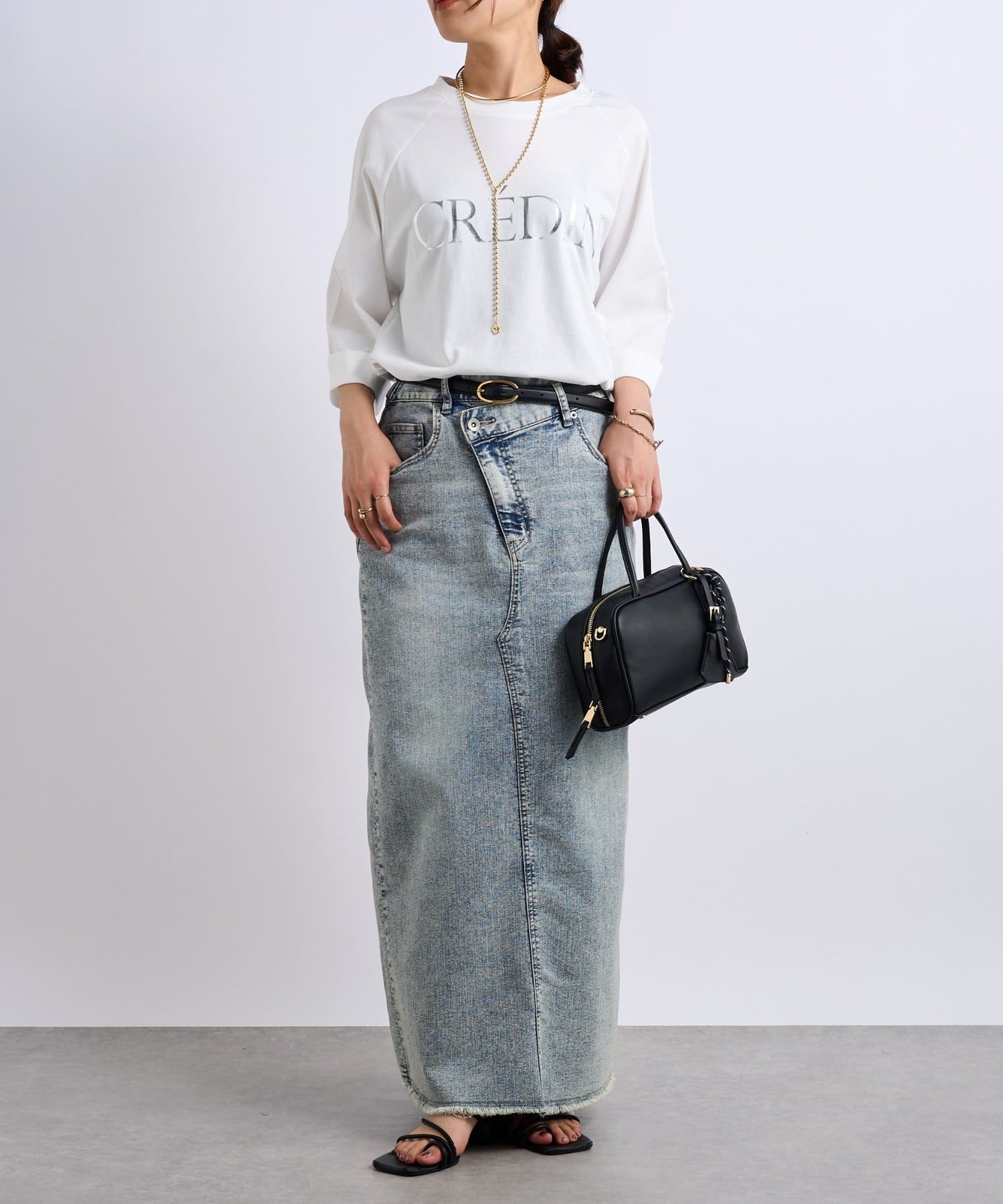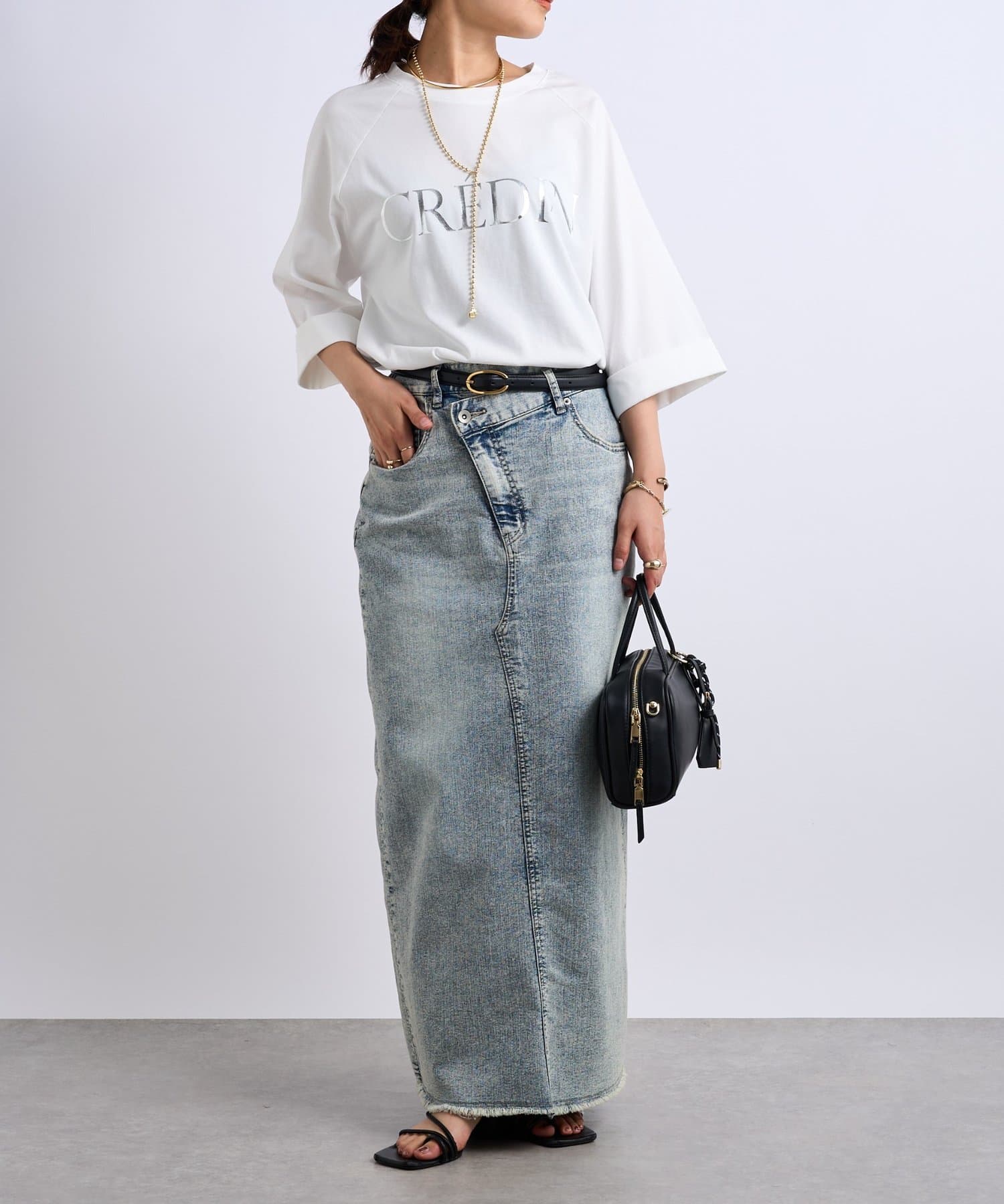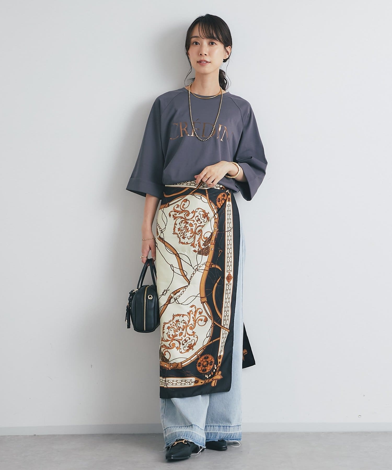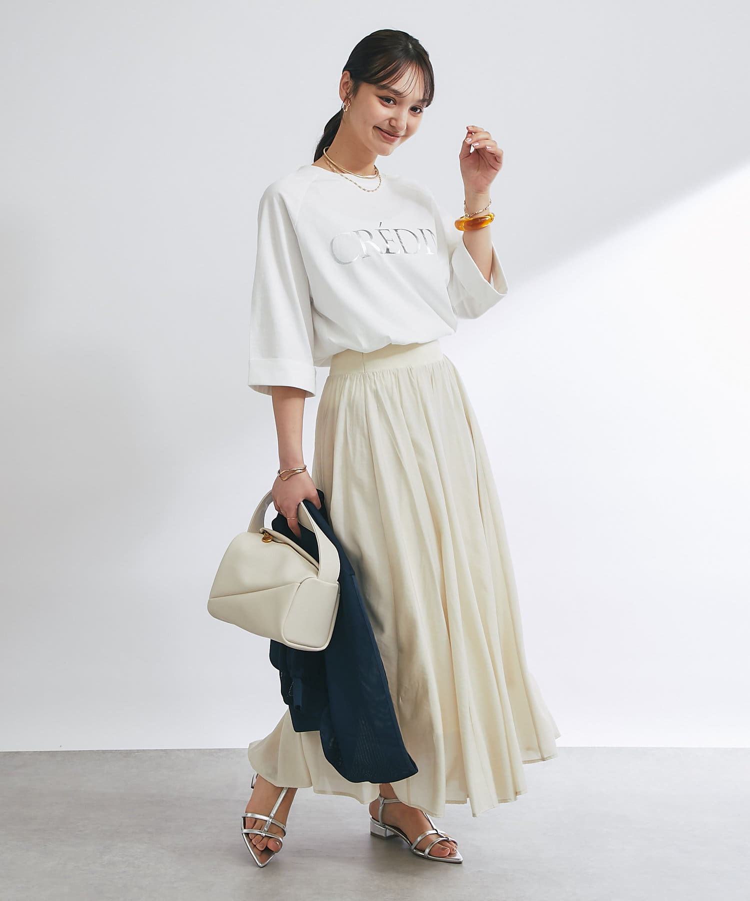 ・洗練された大人の女性を演出する箔押しロゴTシャツ