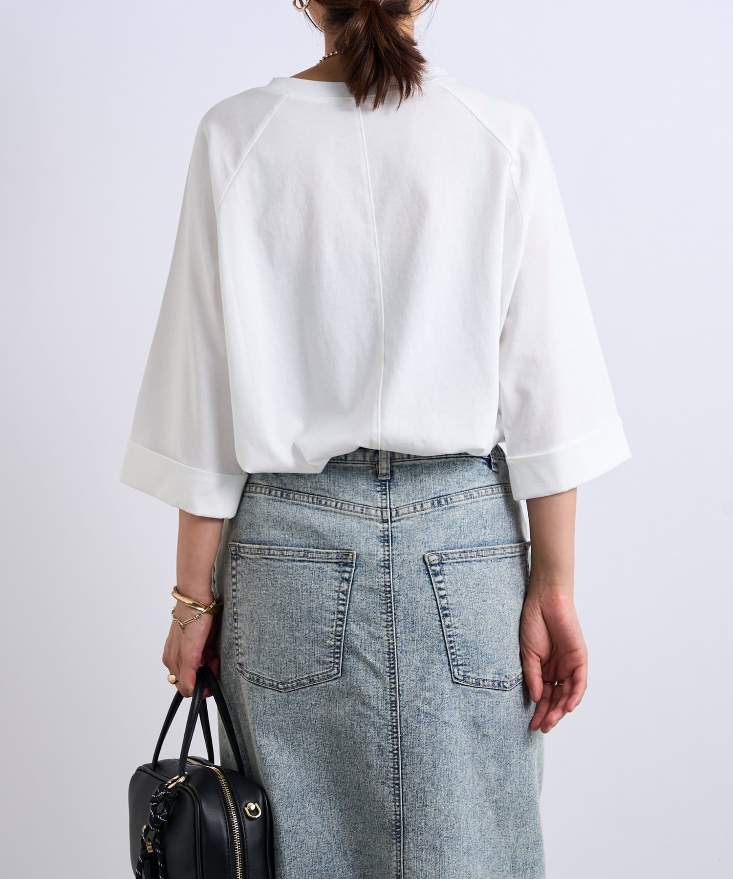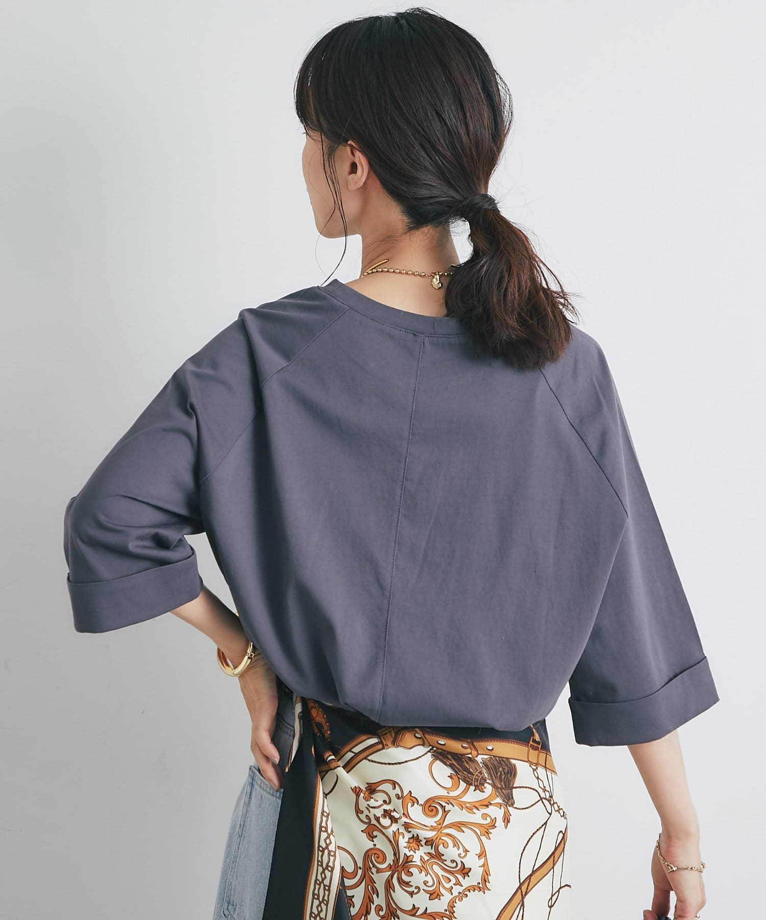 ・七分袖の袖丈は、季節を問わず着回しやすく、春夏の軽やかな装いにも、秋の重ね着スタイルにもぴったり。