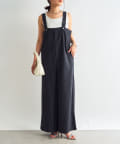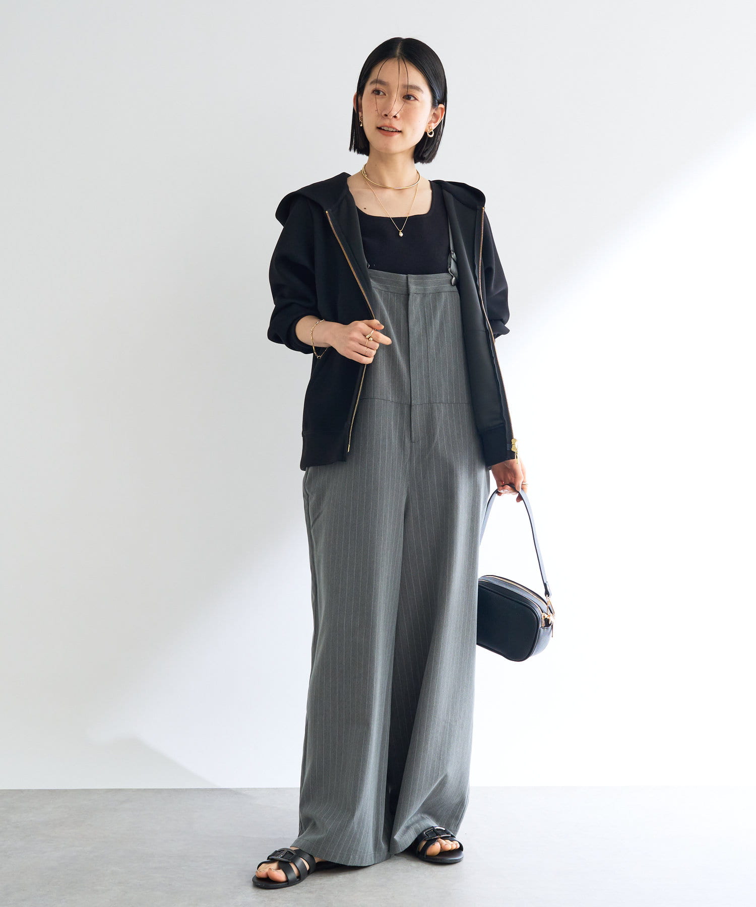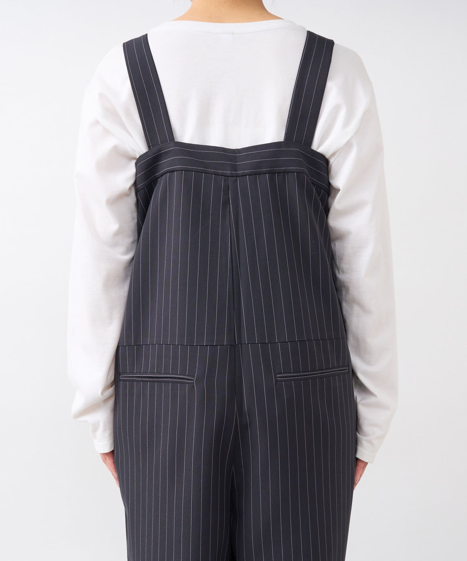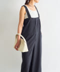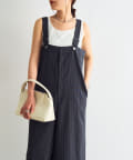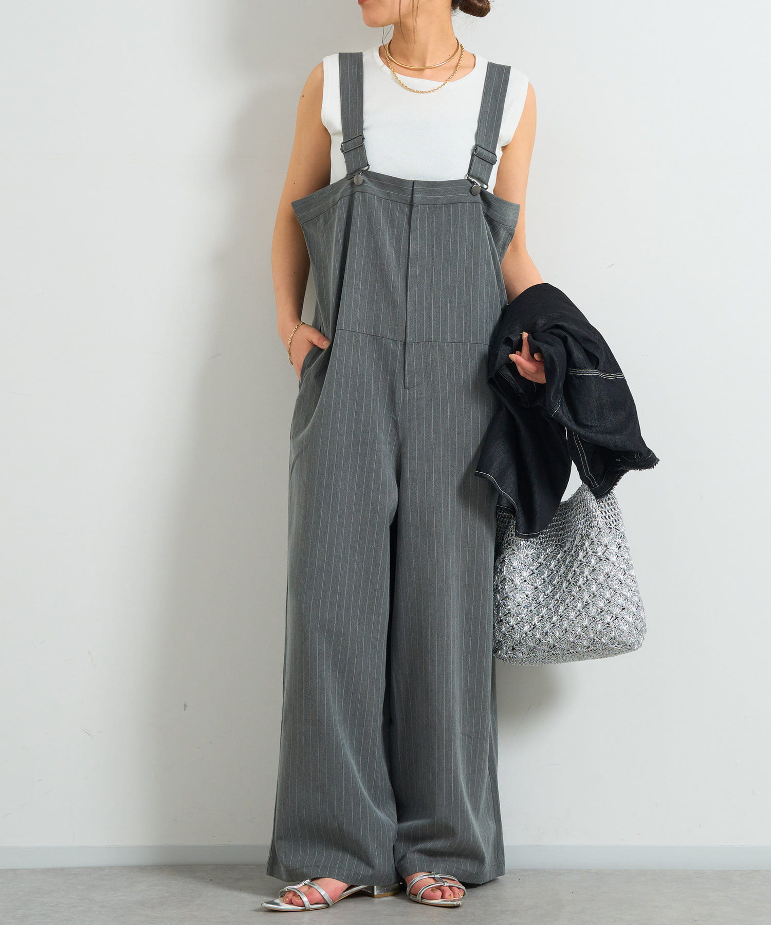 ・落ち着いたトーンのストライプ柄が大人な雰囲気のサロペット。