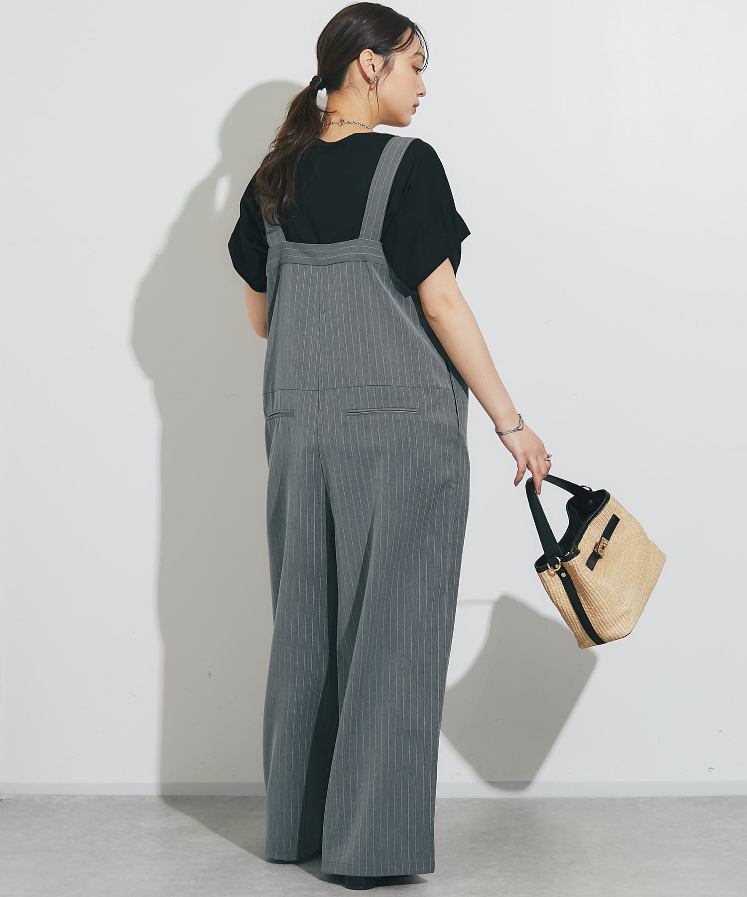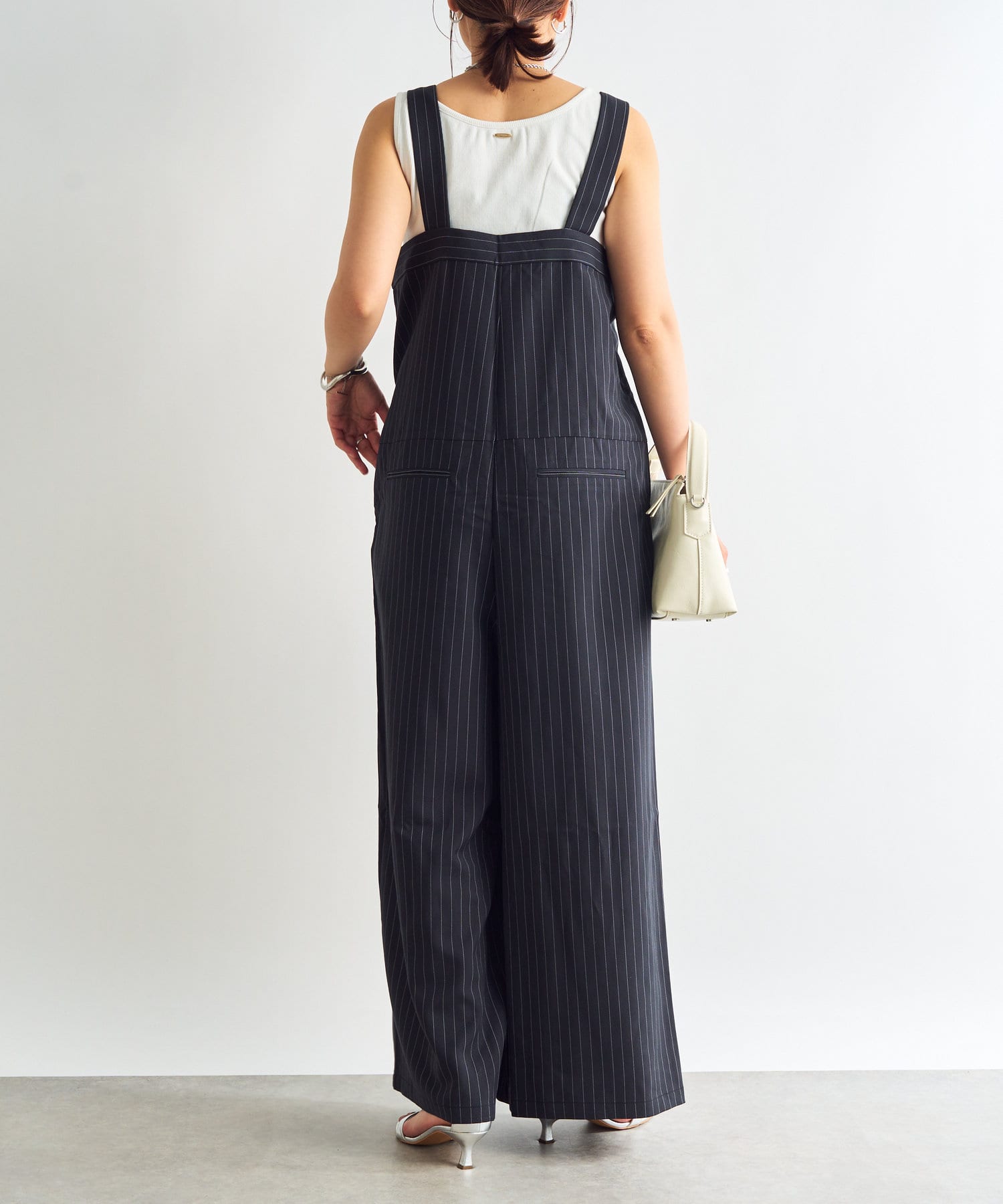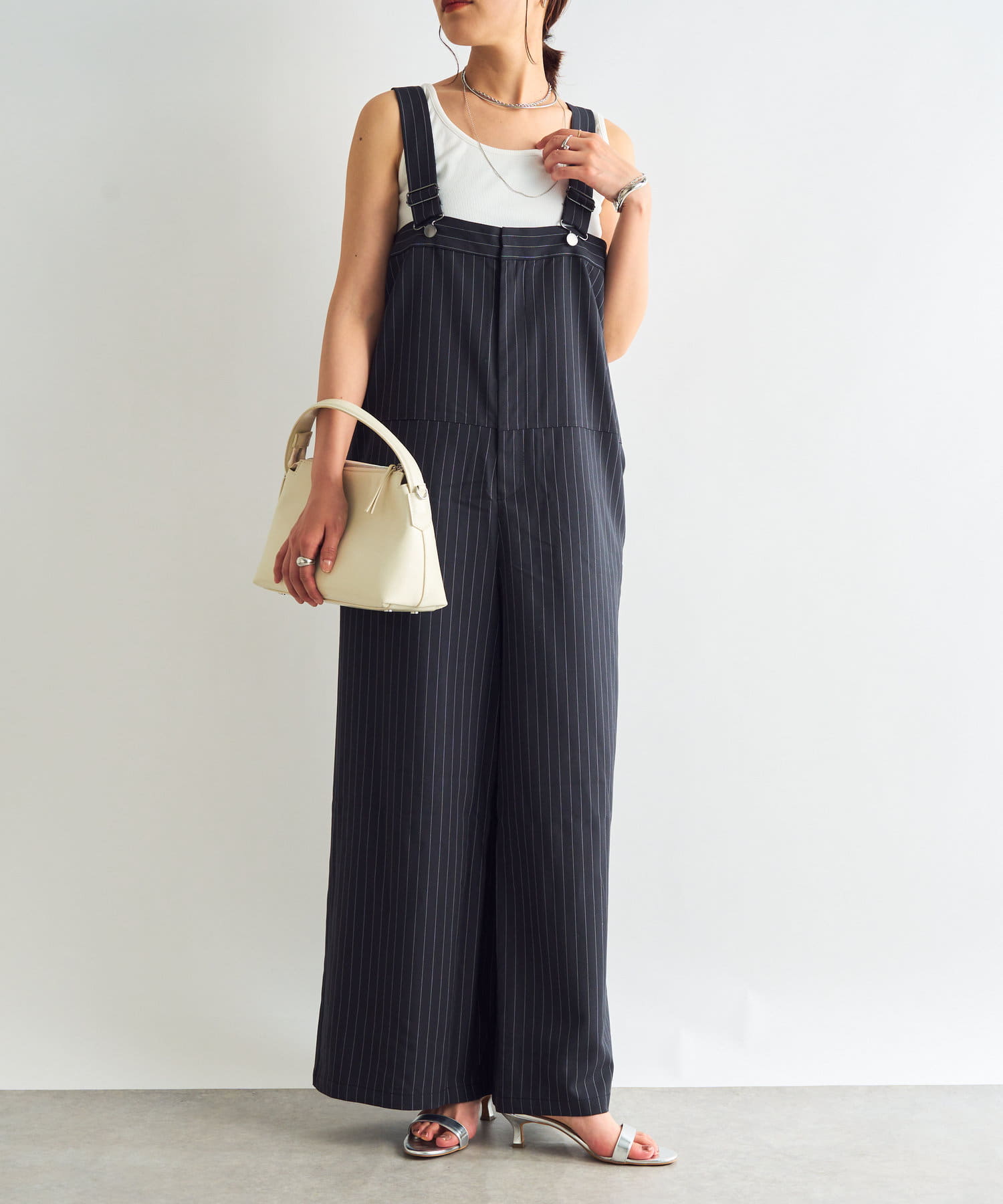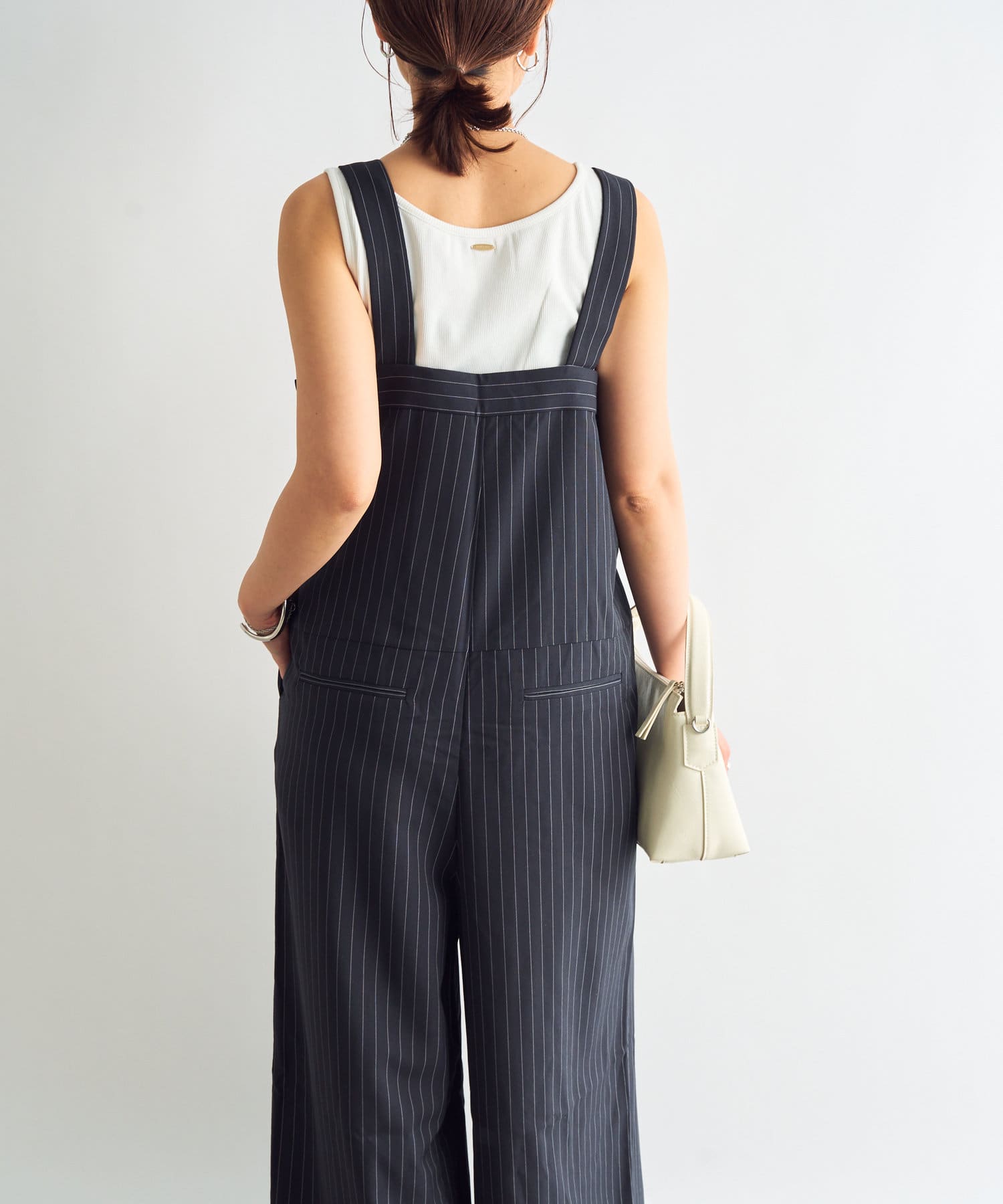 《脚長効果・大人コーデに◎》ストライプオーバーサロペット