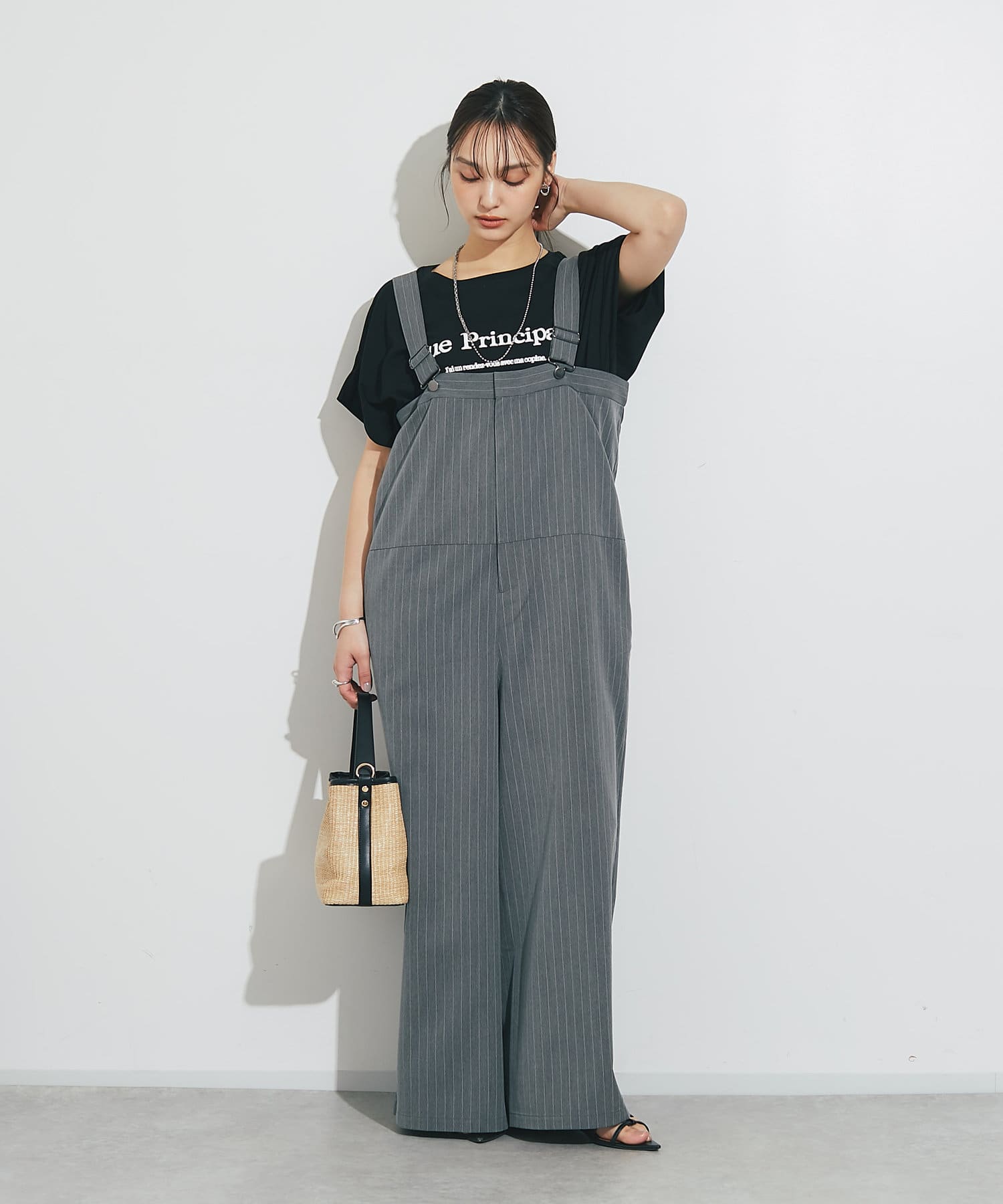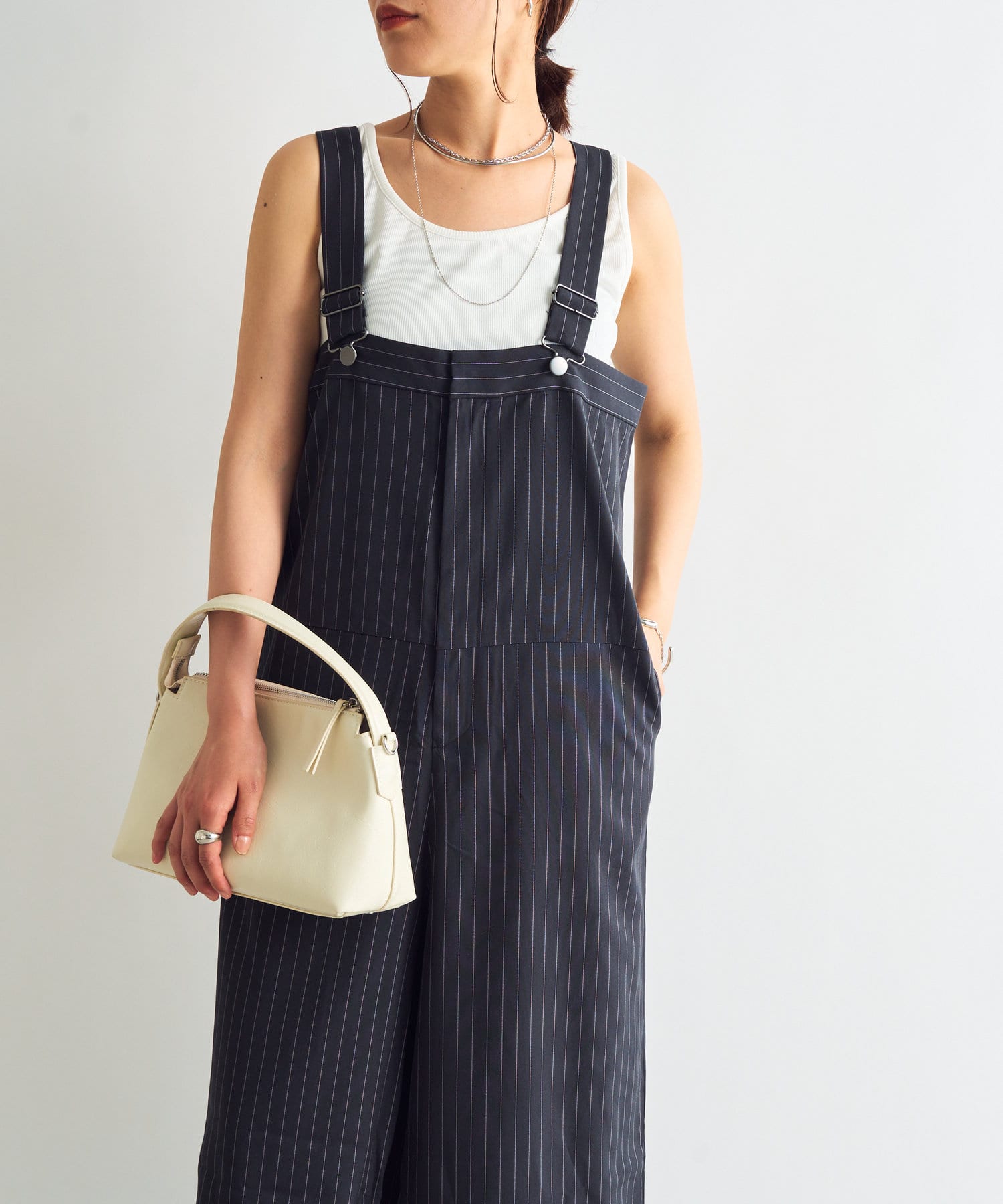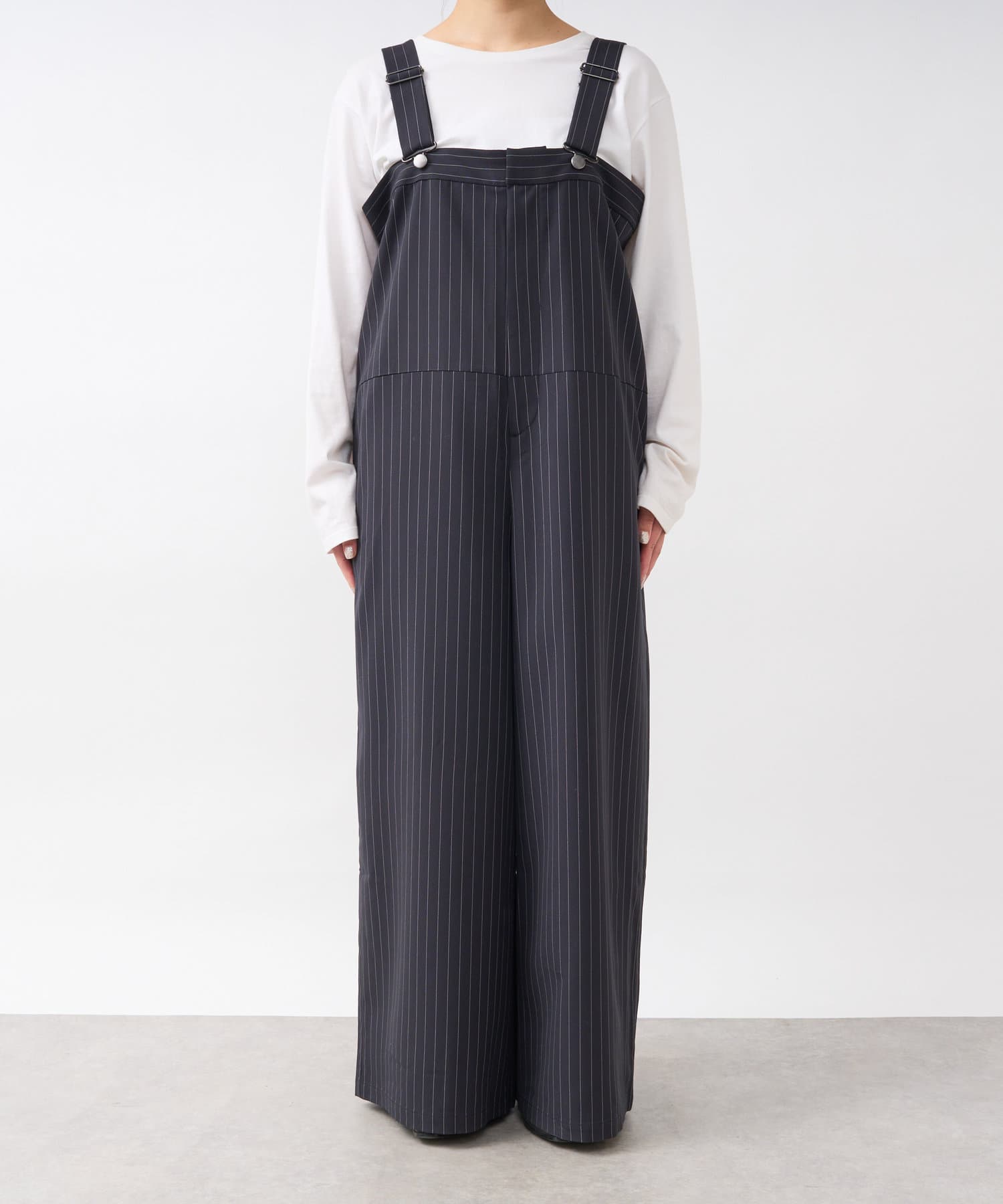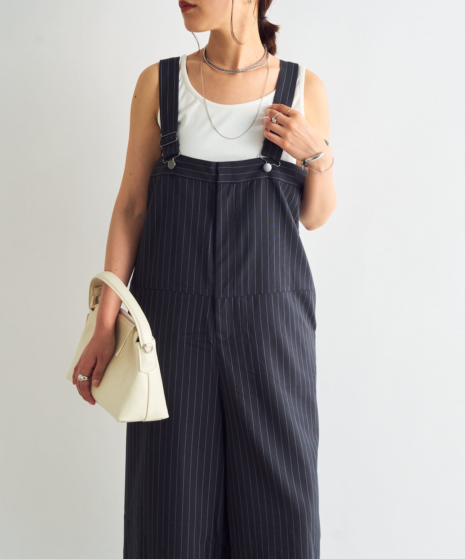 《脚長効果・大人コーデに◎》ストライプオーバーサロペット