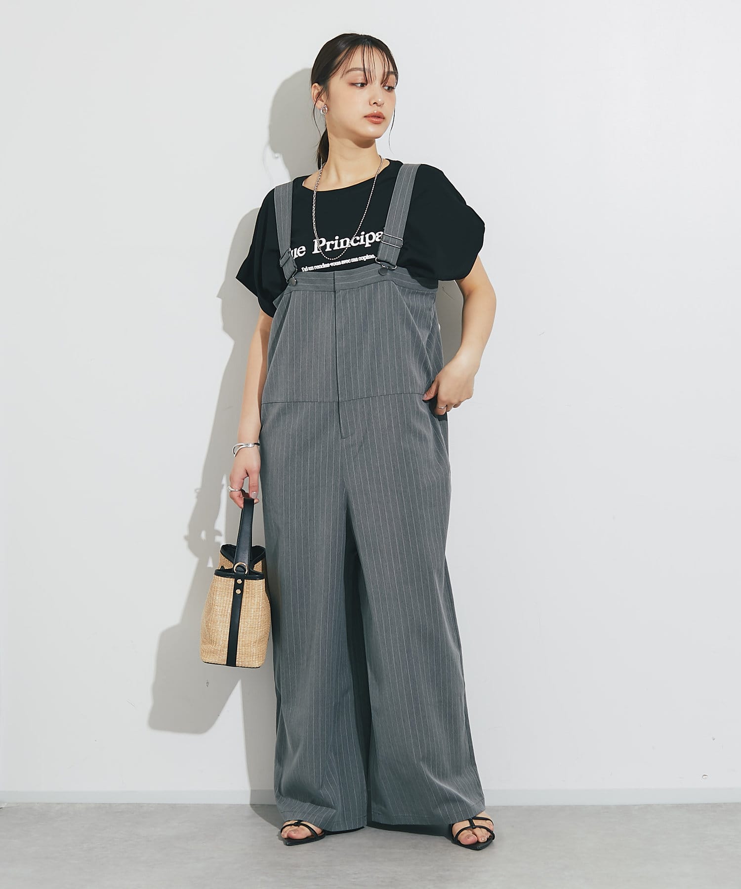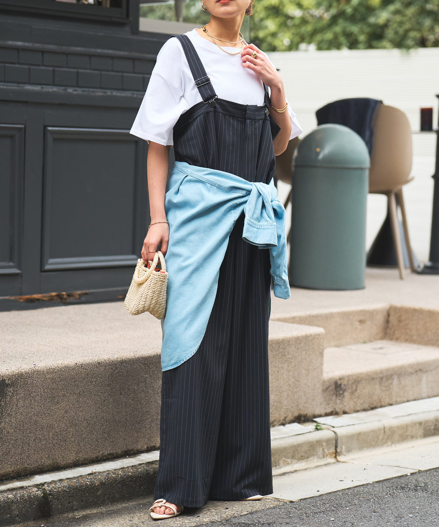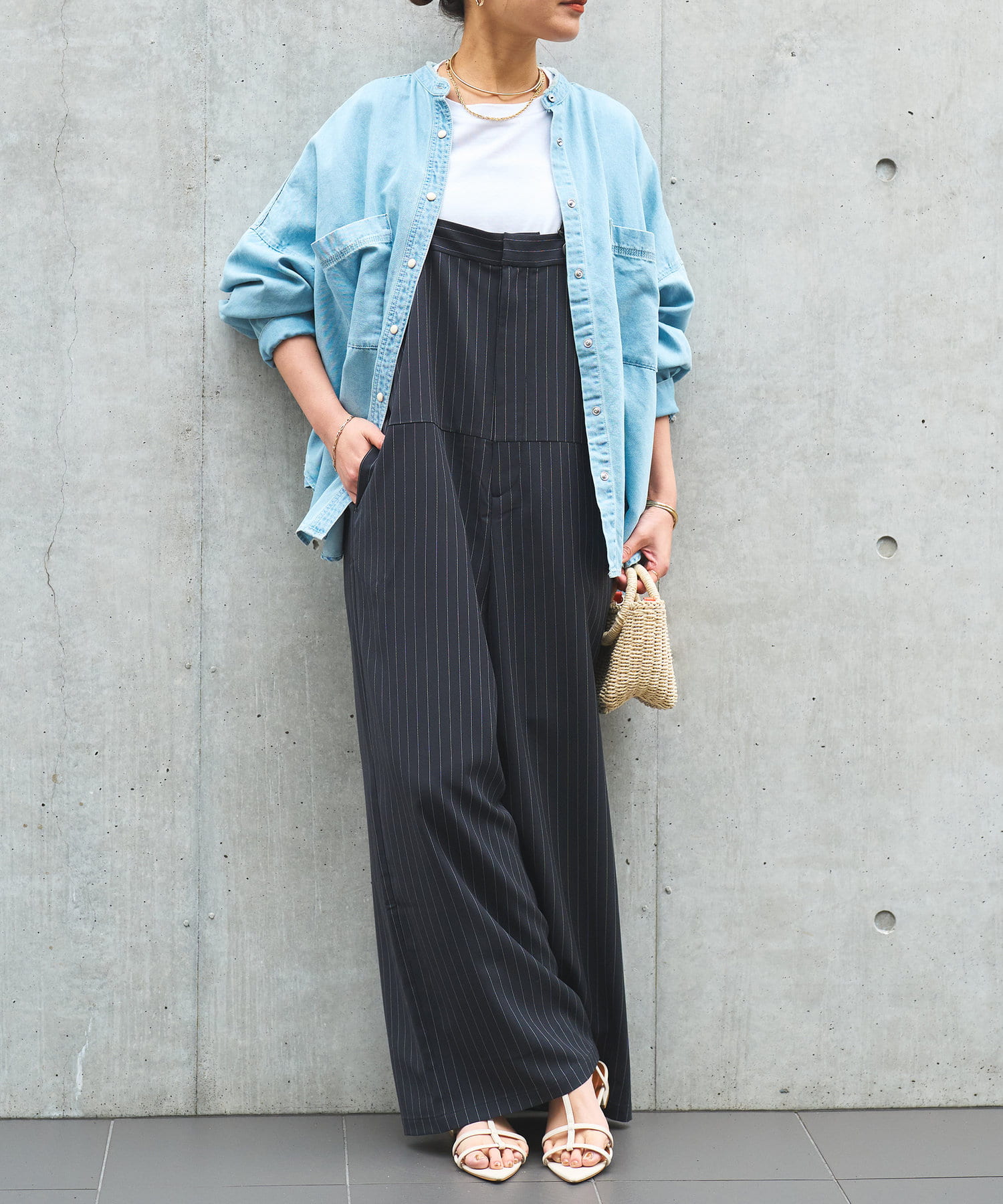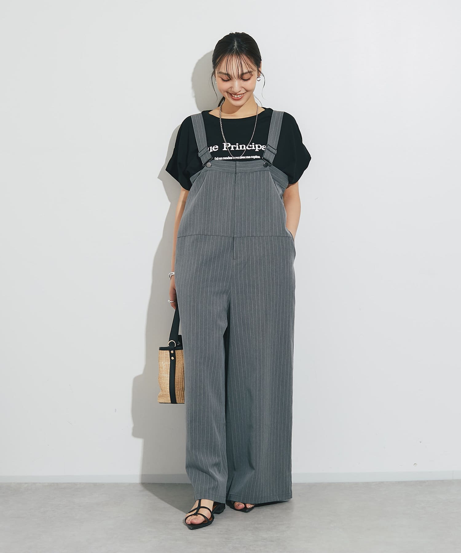 《脚長効果・大人コーデに◎》ストライプオーバーサロペット