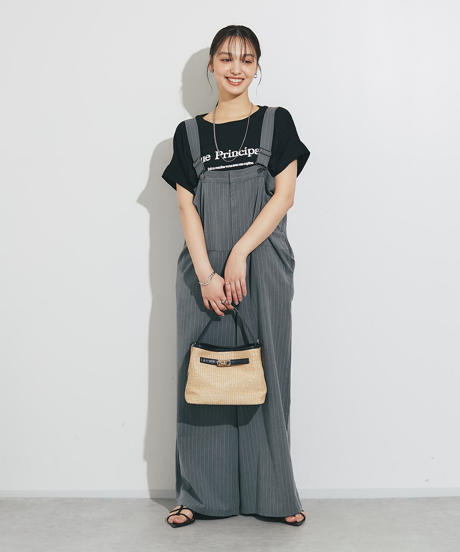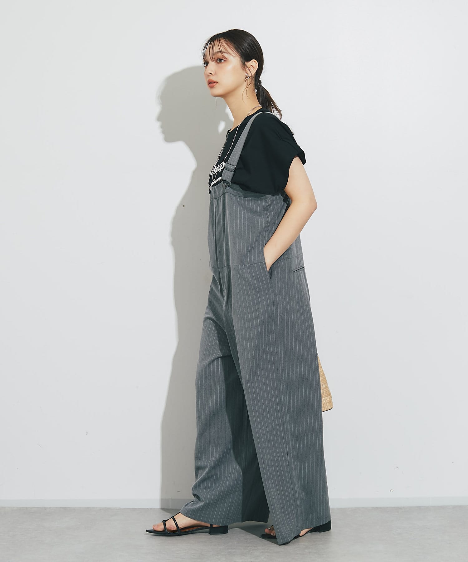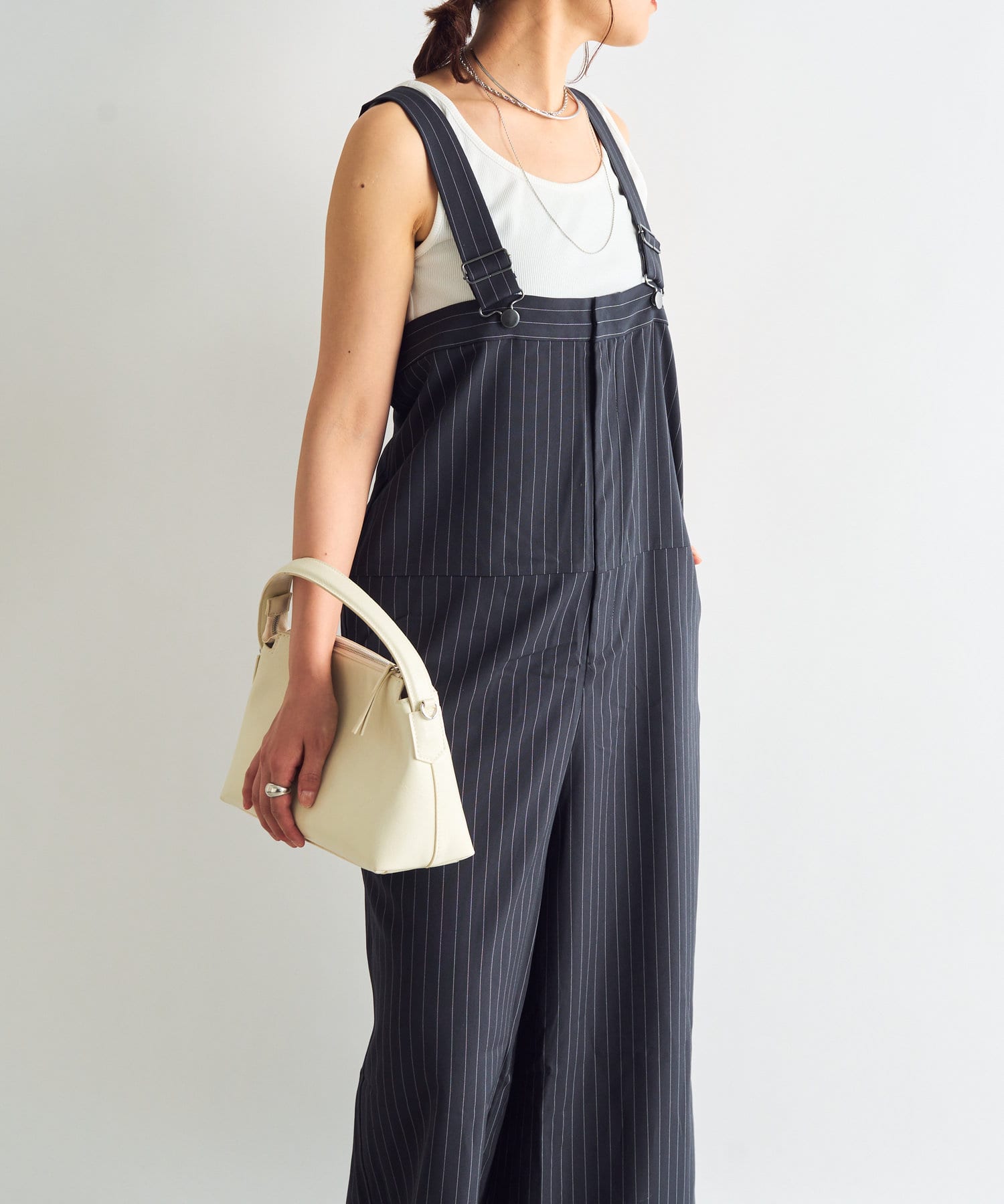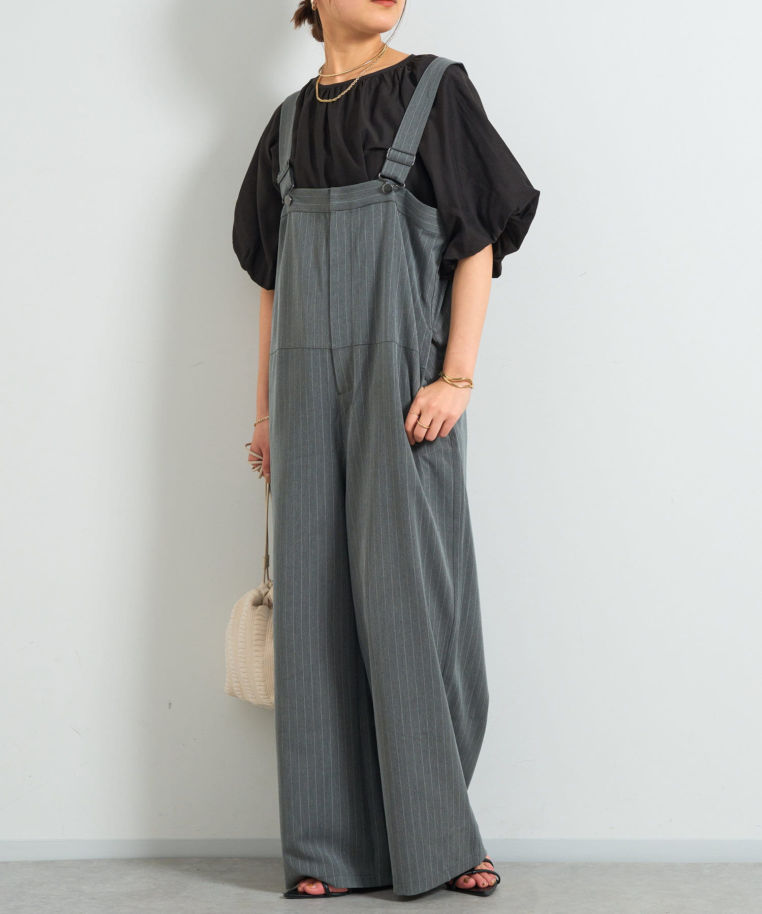 《脚長効果・大人コーデに◎》ストライプオーバーサロペット